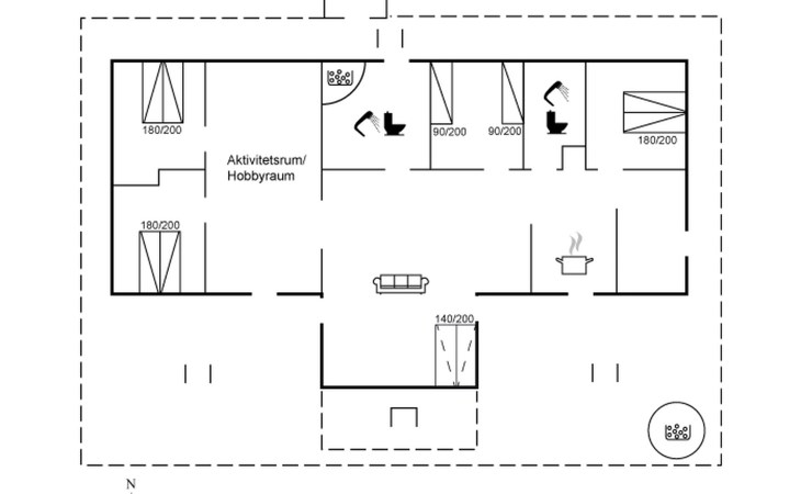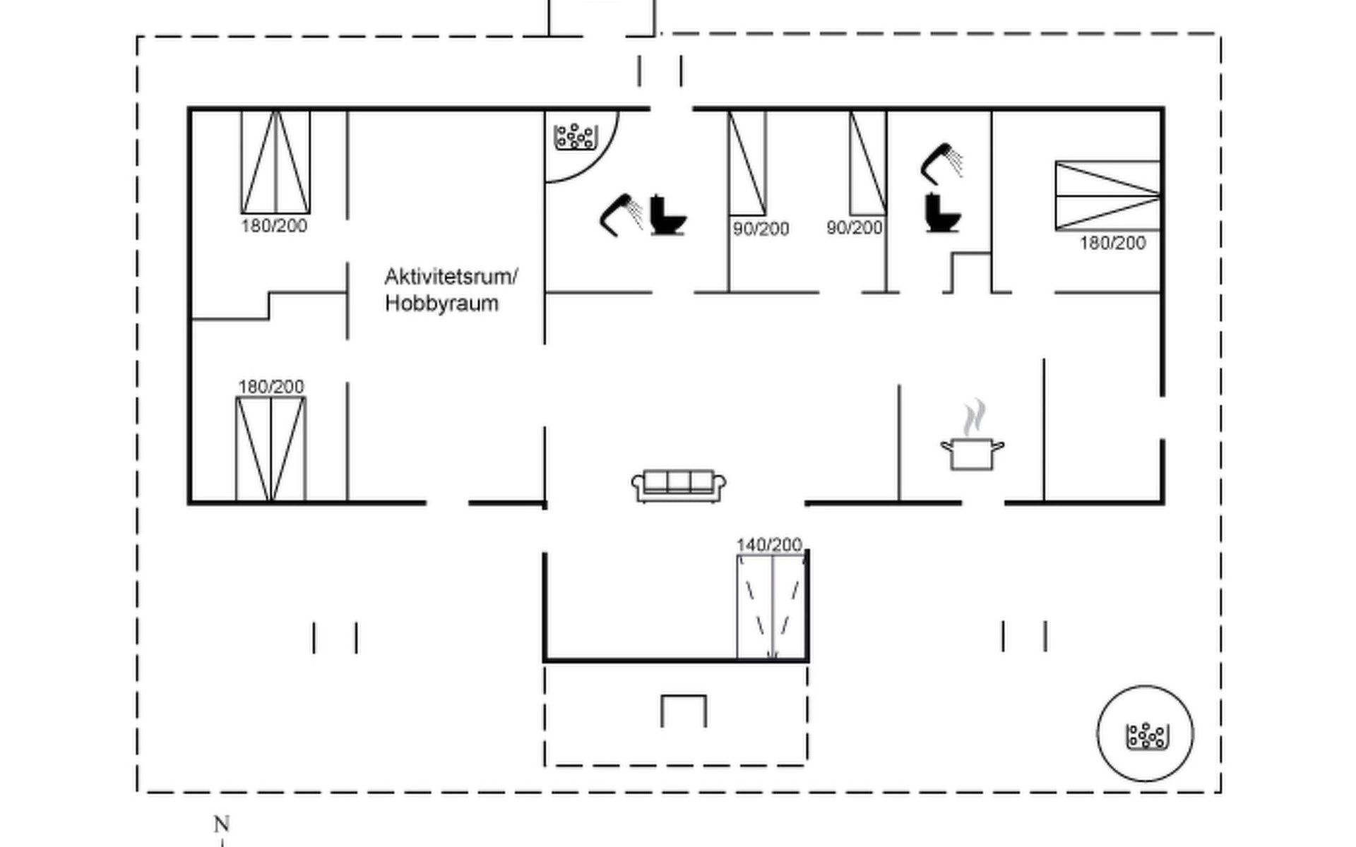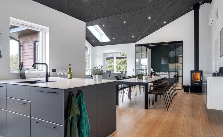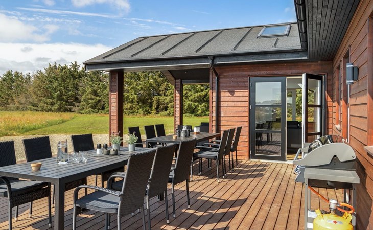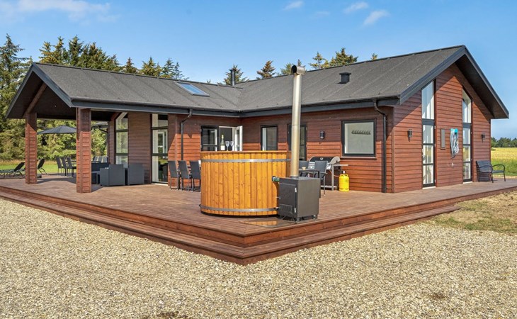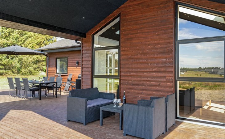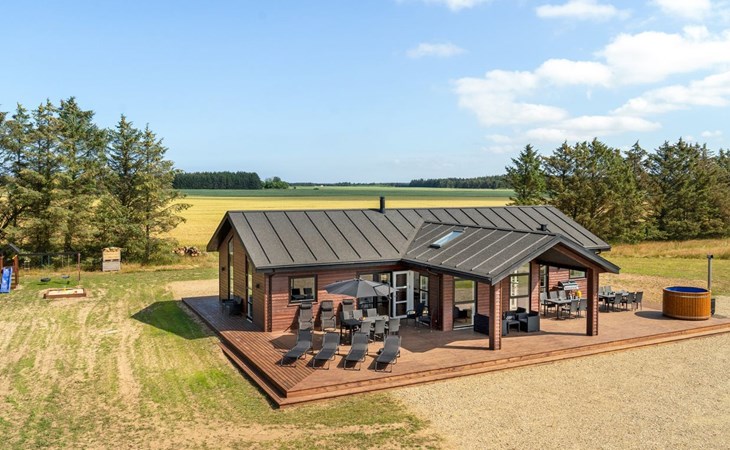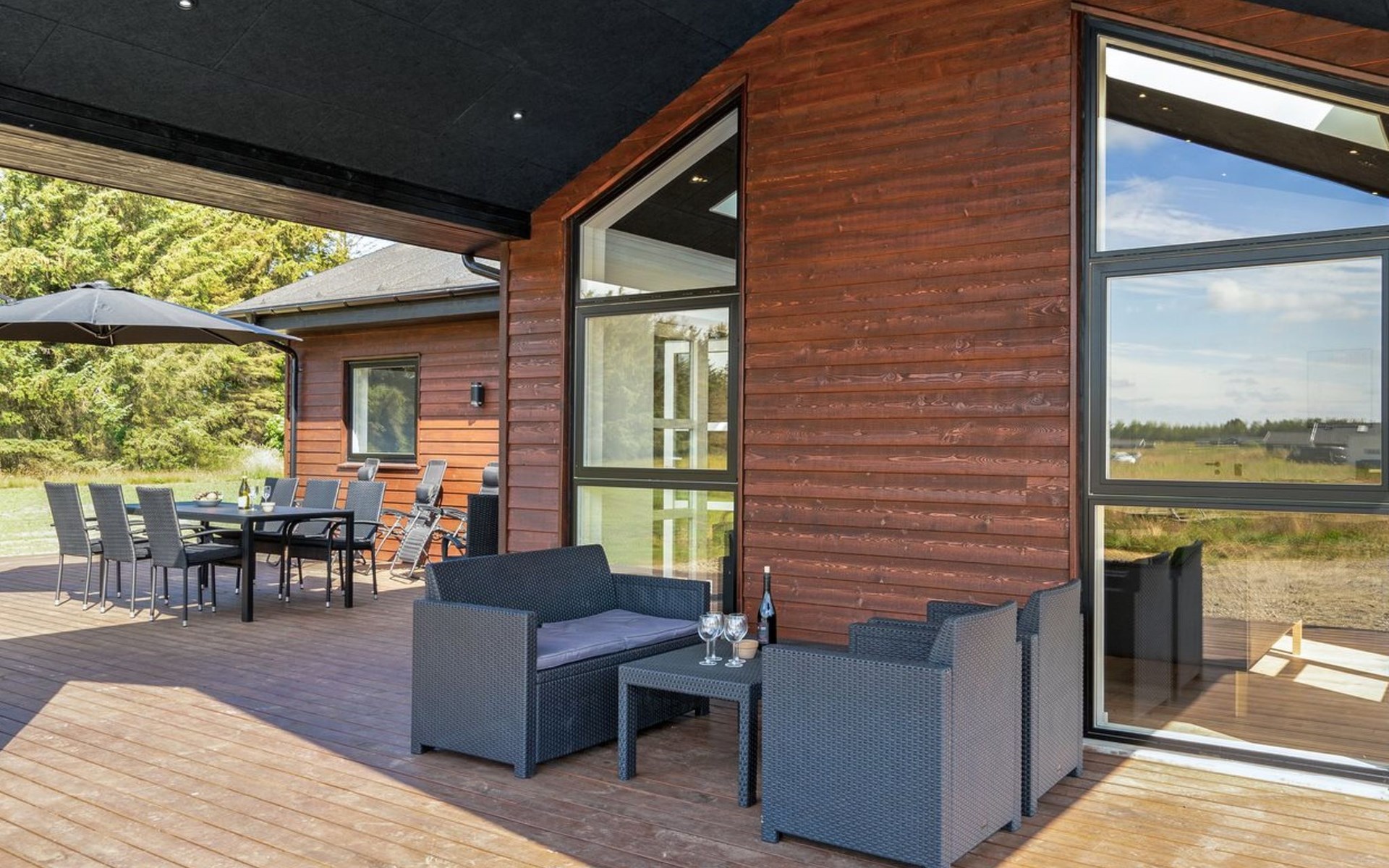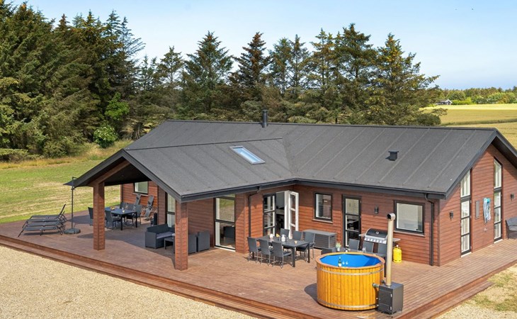 Single-family house, built in 2019. 1.5 km from the sea. Private: natural state property 2'700 m2. Outdoor shower, terrace (200 m2), barbecue, children's playground (slide, swing). In the house: table football, washing machine, tumble dryer. Parking at the house. Grocery 1.2 km. The owner does not accept any youth groups.