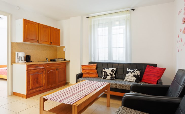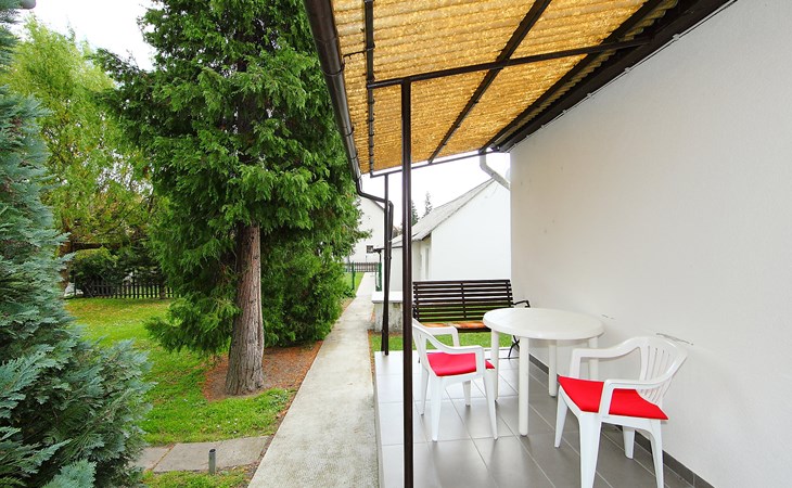 Balatonfenyves: House "Apricot", renovated in 2013. In a central position, 150 m from the lake. For shared use: garden 400 m2, lawn for sunbathing. Grocery, supermarket, restaurant 50 m, railway station 100 m, grass beach 150 m. Well-known lakes can easily be reached: Hévíz Thermal 35 km. Please note: main road close by. The complex has another 2 houses for rent. HU8646.297.1 and HU8646.299.1.