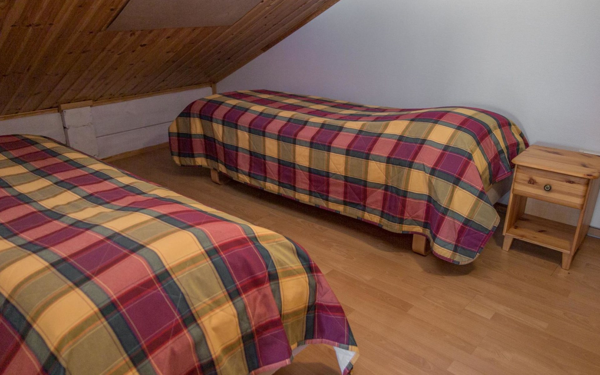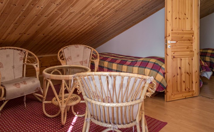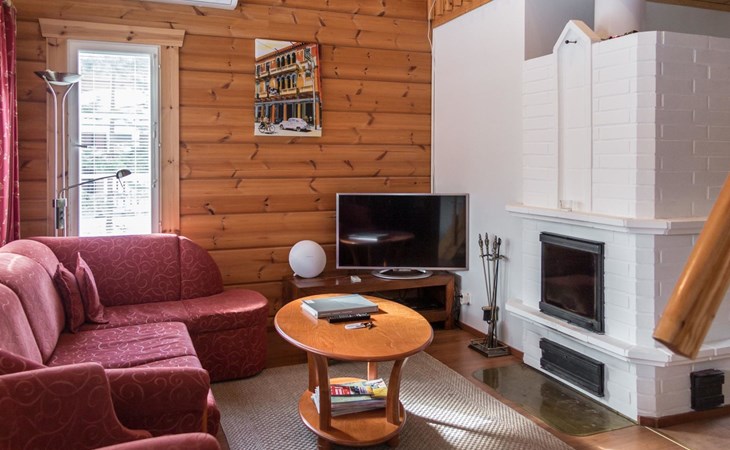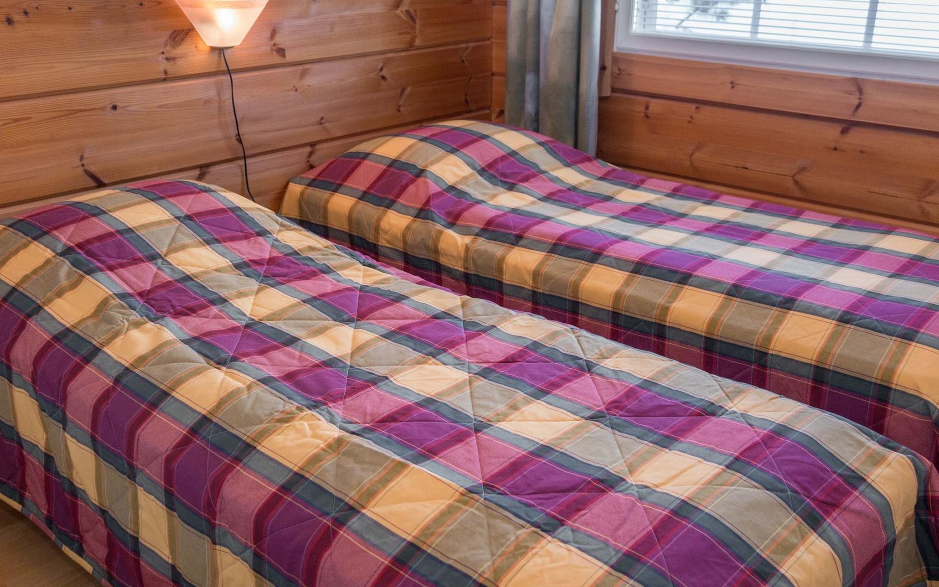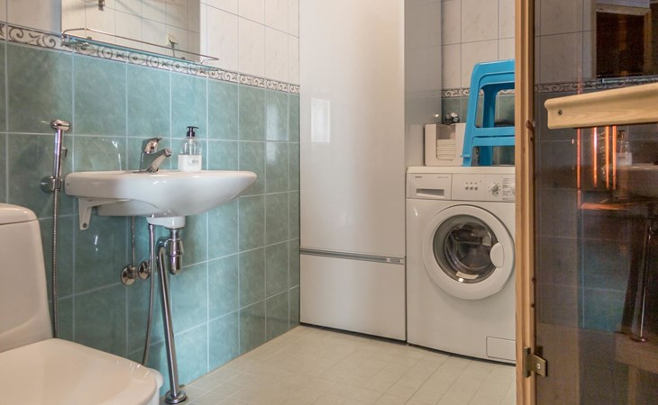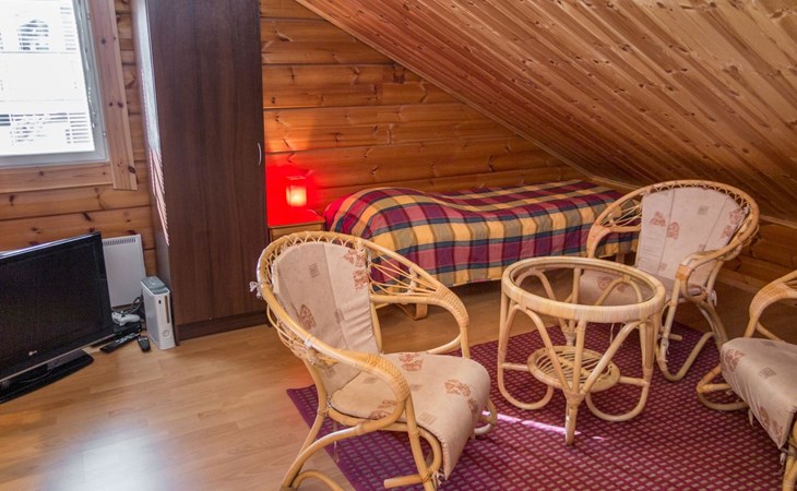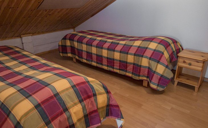 A semi-detached house built 2003, living room kitchen, bedroom with double bed (140 cm wide), bedroom with two beds, a shower room, small sauna (electric stove), separate toilet. Upstairs bedroom 2 beds, sleeping loft with 2 beds. Terraces on both sides of the building.