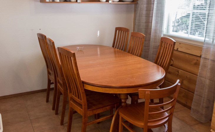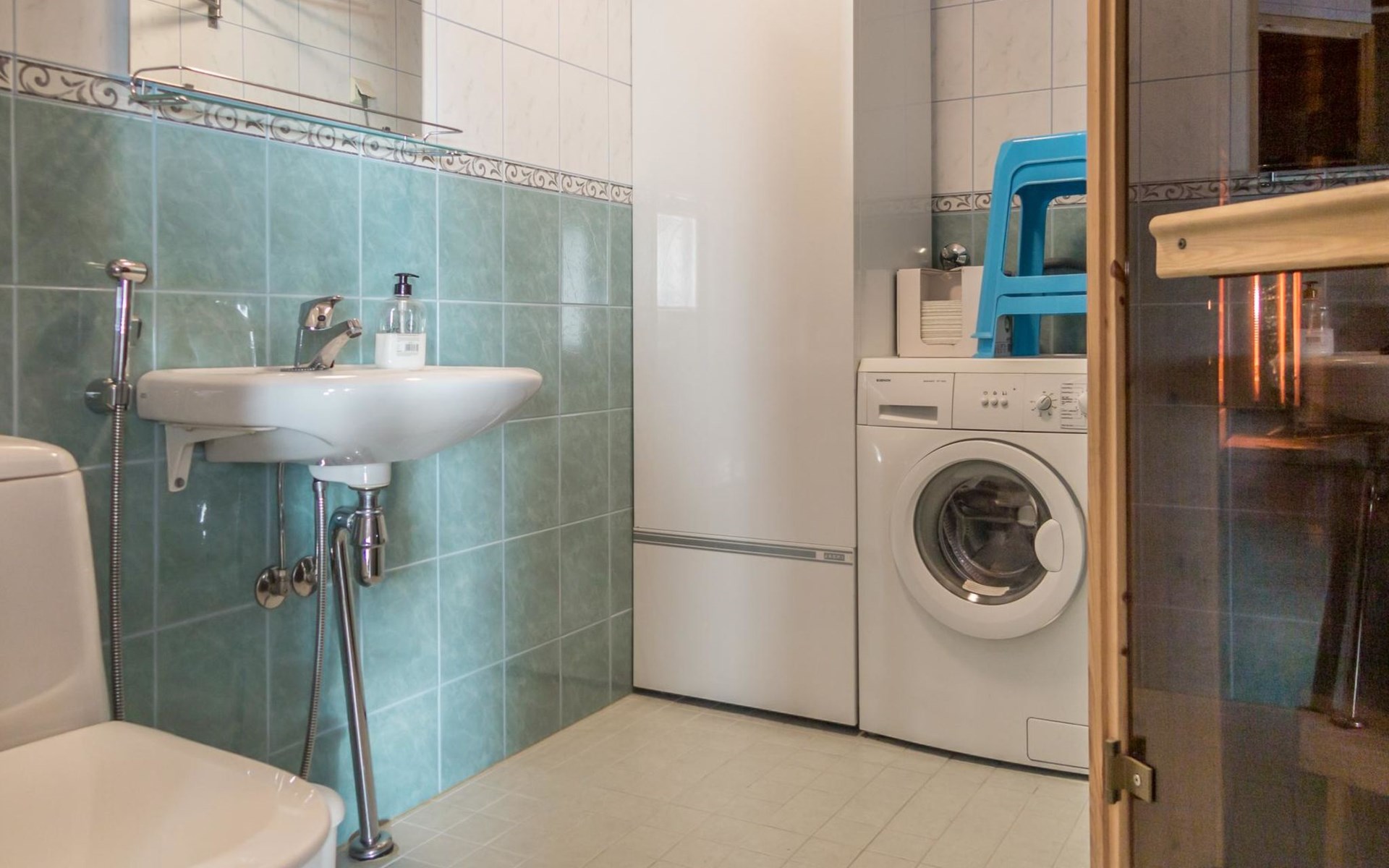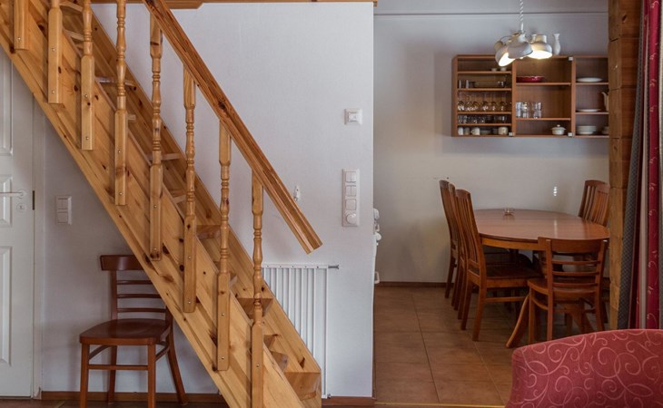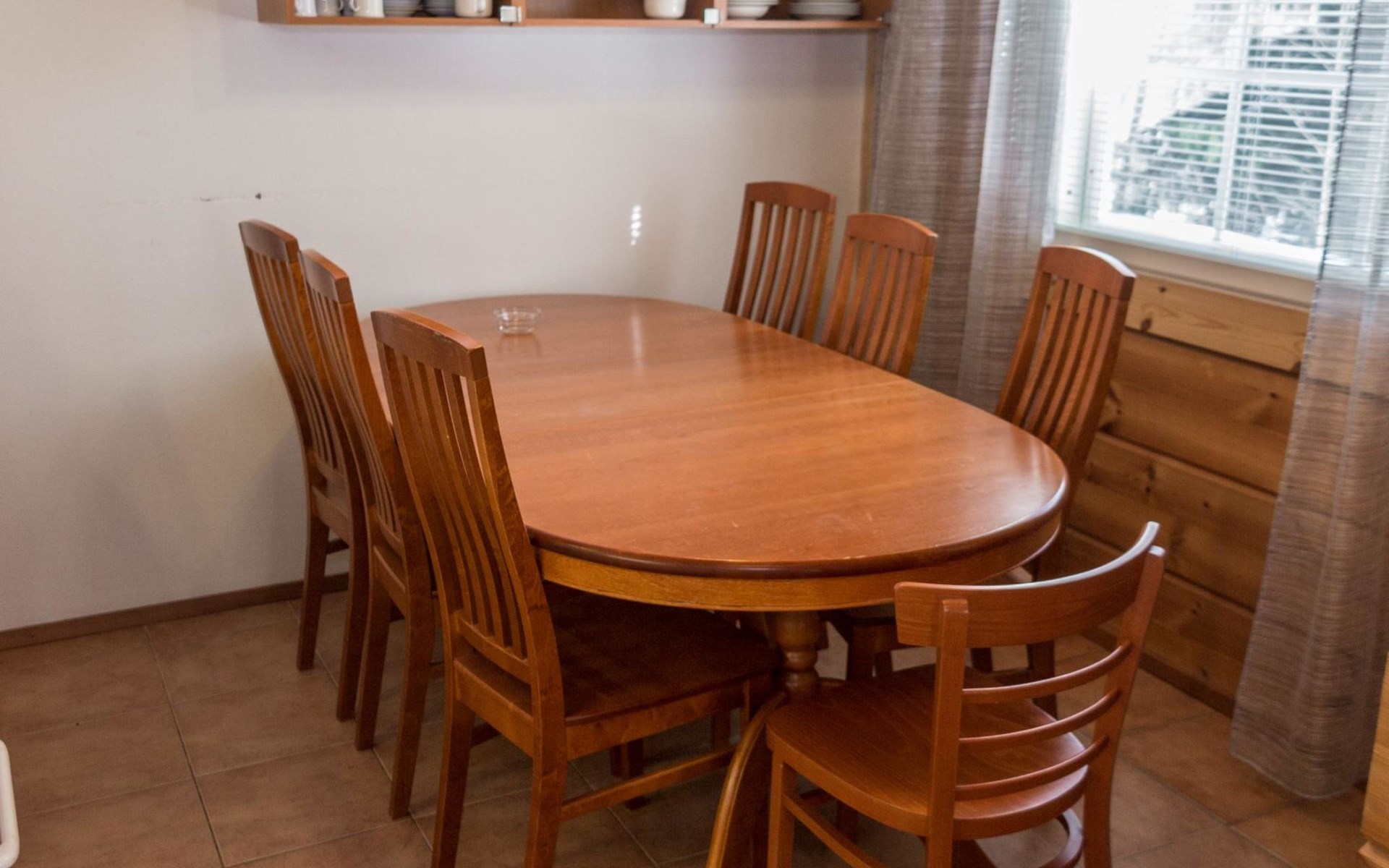 A semi-detached house built 2003, living room kitchen, bedroom with double bed (140 cm wide), bedroom with two beds, a shower room, small sauna (electric stove), separate toilet. Upstairs bedroom 2 beds, sleeping loft with 2 beds. Terraces on both sides of the building.