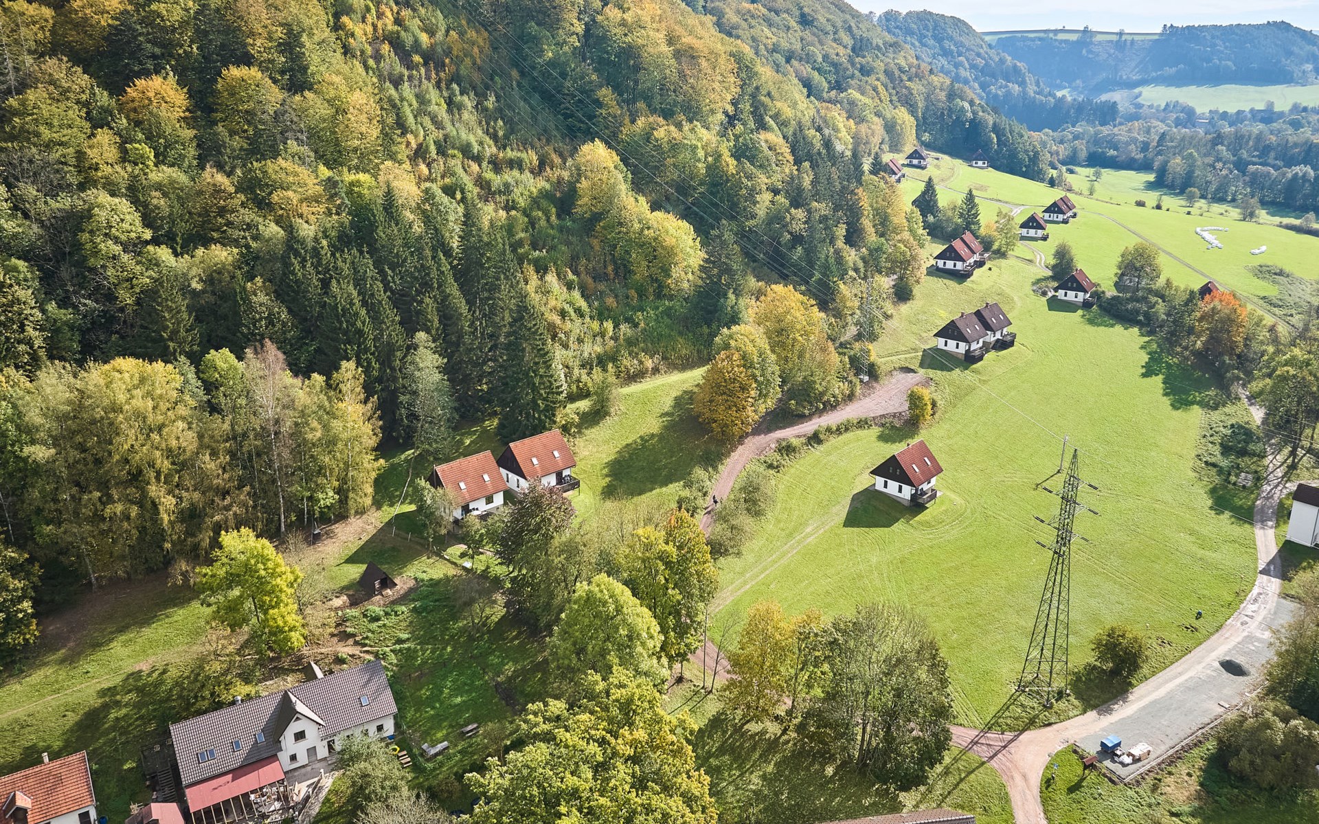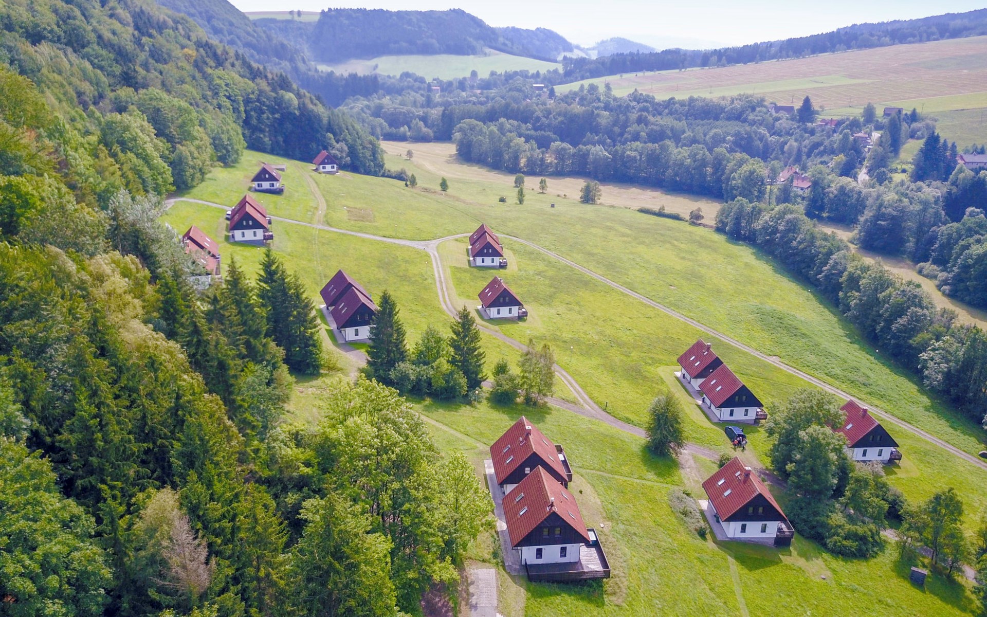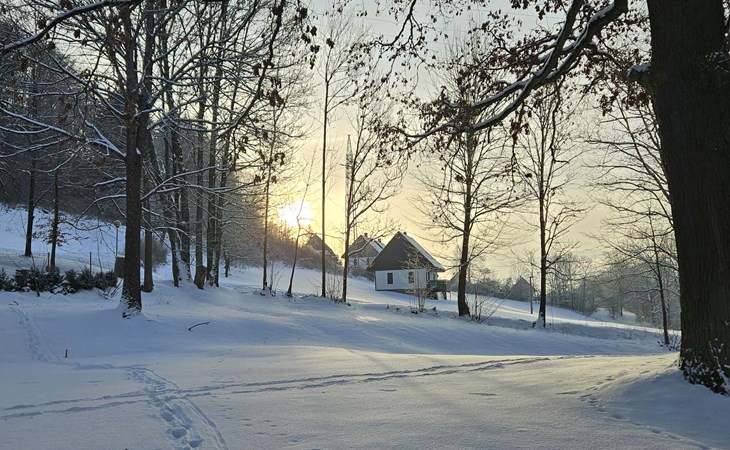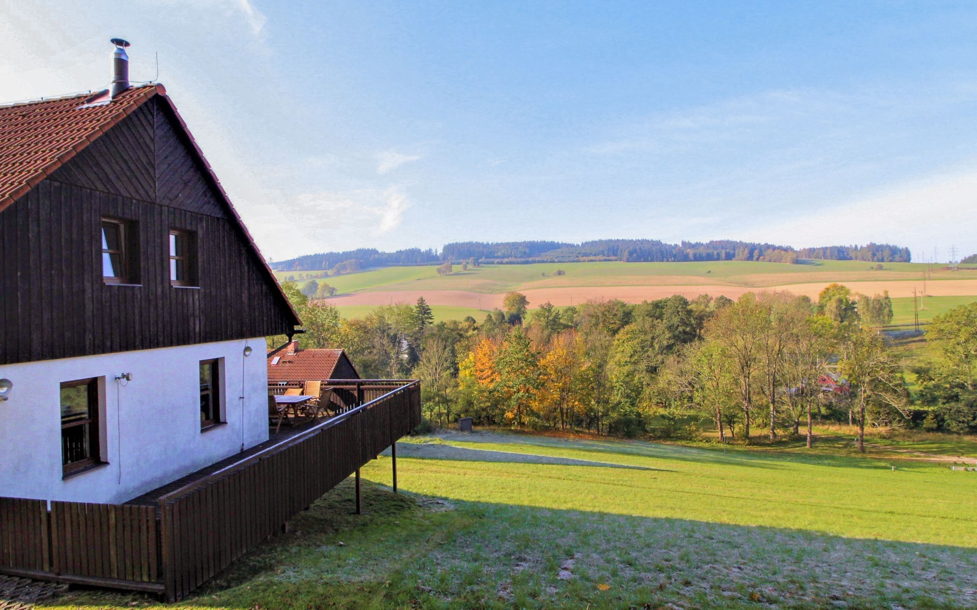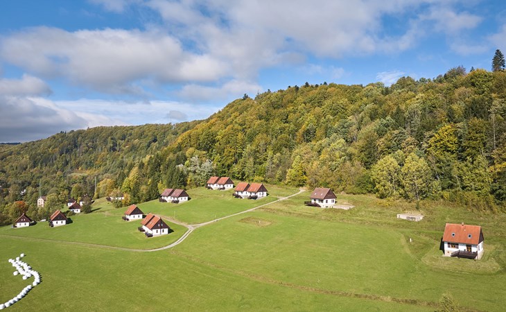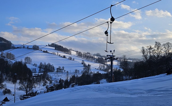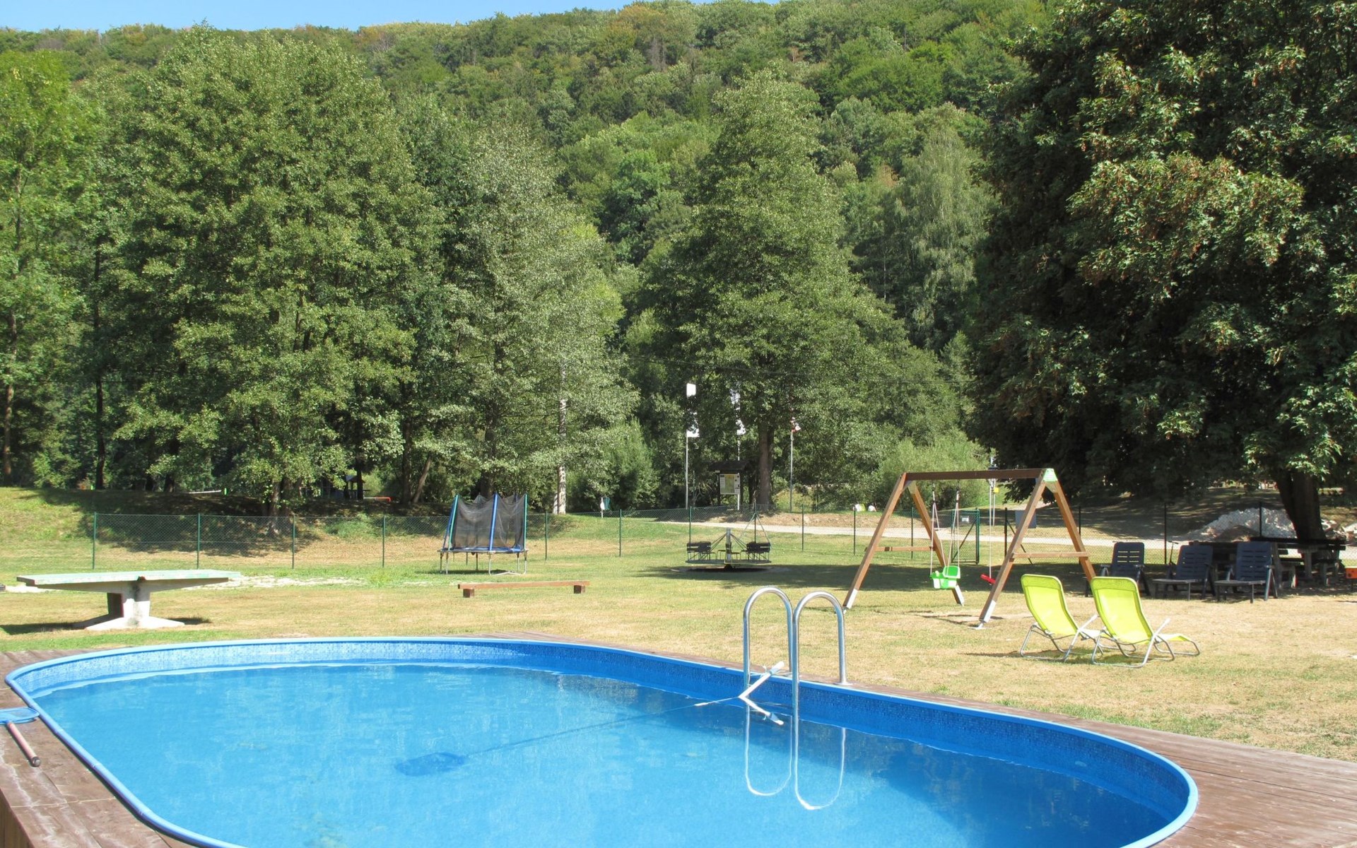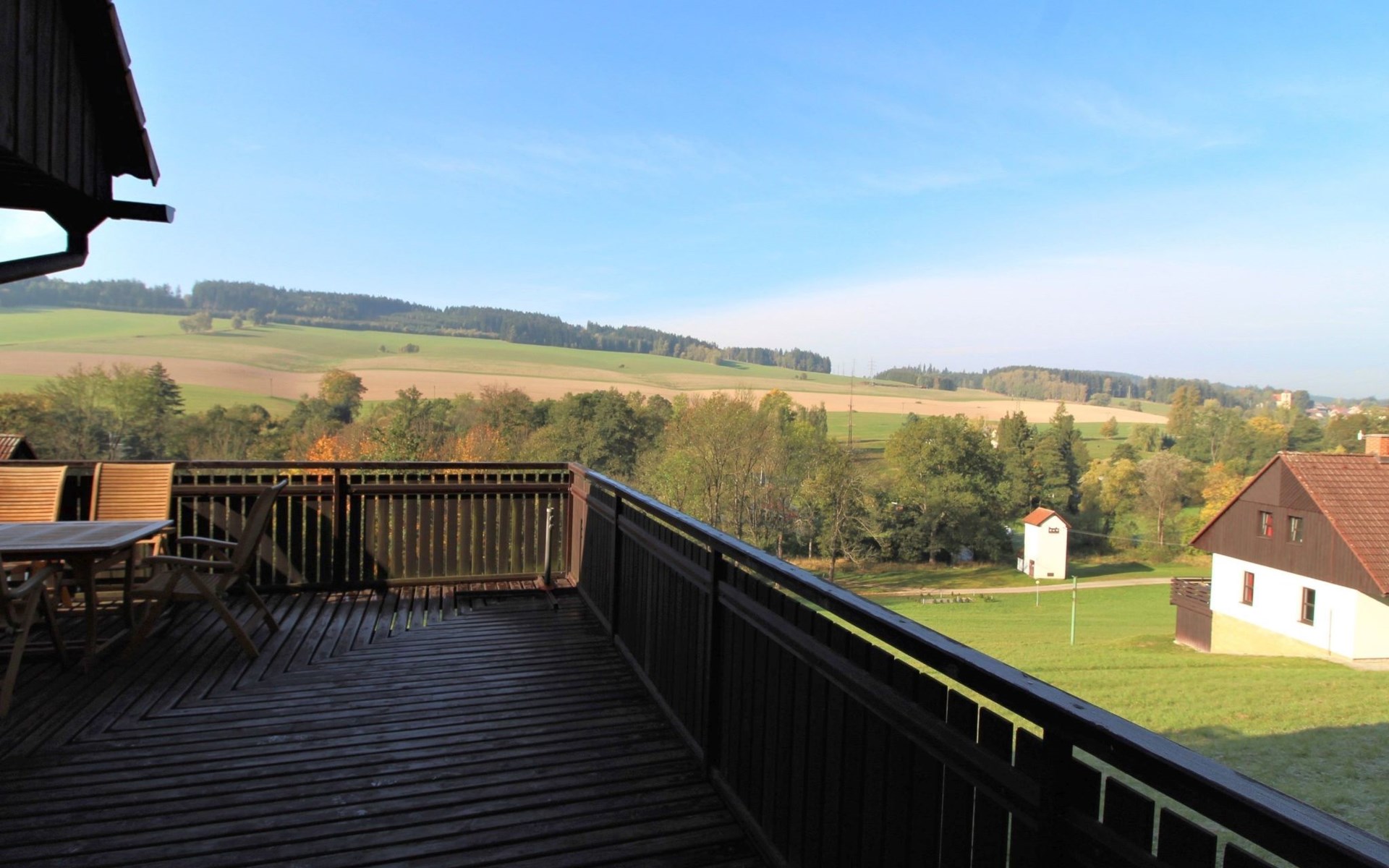 Stárkov 18 km from Náchod: Resort "Stárkov", 450 m a.s.l., detached, built in 1997, renovated in 2015, surrounded by meadows. 22 houses in the resort. On the outskirts, in a sunny, elevated position on a slope, along the wooded area, 24 km from the lake, 10 km from the skiing area, in the countryside. For shared use: property 10 ha, meadow, pond, swimming pool (8 x 4 m, depth 150 cm, seasonal availability: 15.Jun. - 16.Sep.). Table tennis, volleyball, badminton, volleyball court, beach volleyball, patio, barbecue, fireplace, children's playground (slide, swing, sandbox). In the complex: reception, lounge, bistro, massage (extra). Billiard table, playroom, table football, trampoline, kiosk, storage room for bicycles, laundry (extra), bicycle rental. Linen change (suppl. charge extra). Towel change (suppl. charge extra). Room cleaning on request (extra). Bread roll service possible on request. Pre-arrival grocery service. 200 m long steep, narrow motor access. Parking (for 2 cars) at the house. Grocery 1 km, supermarket 8 km, restaurant 1 km, café 10 m, bus stop "Stárkov, mlékárna" 50 m, railway station "Hronov" 8 km, indoor swimming pool 18 km. Golf course (9 hole) 26 km, sailing school 26 km, tennis 500 m, minigolf 10 m, riding stable 10 m, walking paths from the house, cycle lane, ski lift 6 km, ski school 17 km, cross country ski track 100 m, ice rink 8 km, children's playground 10 m. Nearby attractions: Adršpašsko-teplické skály 15 km, Náchod 17 km, Broumovské stěny 17 km, Ratibořice a Babiččino údolí 22 km, Broumov 24 km, Relaxpark Pec pod Sněžkou 50 km. Well-known ski regions can easily be reached: Radvanice 10 km, Petříkovice 17 km, Mladé Buky 36 km. Well-known lakes can easily be reached: vodní nádrž Rozkoš 26 km. Please note: suitable for families, baby equipment on request (included). Electric cars cannot be charged from the power supply of the rented house.