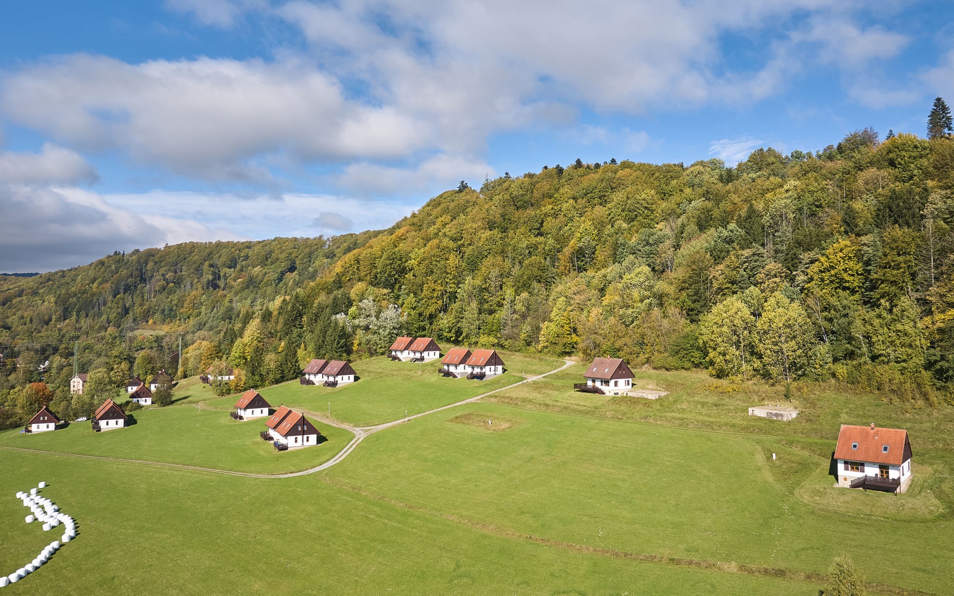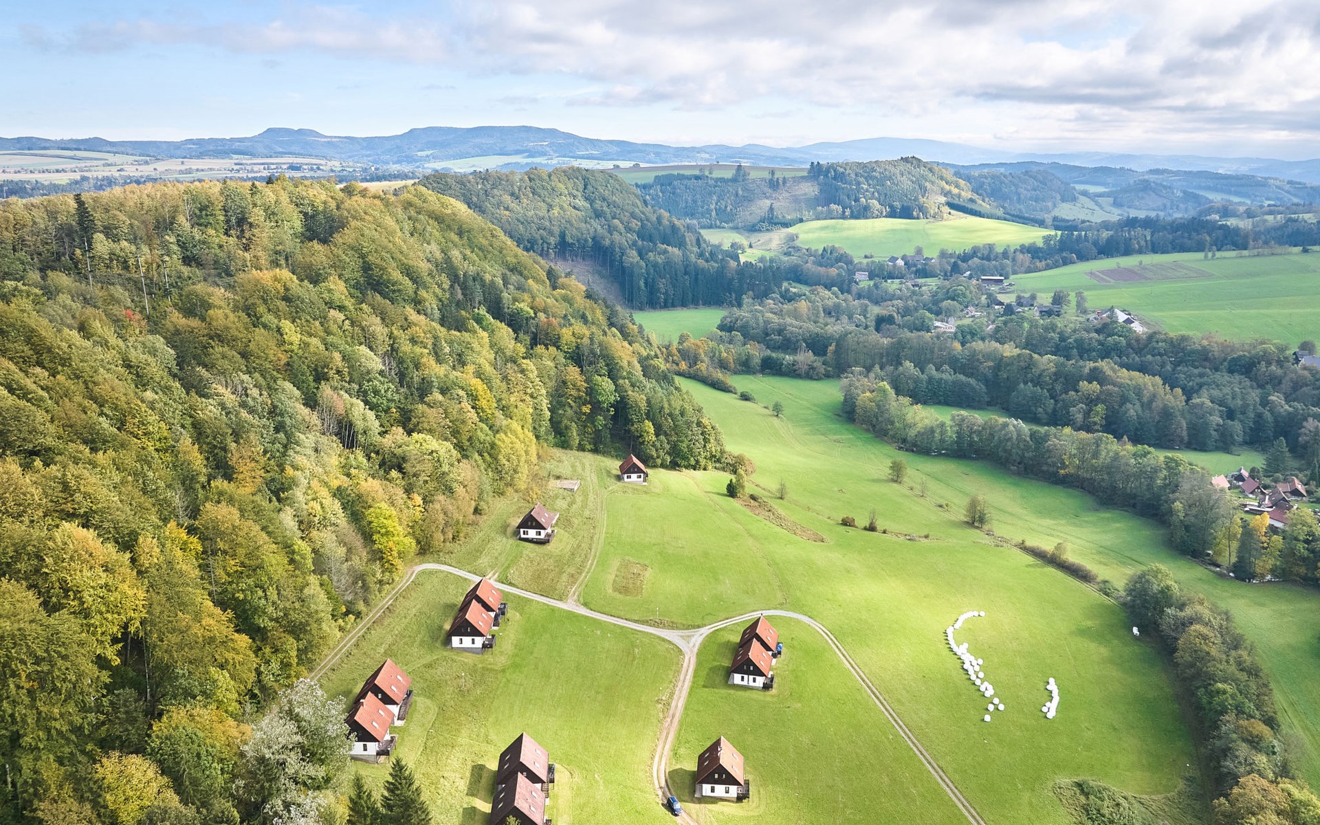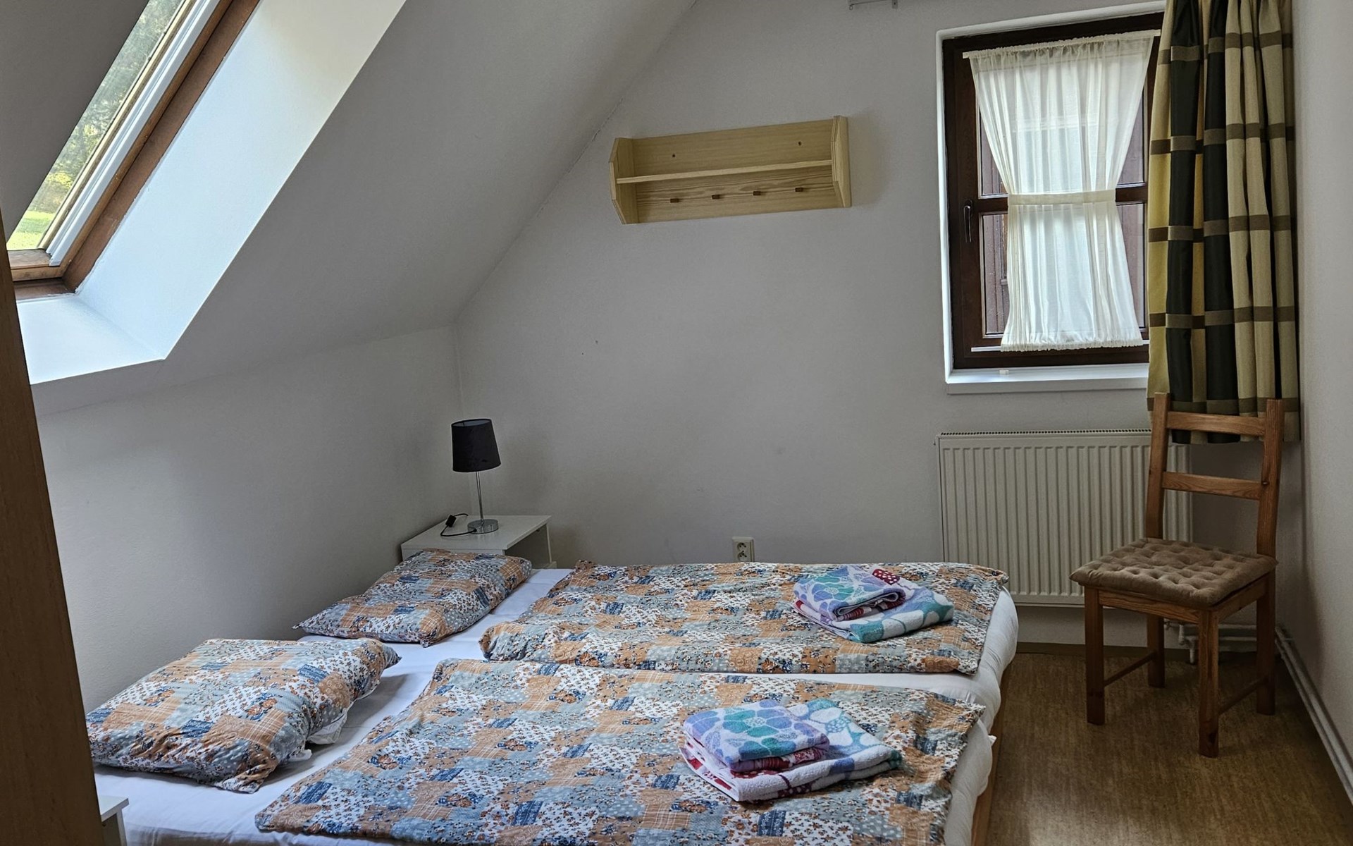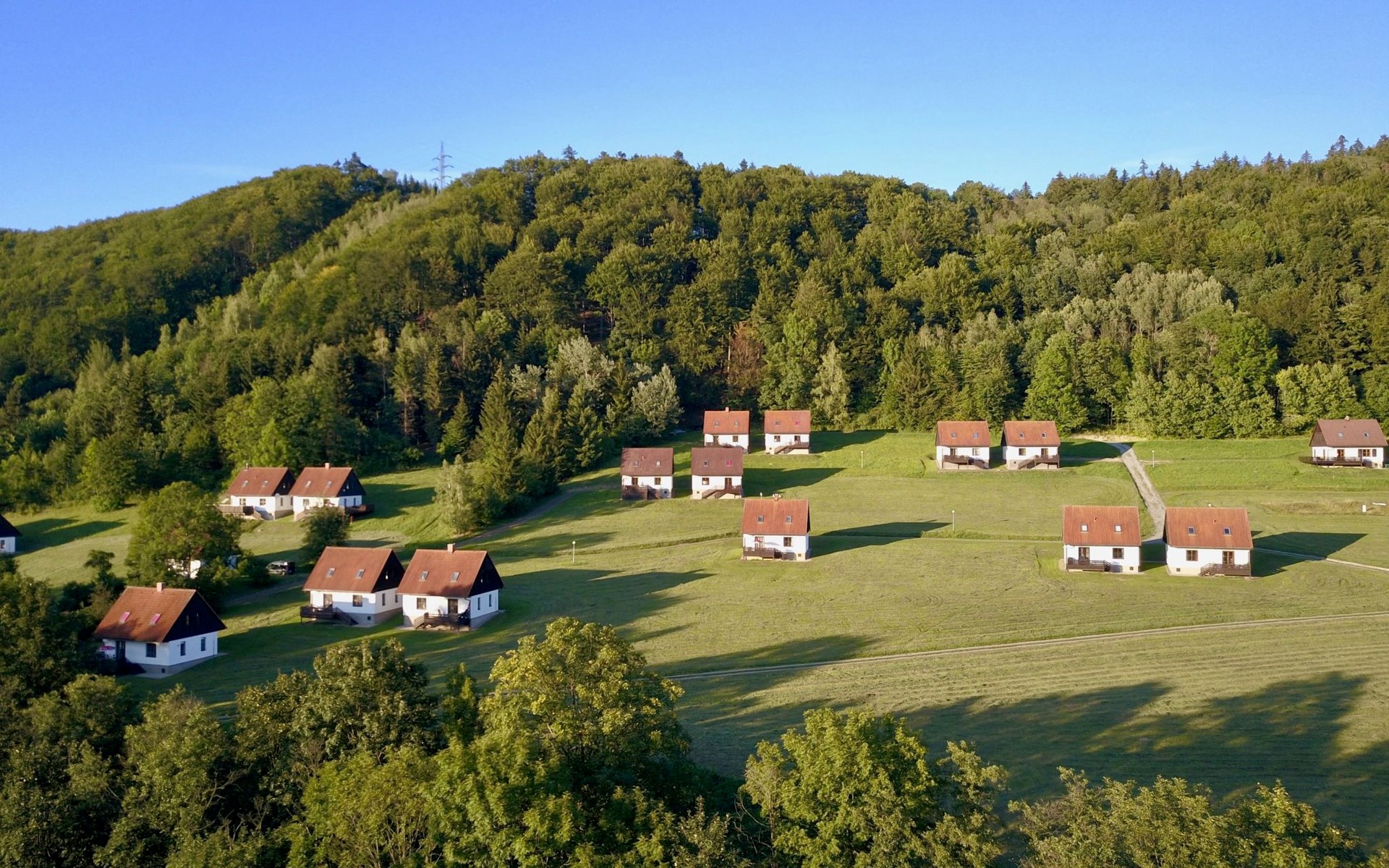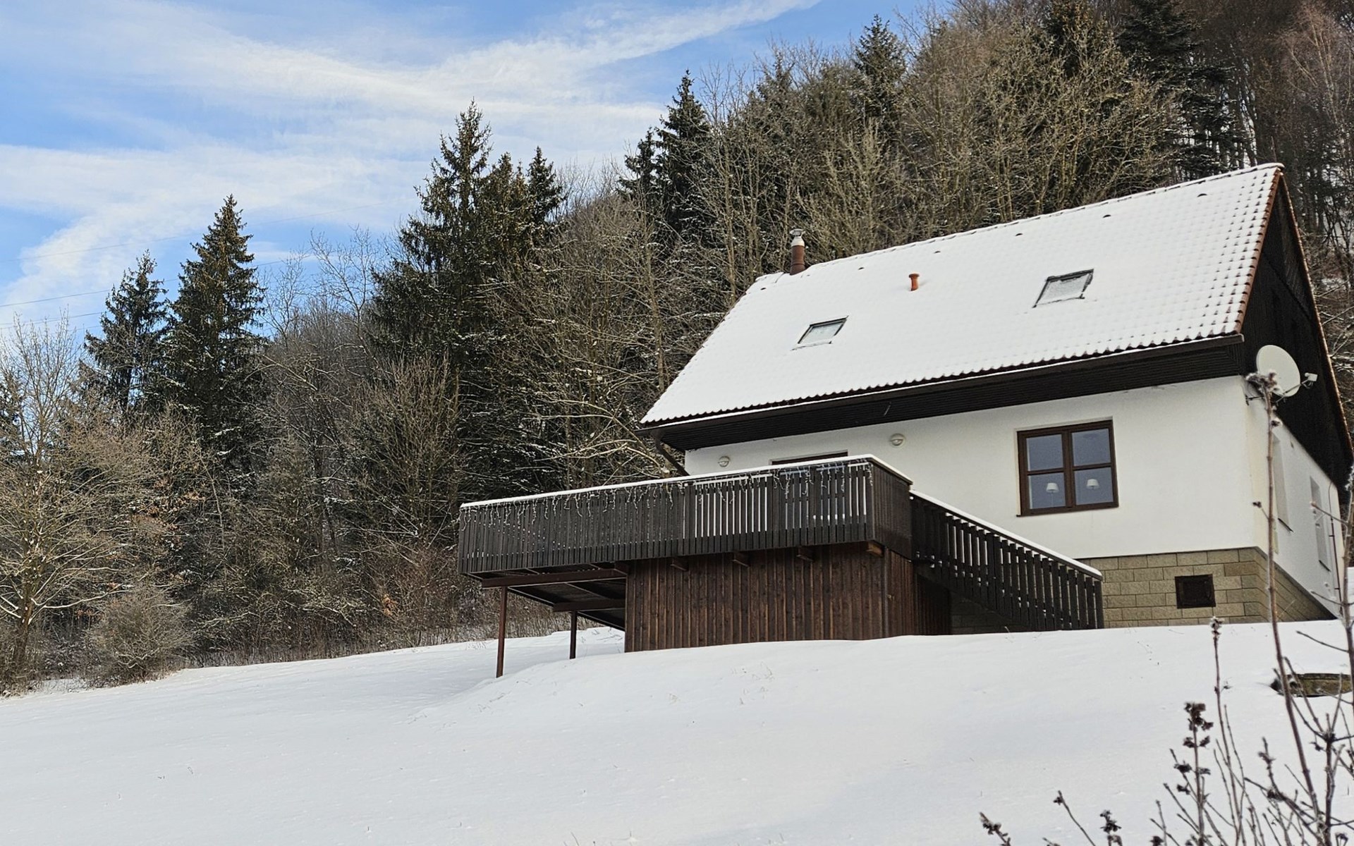 Stárkov 18 km from Náchod: Resort "Stárkov", 450 m a.s.l., detached, built in 1997, renovated in 2015, surrounded by meadows. 22 houses in the resort. On the outskirts, in a sunny, elevated position on a slope, along the wooded area, 24 km from the lake, 10 km from the skiing area, in the countryside. For shared use: property 10 ha, meadow, pond, swimming pool (8 x 4 m, depth 150 cm, seasonal availability: 15.Jun. - 16.Sep.). Table tennis, volleyball, badminton, volleyball court, beach volleyball, patio, barbecue, fireplace, children's playground (slide, swing, sandbox). In the complex: reception, lounge, bistro, massage (extra). Billiard table, playroom, table football, trampoline, kiosk, storage room for bicycles, laundry (extra), bicycle rental. Linen change (suppl. charge extra). Towel change (suppl. charge extra). Room cleaning on request (extra). Bread roll service possible on request. Pre-arrival grocery service. 200 m long steep, narrow motor access. Parking (for 2 cars) at the house. Grocery 1 km, supermarket 8 km, restaurant 1 km, café 10 m, bus stop "Stárkov, mlékárna" 50 m, railway station "Hronov" 8 km, indoor swimming pool 18 km. Golf course (9 hole) 26 km, sailing school 26 km, tennis 500 m, minigolf 10 m, riding stable 10 m, walking paths from the house, cycle lane, ski lift 6 km, ski school 17 km, cross country ski track 100 m, ice rink 8 km, children's playground 10 m. Nearby attractions: Adršpašsko-teplické skály 15 km, Náchod 17 km, Broumovské stěny 17 km, Ratibořice a Babiččino údolí 22 km, Broumov 24 km, Relaxpark Pec pod Sněžkou 50 km. Well-known ski regions can easily be reached: Radvanice 10 km, Petříkovice 17 km, Mladé Buky 36 km. Well-known lakes can easily be reached: vodní nádrž Rozkoš 26 km. Please note: suitable for families, baby equipment on request (included). Electric cars cannot be charged from the power supply of the rented house.