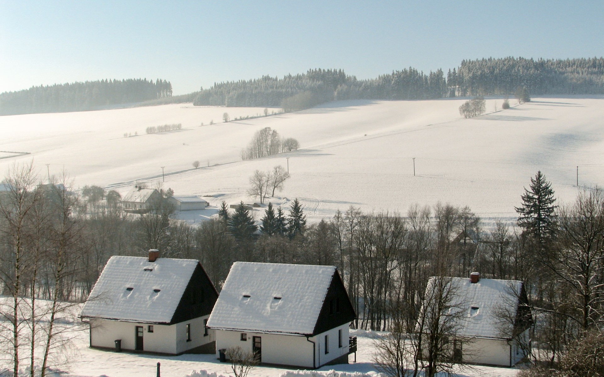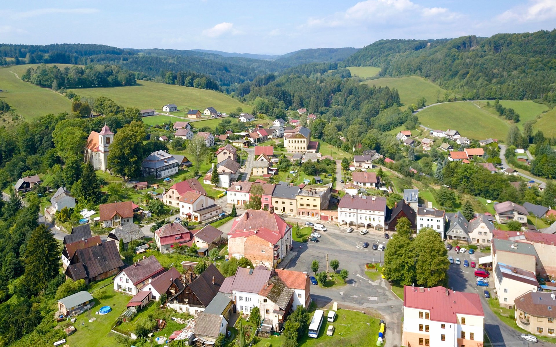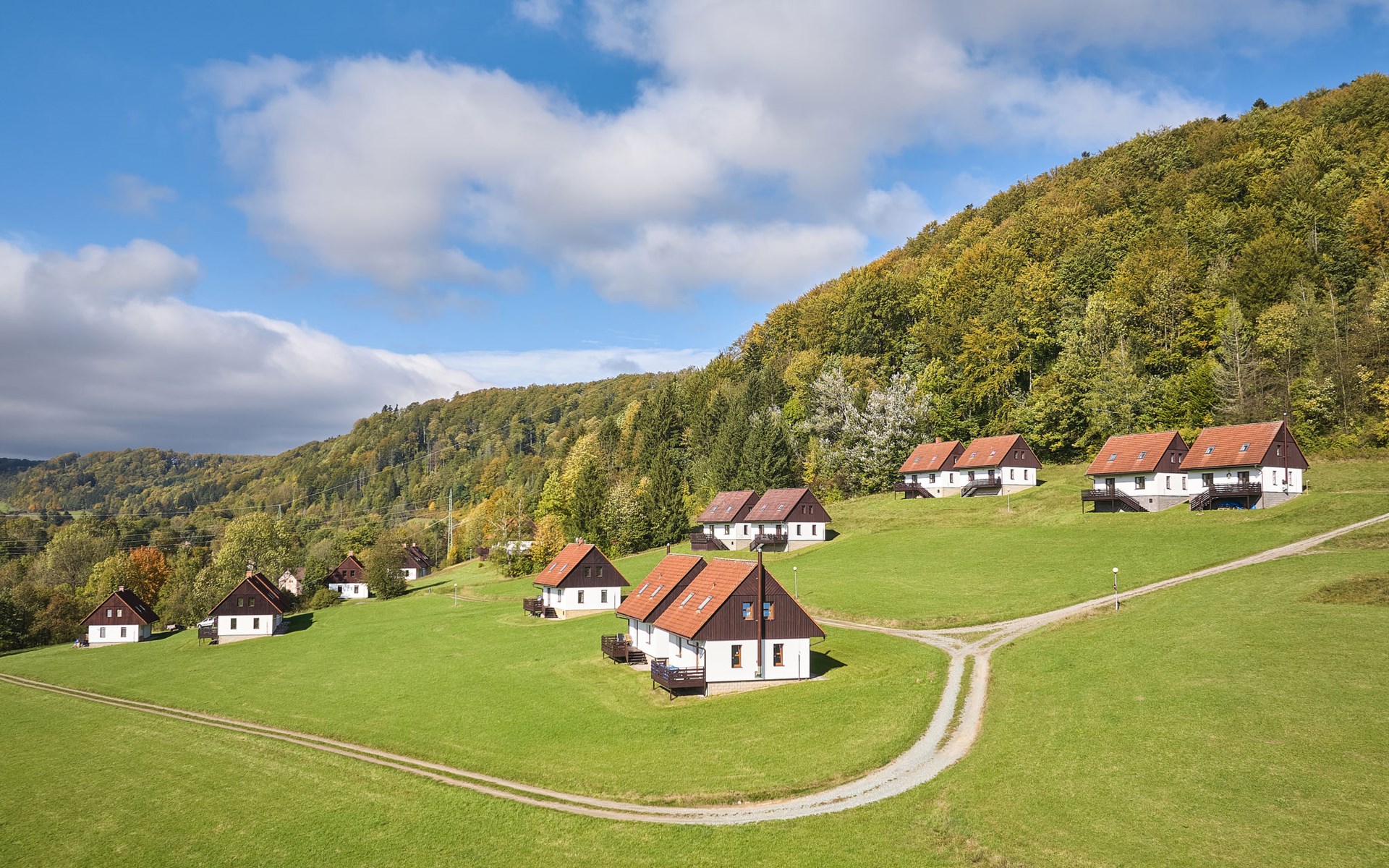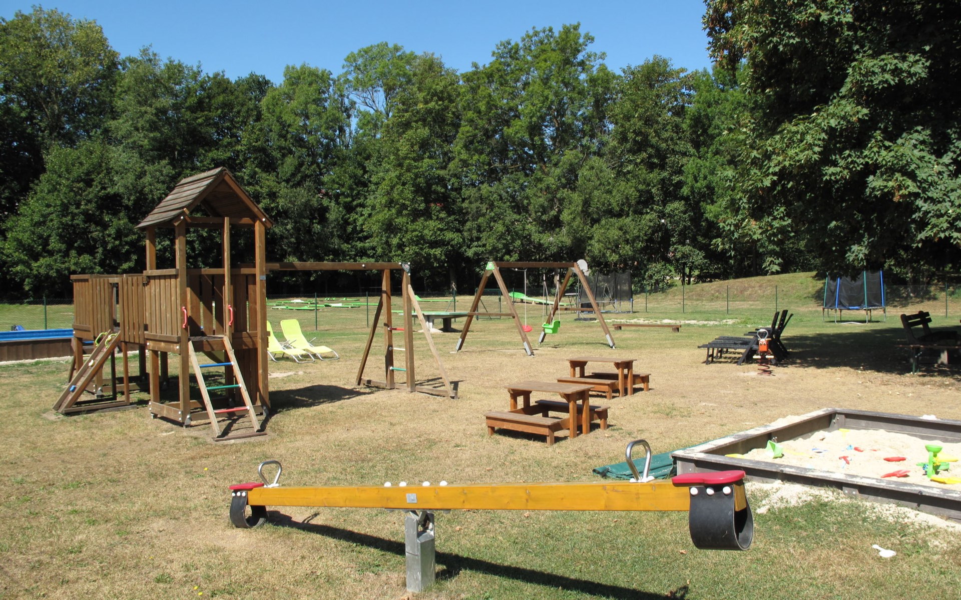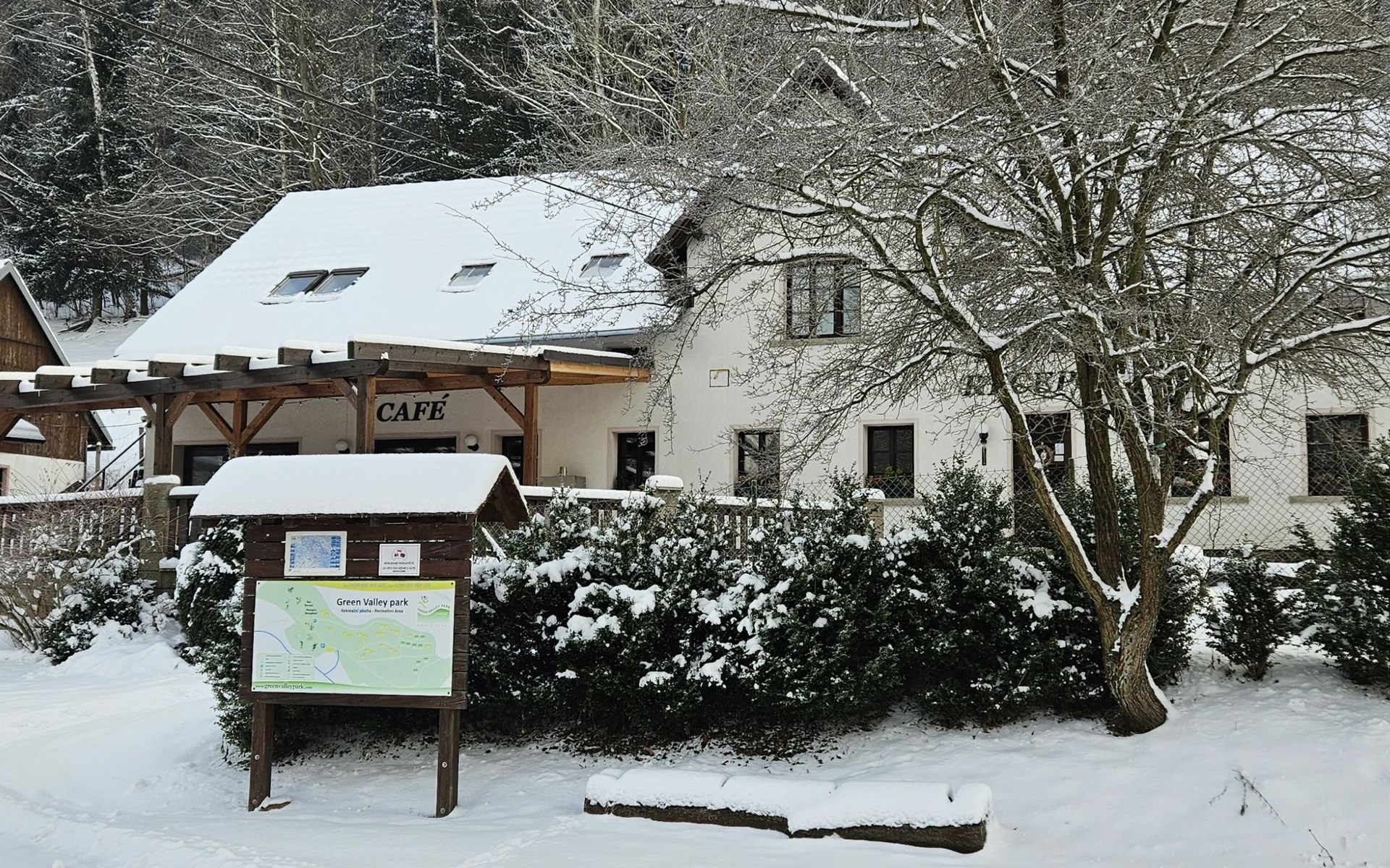Stárkov 18 km from Náchod: Resort "Stárkov", 450 m a.s.l., detached, built in 1997, renovated in 2015, surrounded by meadows. 22 houses in the resort. On the outskirts, in a sunny, elevated position on a slope, along the wooded area, 24 km from the lake, 10 km from the skiing area, in the countryside. For shared use: property 10 ha, meadow, pond, swimming pool (8 x 4 m, depth 150 cm, seasonal availability: 15.Jun. - 16.Sep.). Table tennis, volleyball, badminton, volleyball court, beach volleyball, patio, barbecue, fireplace, children's playground (slide, swing, sandbox). In the complex: reception, lounge, bistro, massage (extra). Billiard table, playroom, table football, trampoline, kiosk, storage room for bicycles, laundry (extra), bicycle rental. Linen change (suppl. charge extra). Towel change (suppl. charge extra). Room cleaning on request (extra). Bread roll service possible on request. Pre-arrival grocery service. 200 m long steep, narrow motor access. Parking (for 2 cars) at the house. Grocery 1 km, supermarket 8 km, restaurant 1 km, café 10 m, bus stop "Stárkov, mlékárna" 50 m, railway station "Hronov" 8 km, indoor swimming pool 18 km. Golf course (9 hole) 26 km, sailing school 26 km, tennis 500 m, minigolf 10 m, riding stable 10 m, walking paths from the house, cycle lane, ski lift 6 km, ski school 17 km, cross country ski track 100 m, ice rink 8 km, children's playground 10 m. Nearby attractions: Adršpašsko-teplické skály 15 km, Náchod 17 km, Broumovské stěny 17 km, Ratibořice a Babiččino údolí 22 km, Broumov 24 km, Relaxpark Pec pod Sněžkou 50 km. Well-known ski regions can easily be reached: Radvanice 10 km, Petříkovice 17 km, Mladé Buky 36 km. Well-known lakes can easily be reached: vodní nádrž Rozkoš 26 km. Please note: suitable for families, baby equipment on request (included). Electric cars cannot be charged from the power supply of the rented house.