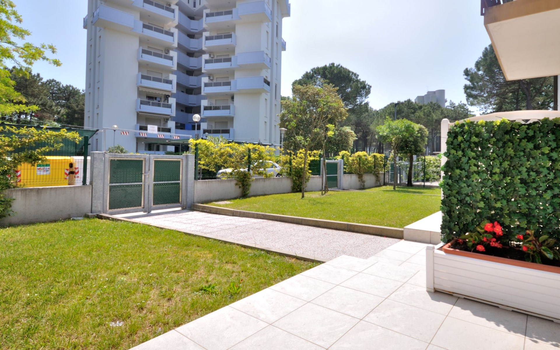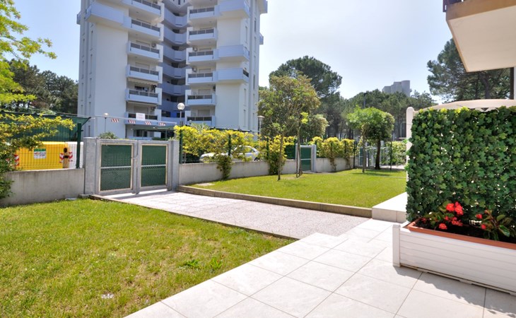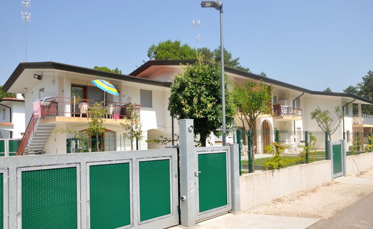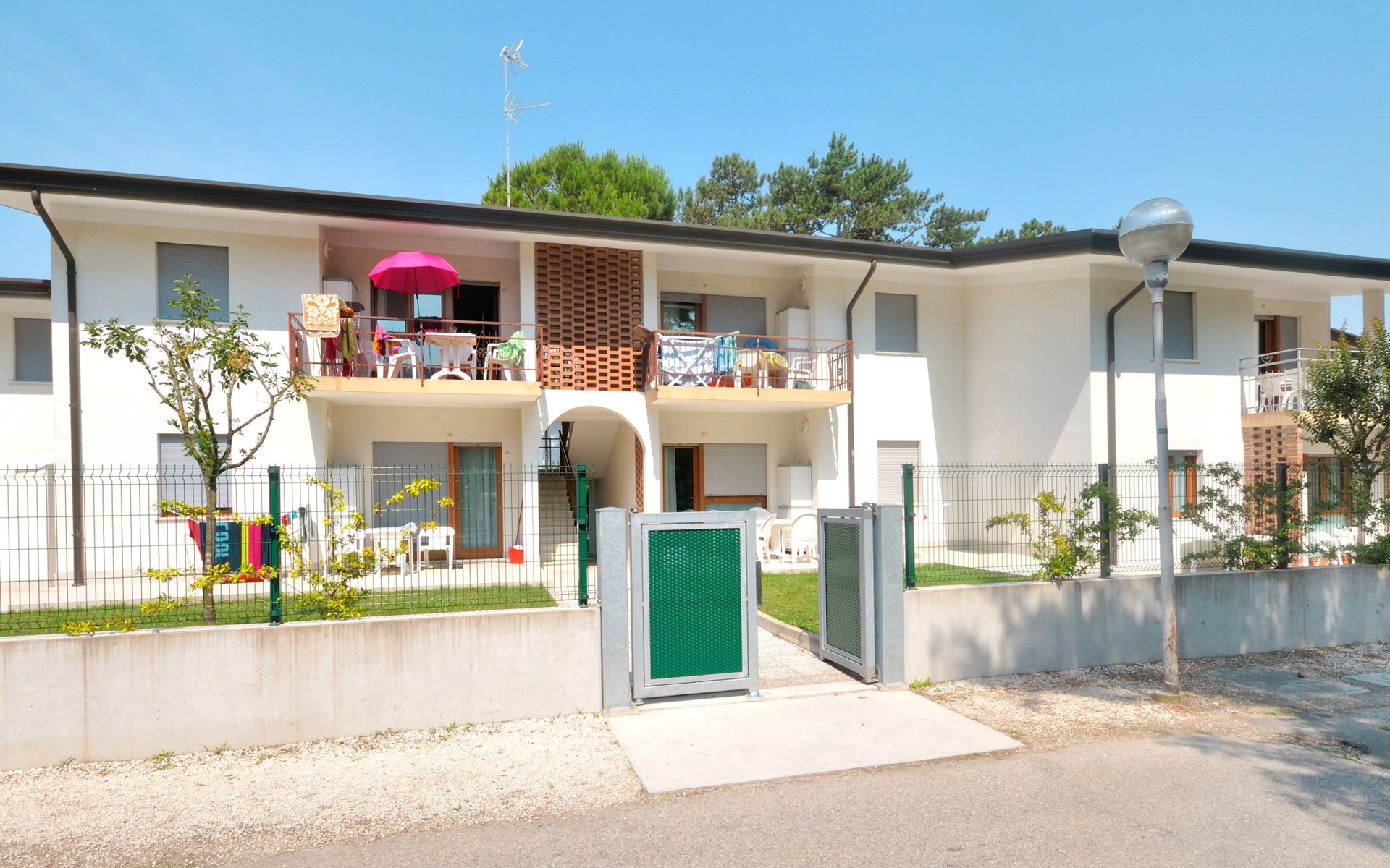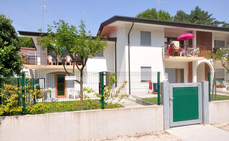 Small resort "Villaggio Delfino". In the district of Lido del Sole 100 m from the centre of Bibione-Lido del Sole, 13 km from the centre of Lignano, 100 km from the centre of Venezia, 350 m from the sea. For shared use: property (fenced) with plants and trees. Shop 100 m, restaurant 250 m, bus stop 150 m, railway station "Latisana (Milano-Venezia-Triest)" 21 km, sandy beach 350 m. Golf course (18 hole) 10 km. Nearby attractions: Oasi Naturalistica Val Grande - Bibione. The photo is just an example.