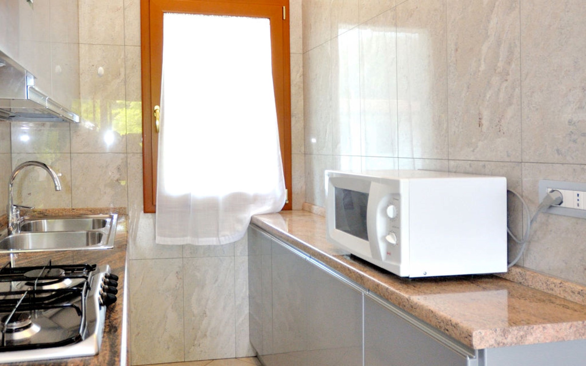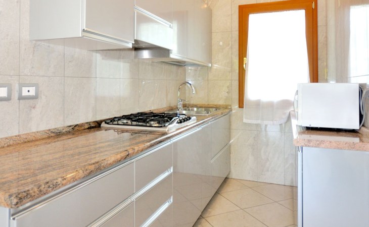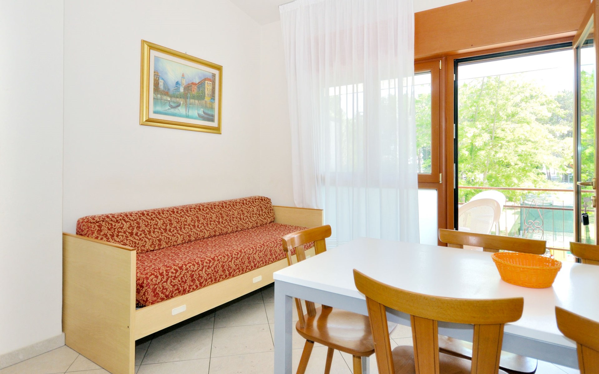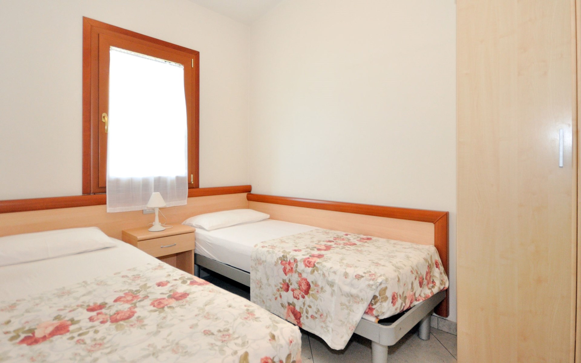Small resort "Villaggio Delfino". In the district of Lido del Sole 100 m from the centre of Bibione-Lido del Sole, 13 km from the centre of Lignano, 100 km from the centre of Venezia, 350 m from the sea. For shared use: property (fenced) with plants and trees. Shop 100 m, restaurant 250 m, bus stop 150 m, railway station "Latisana (Milano-Venezia-Triest)" 21 km, sandy beach 350 m. Golf course (18 hole) 10 km. Nearby attractions: Oasi Naturalistica Val Grande - Bibione. The photo is just an example.
