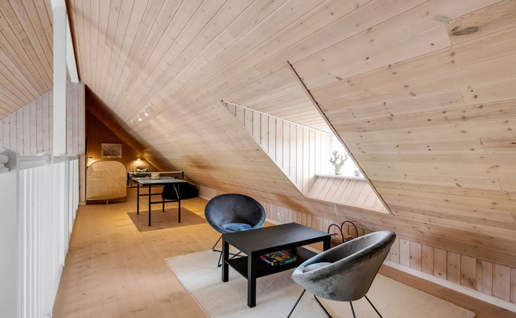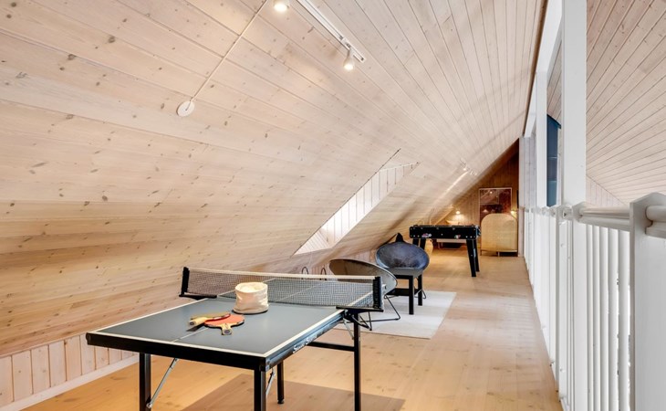 Single-family house, built in 2006. 1.5 km from the sea. Private: natural state property 1'835 m2. In the house: sauna, table football, washing machine. Parking at the house. E-charging station. Grocery 1 km. The owner does not accept any youth groups.