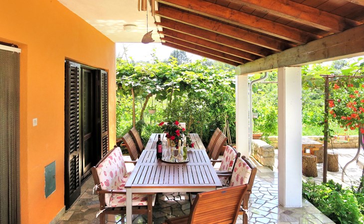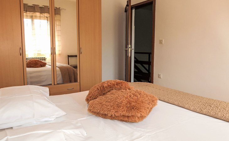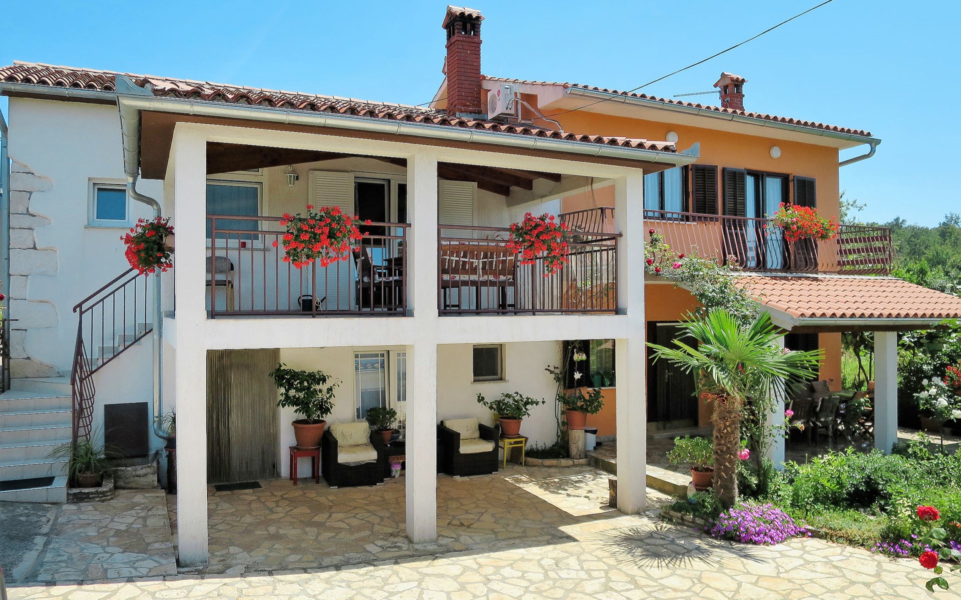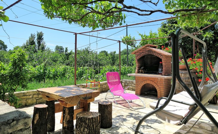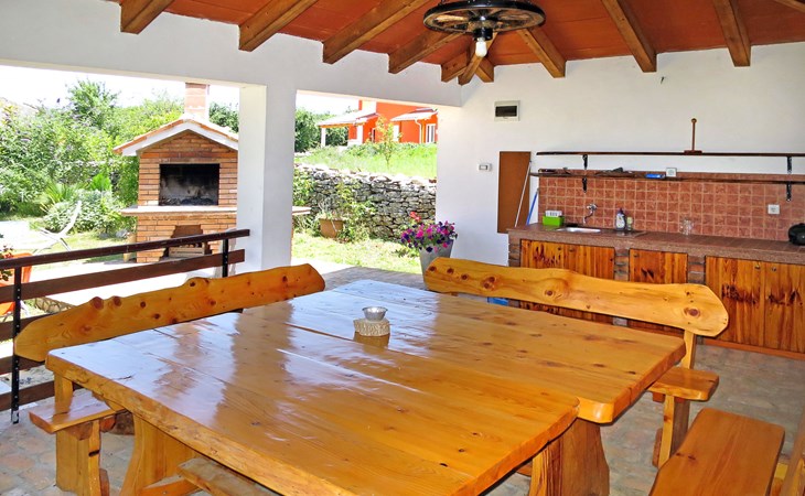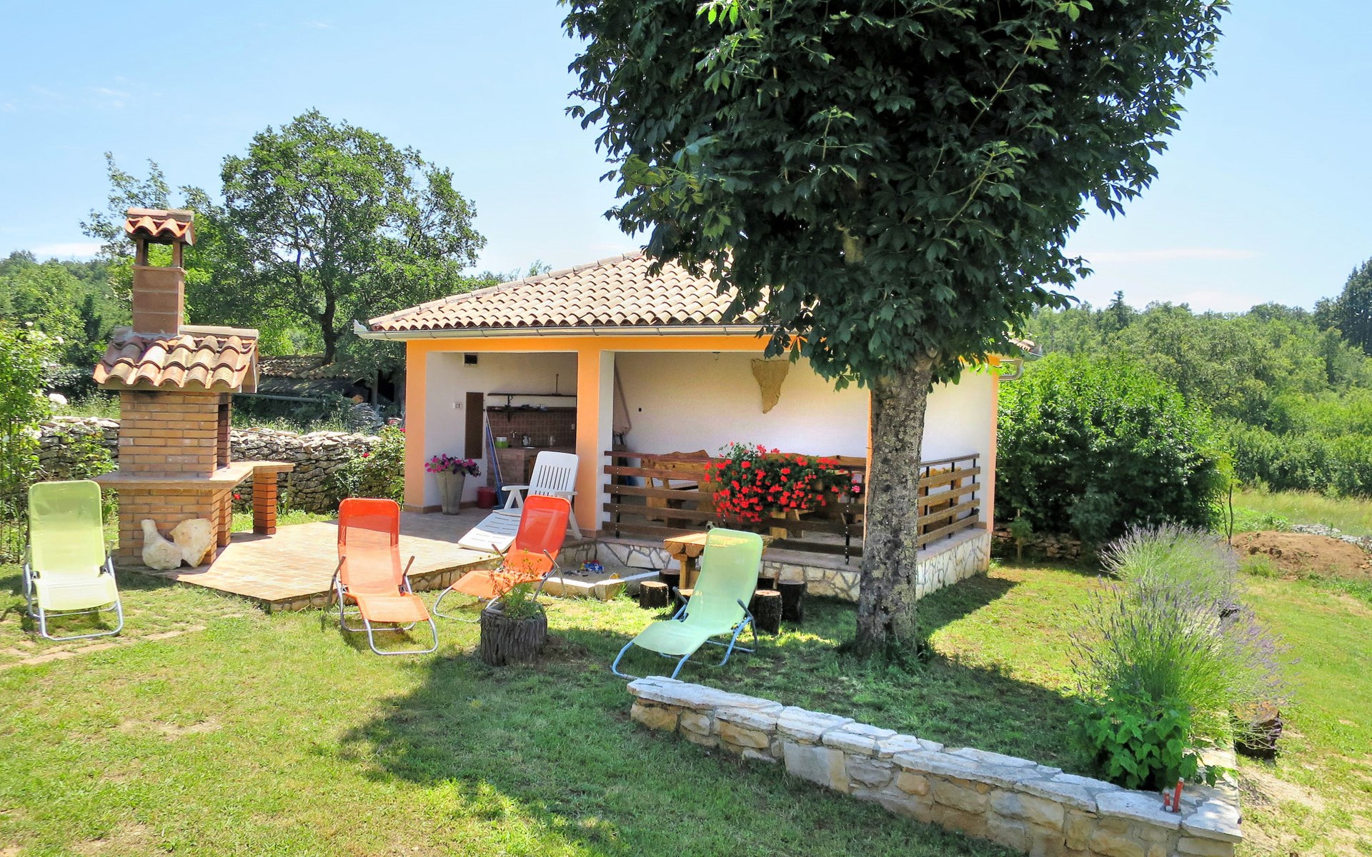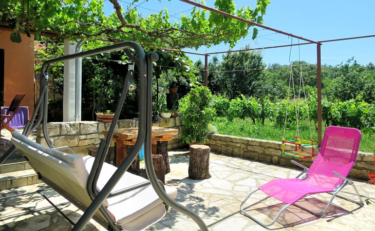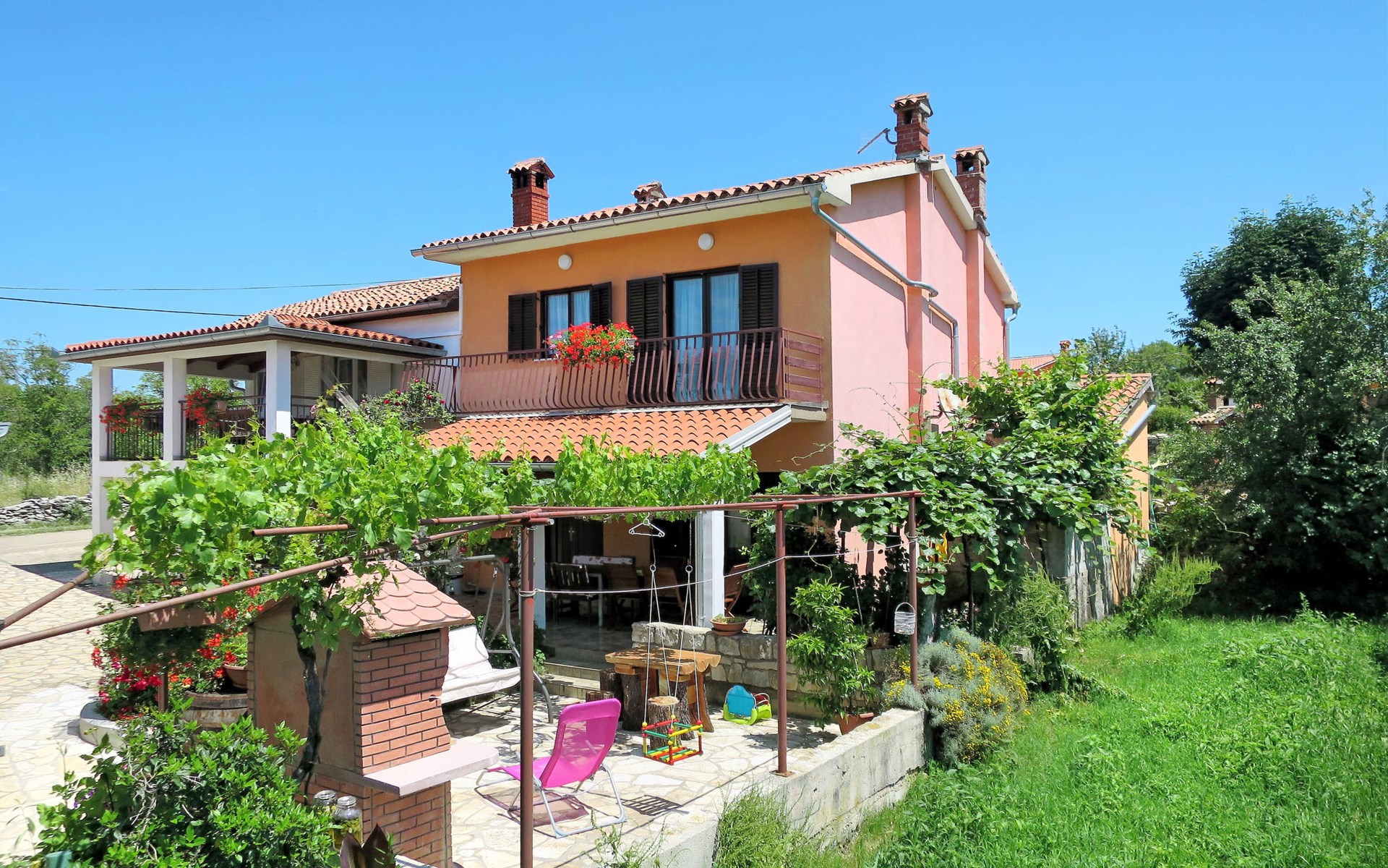 Semi-detached house "La Donja", 2 storeys. In the hamlet Paradiž 10 km from the centre of Labin, 1 km from the centre of Sveti Martin, 14 km from the centre of Rabac, 14 km from the sea. For shared use: property 1'700 m2 with lawn and plants. Private: property 200 m2 with lawn, swimming pool (above ground) angular (5 x 2 m, 15 m2, depth 110 cm, seasonal availability: 08.May. - 25.Sep.). Terrace, garden furniture, barbecue. In the house: internet access, washing machine. Parking (for 3 cars) at the house on the premises. Shop 1 km, supermarket 10 km, restaurant 1 km, bus stop 9.9 km, pebble beach 14 km. Marina 14 km. For private use: outdoor kitchen (2 hot plates).