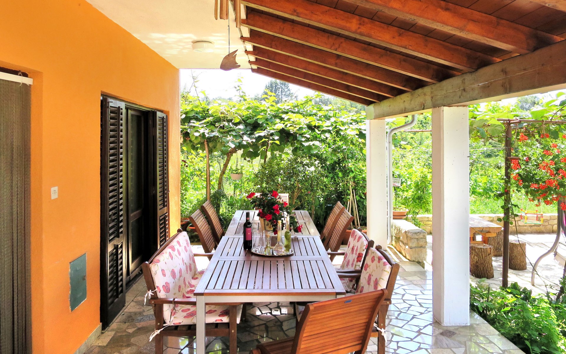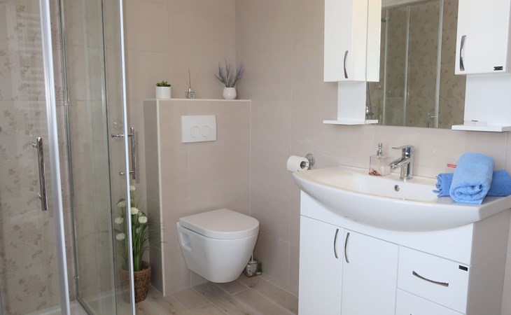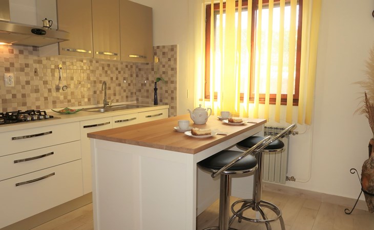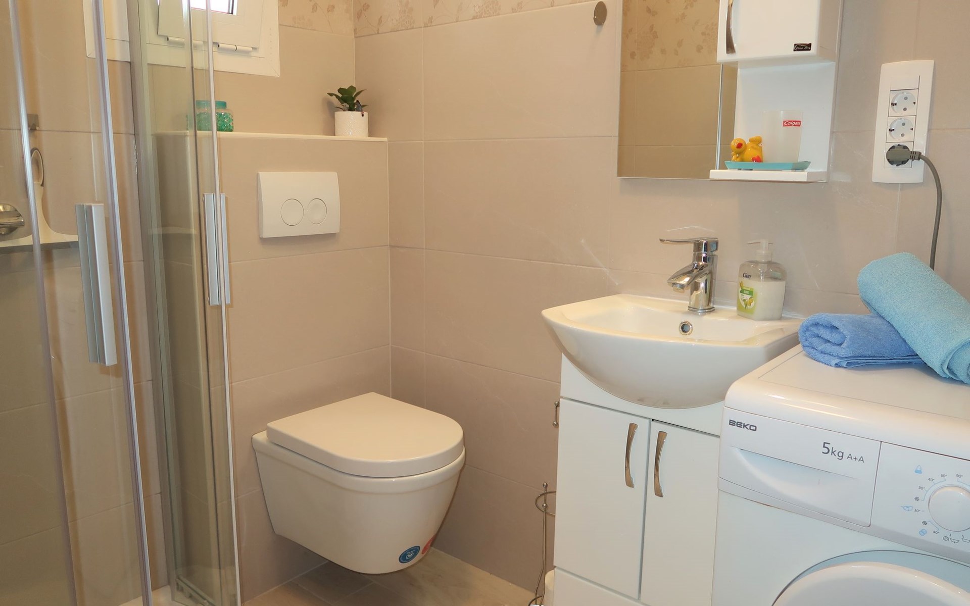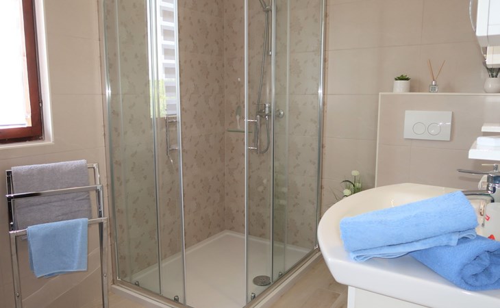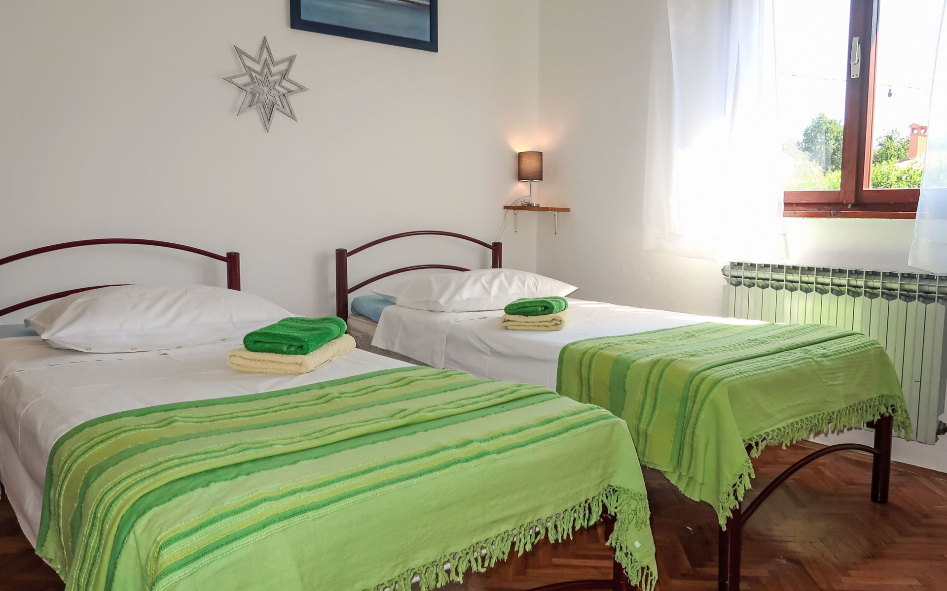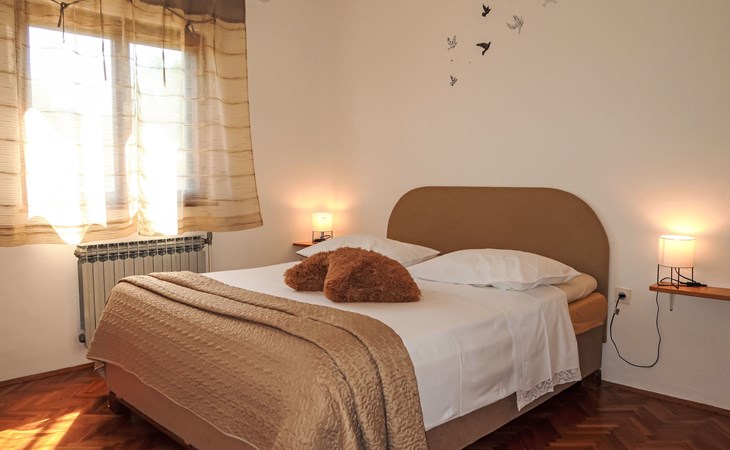 Semi-detached house "La Donja", 2 storeys. In the hamlet Paradiž 10 km from the centre of Labin, 1 km from the centre of Sveti Martin, 14 km from the centre of Rabac, 14 km from the sea. For shared use: property 1'700 m2 with lawn and plants. Private: property 200 m2 with lawn, swimming pool (above ground) angular (5 x 2 m, 15 m2, depth 110 cm, seasonal availability: 08.May. - 25.Sep.). Terrace, garden furniture, barbecue. In the house: internet access, washing machine. Parking (for 3 cars) at the house on the premises. Shop 1 km, supermarket 10 km, restaurant 1 km, bus stop 9.9 km, pebble beach 14 km. Marina 14 km. For private use: outdoor kitchen (2 hot plates).