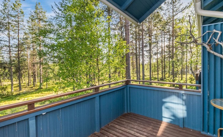Access to the balcony with views of the surrounding countryside is from the living room.