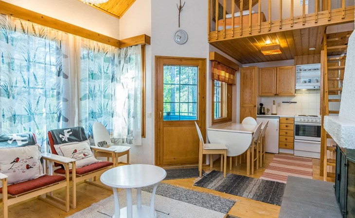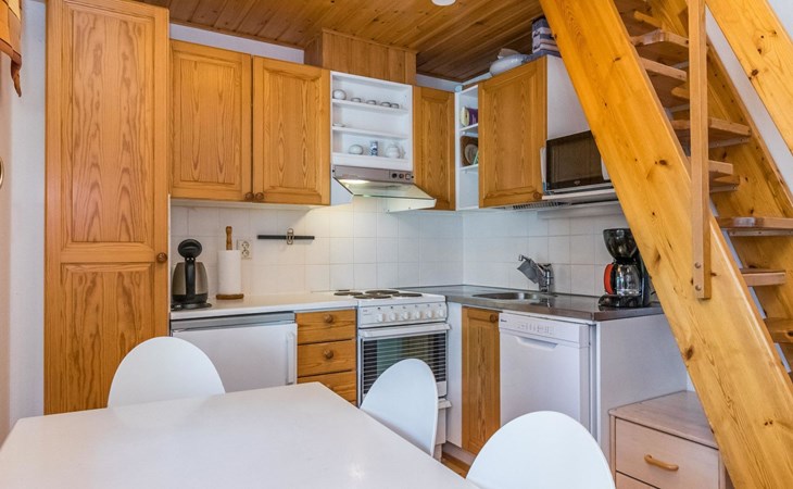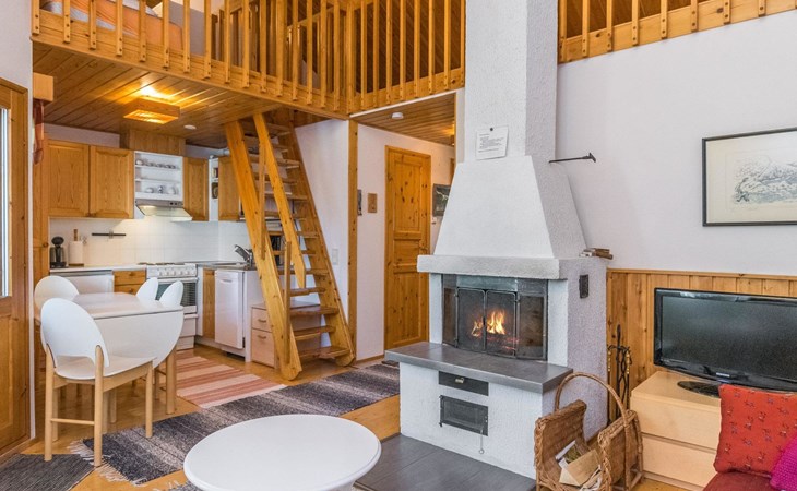 The apartment's kitchen-living room offers the opportunity to spend time with the whole family enjoying the warmth of the fireplace.