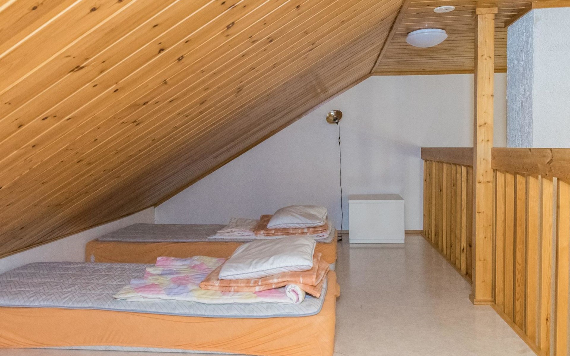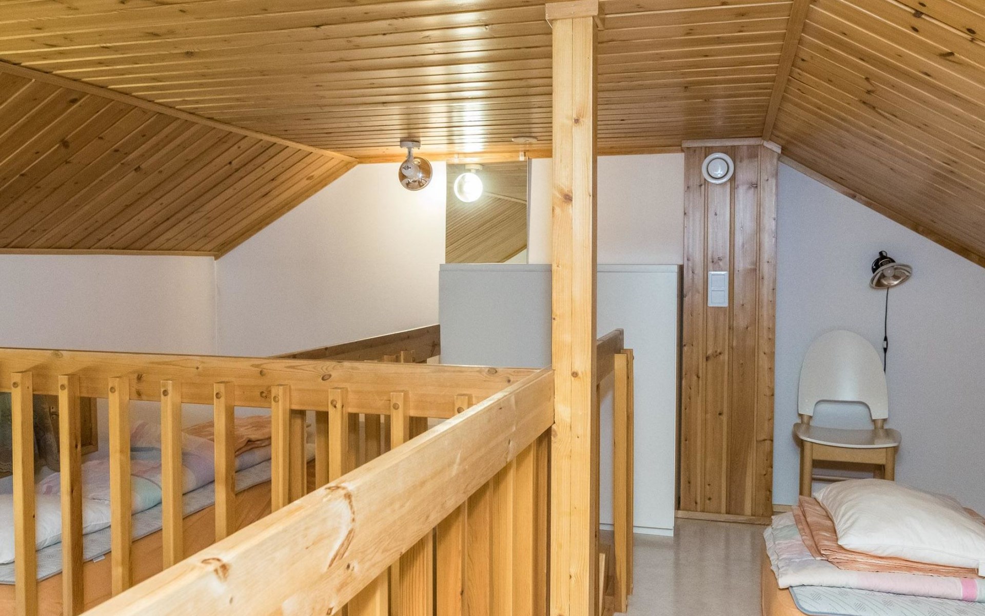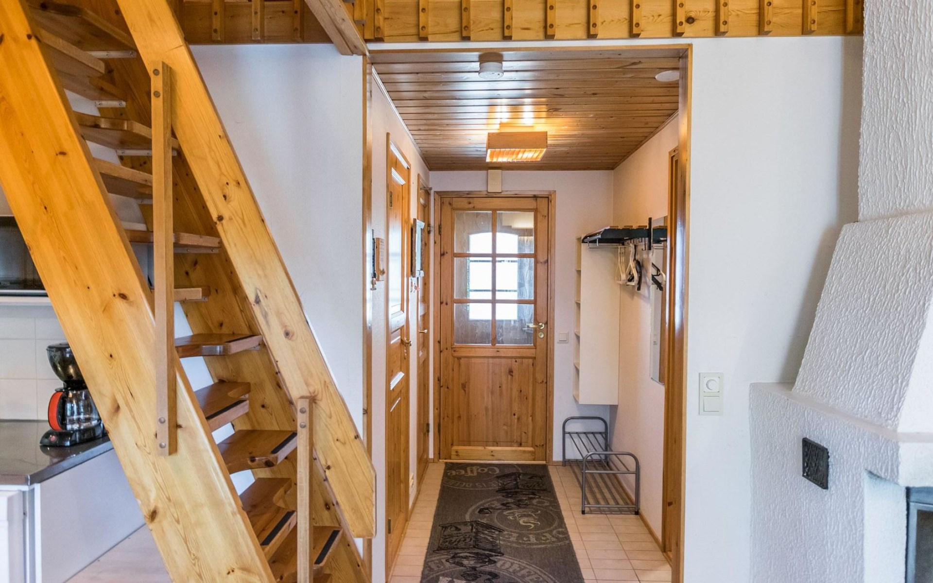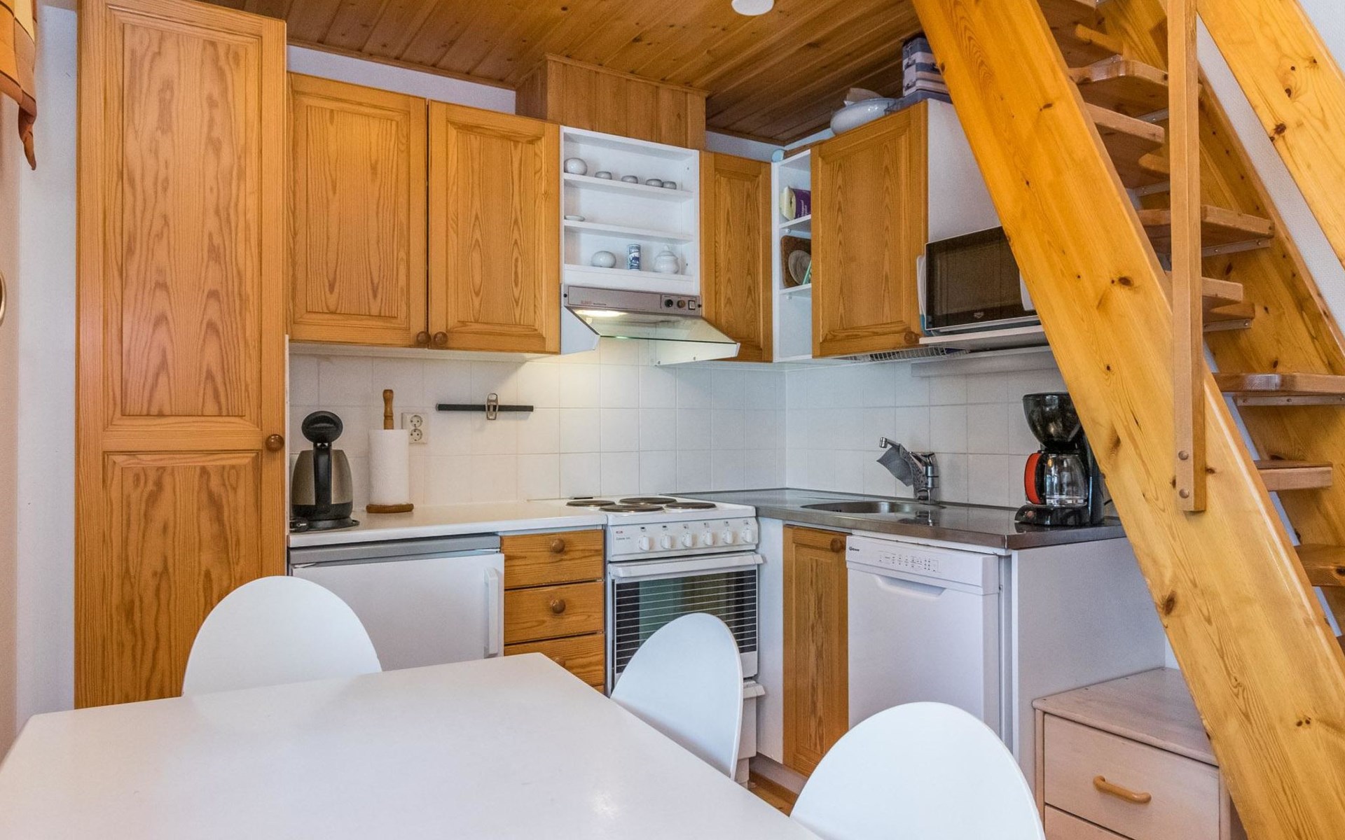 From the kitchen, steep stairs (no child gate) lead to the loft.