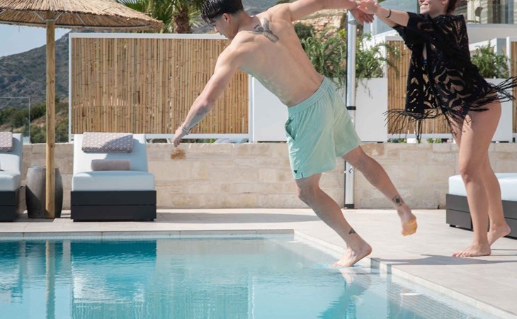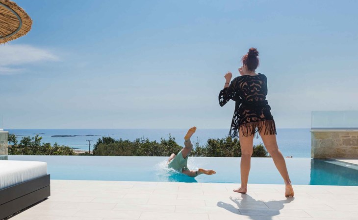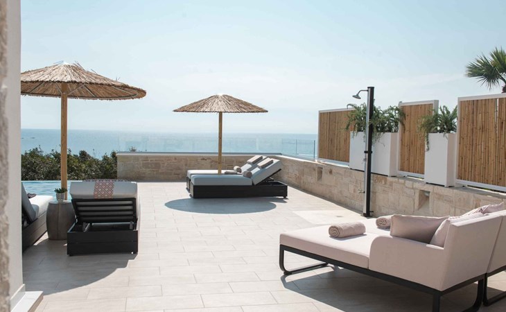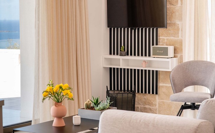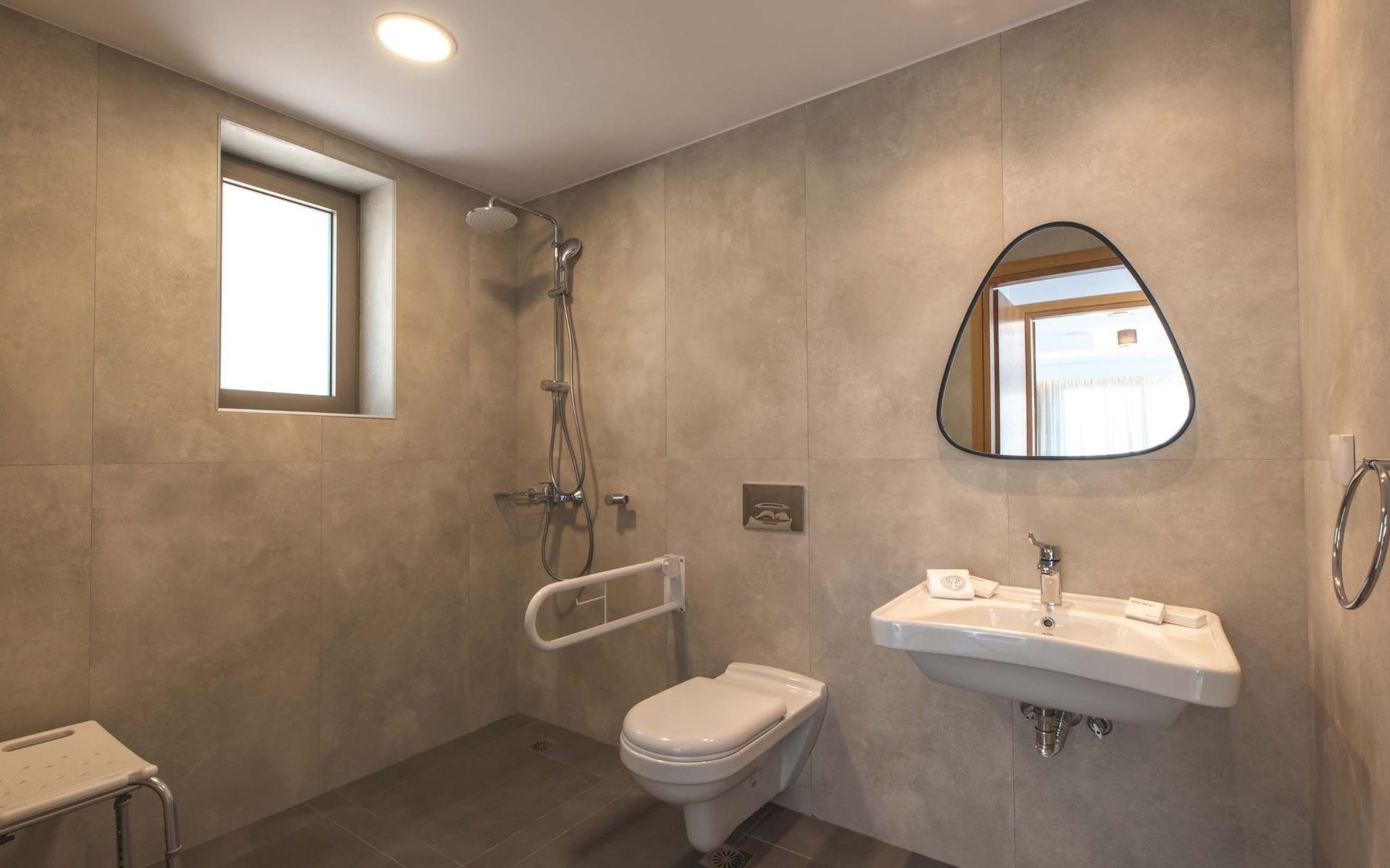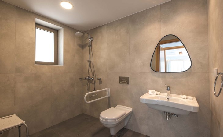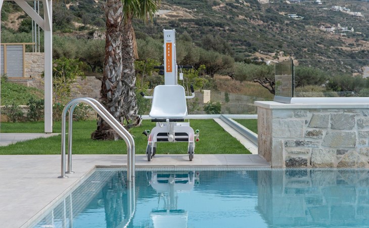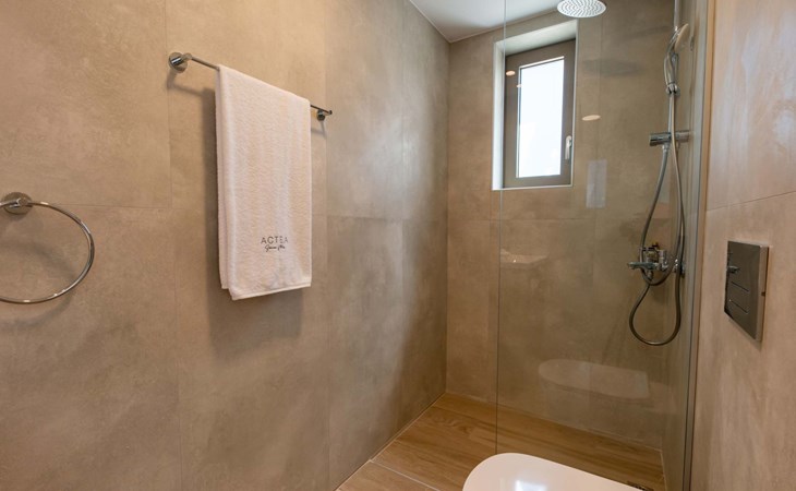 Actea Seaview Villa I is suitable for guests with mobility needs. Upon request, the bedroom on the ground floor can be converted into a bedroom for guests with mobility needs with a single mattress of 0.80x2.00. The bathroom on the same floor is already prepared for those guests, Last but not least, a pool lift can be added upon request at the swimming pool.