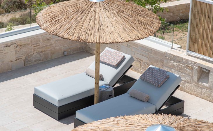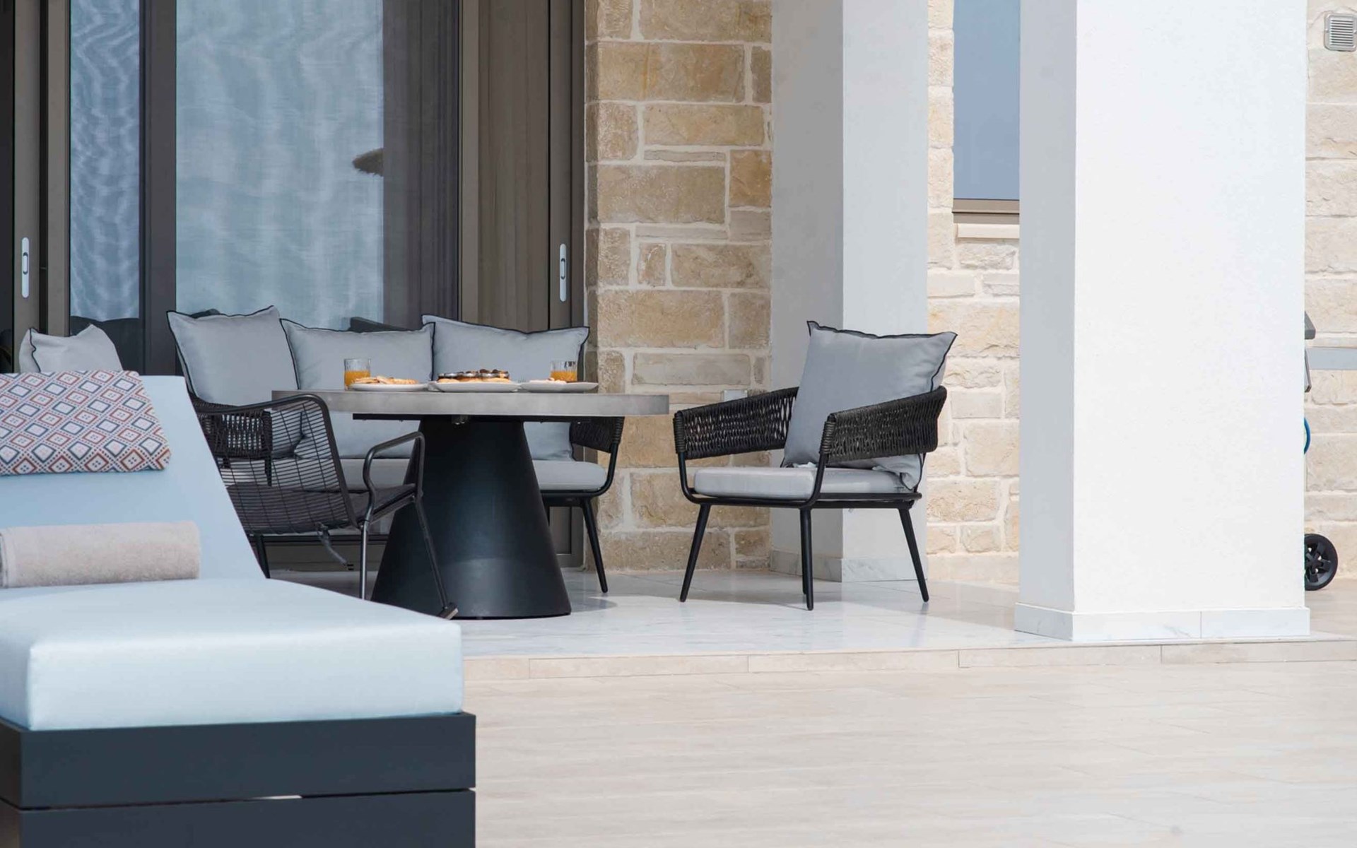 The spacious outdoor area offers panoramic sea views to the early sunrises, offering them beautiful sunsets too. Enjoy the sun and a good book under the sun! Last but not least for lovers of cocktails and drinks you can enjoy one right next to the dining area where you can relax and have some fun moments with your loved ones. Don’t forget that a secure parking area is provided outside the villa.