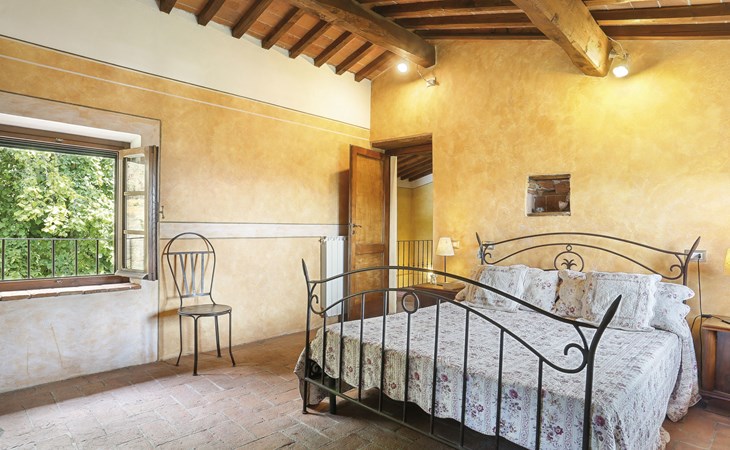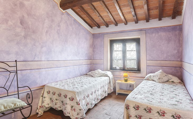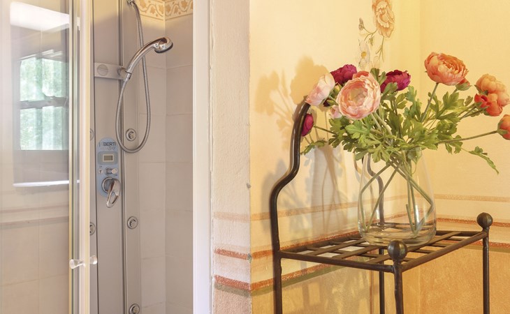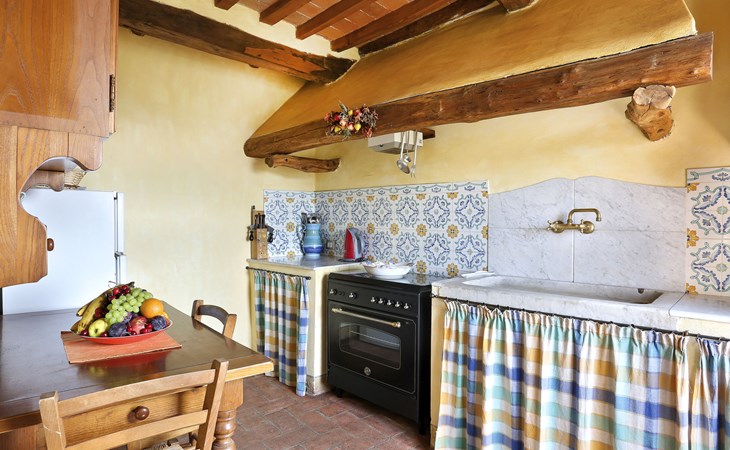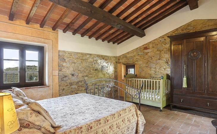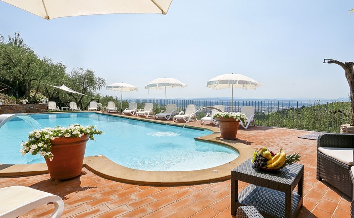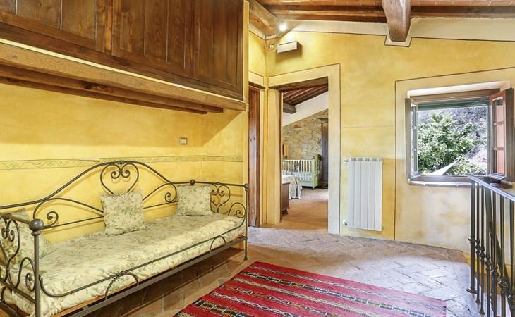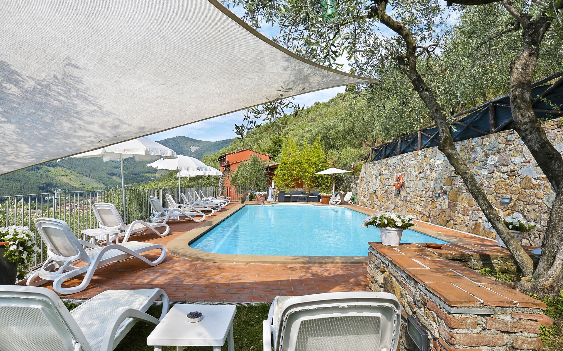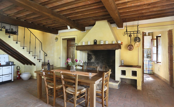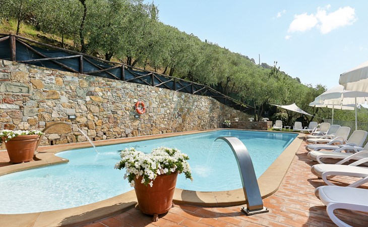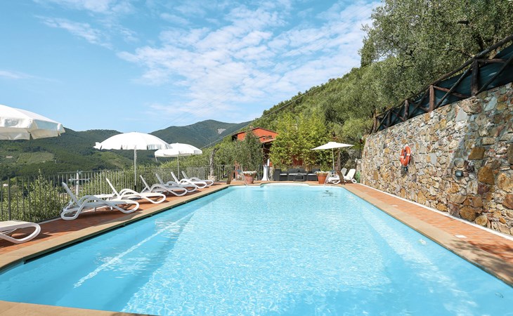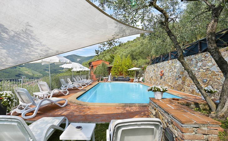 Farmhouse "San Bastiano", 160 m a.s.l., detached, renovated. 2 apartments in the property. 1 km from the centre of Buti, 24 km from the centre of Lucca, 25 km from the centre of Pisa, in a secluded position on a slope, 40 km from the sea. For shared use: property 10'000 m2 (fenced), terraced garden with trees, meadow, swimming pool (13 x 5 m, depth 116 - 240 cm, seasonal availability: 02.May. - 03.Oct.). Outdoor shower, children's playground. In the house: washing machine (for shared use). 2 km long narrow motor access (mountain road). Parking on the premises. Shop 1 km, supermarket 3.6 km, bus stop 900 m, park "Marina di Pisa" 40 km. Please note: the owner lives on the same property. Possibility of direct sale of oil on the spot.