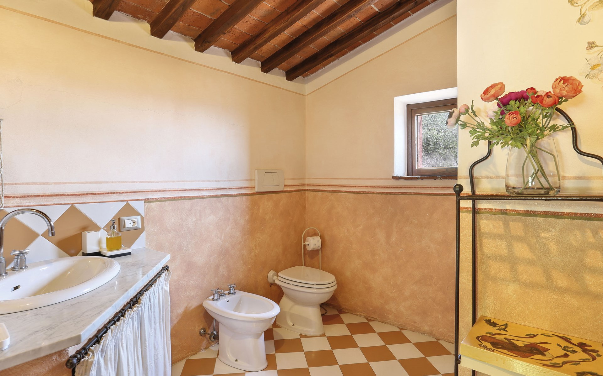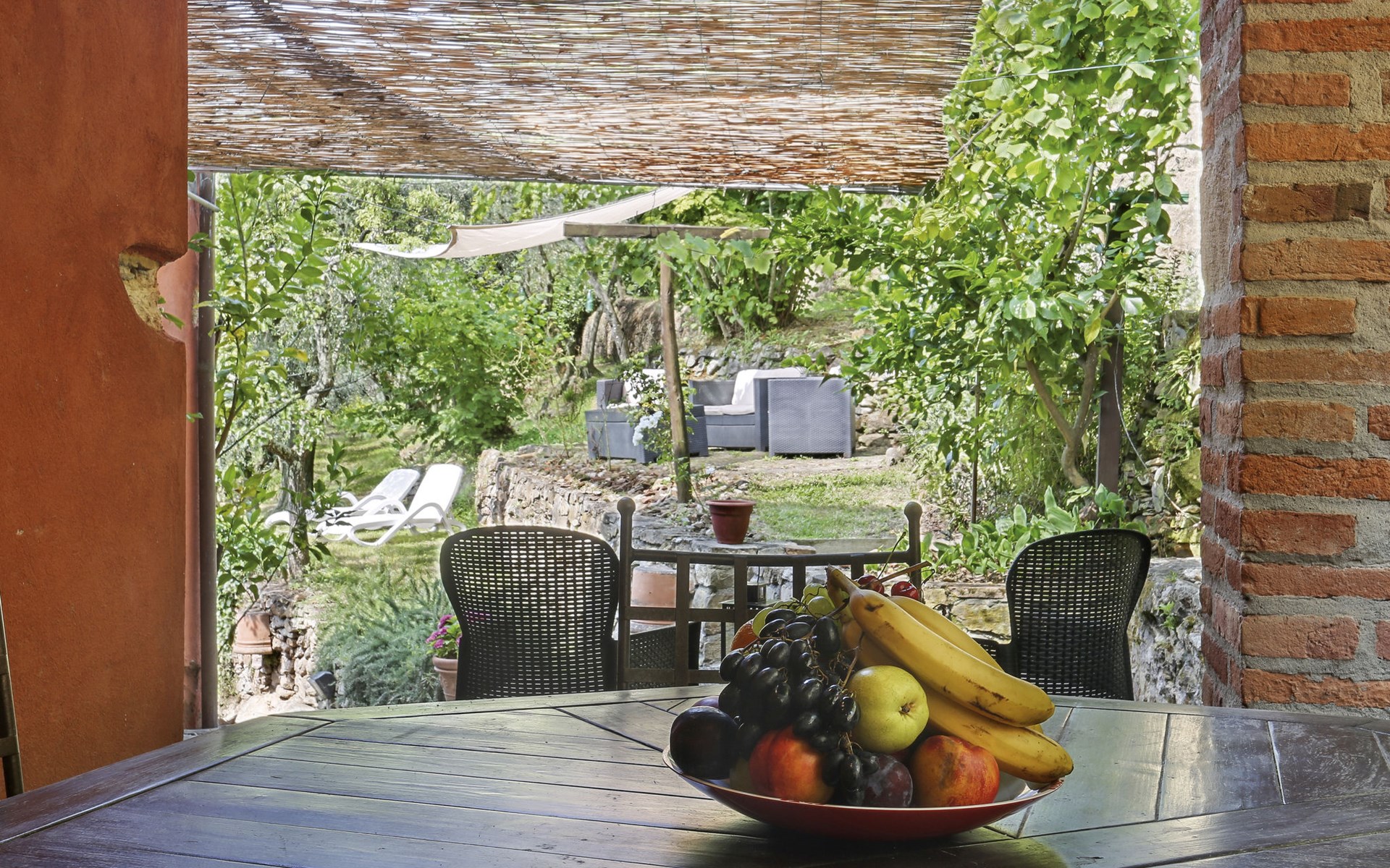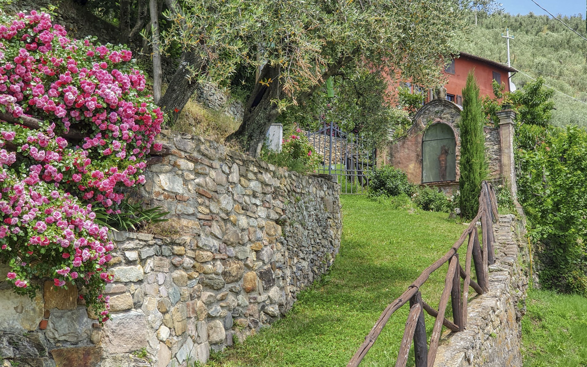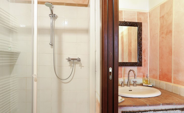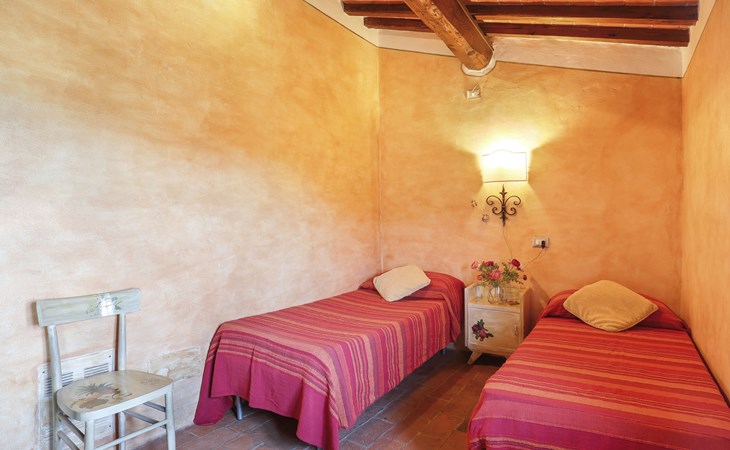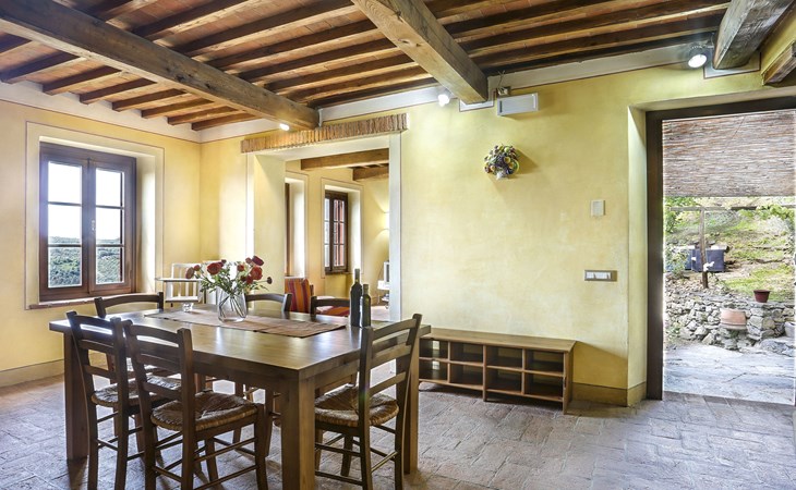 Farmhouse "San Bastiano", 160 m a.s.l., detached, renovated. 2 apartments in the property. 1 km from the centre of Buti, 24 km from the centre of Lucca, 25 km from the centre of Pisa, in a secluded position on a slope, 40 km from the sea. For shared use: property 10'000 m2 (fenced), terraced garden with trees, meadow, swimming pool (13 x 5 m, depth 116 - 240 cm, seasonal availability: 02.May. - 03.Oct.). Outdoor shower, children's playground. In the house: washing machine (for shared use). 2 km long narrow motor access (mountain road). Parking on the premises. Shop 1 km, supermarket 3.6 km, bus stop 900 m, park "Marina di Pisa" 40 km. Please note: the owner lives on the same property. Possibility of direct sale of oil on the spot.