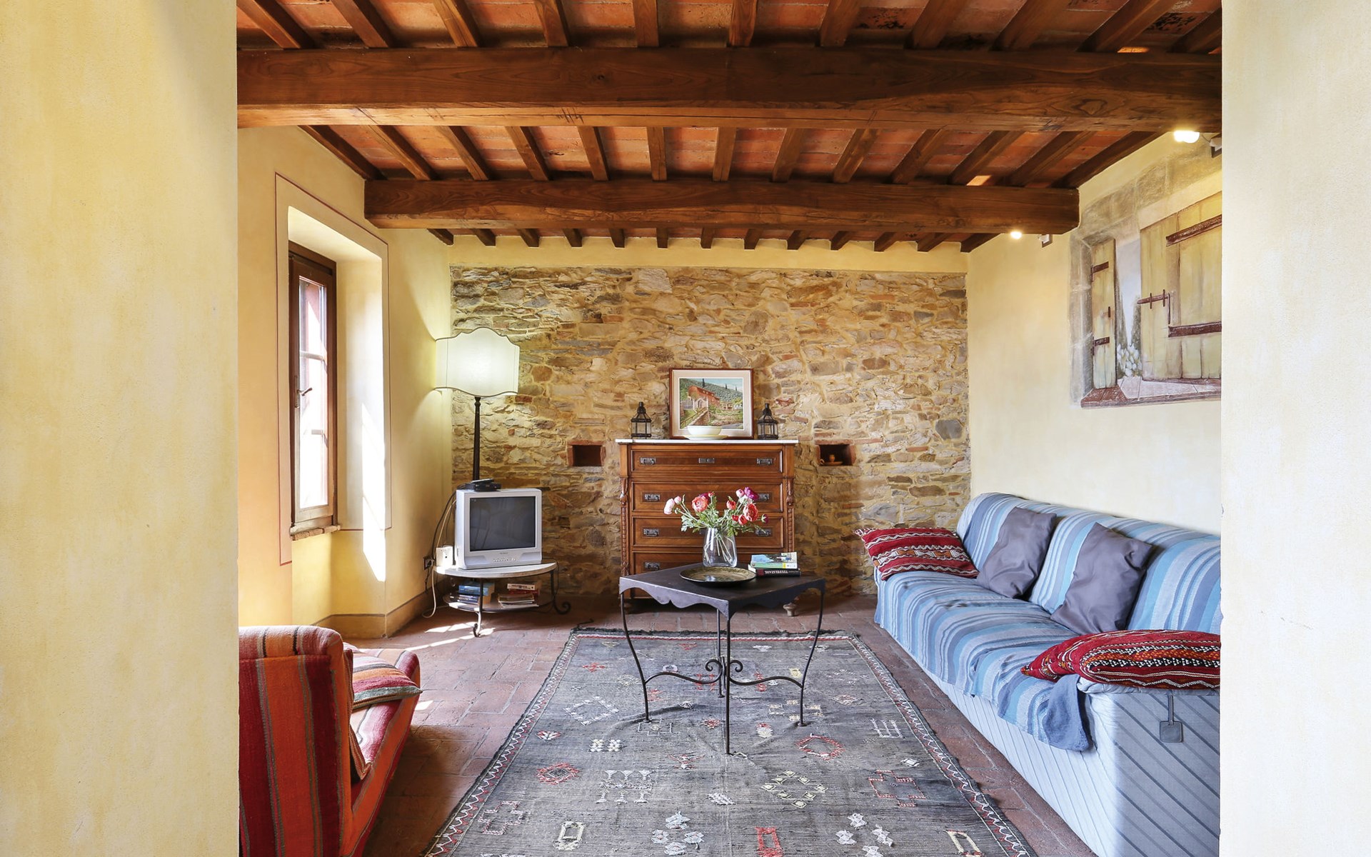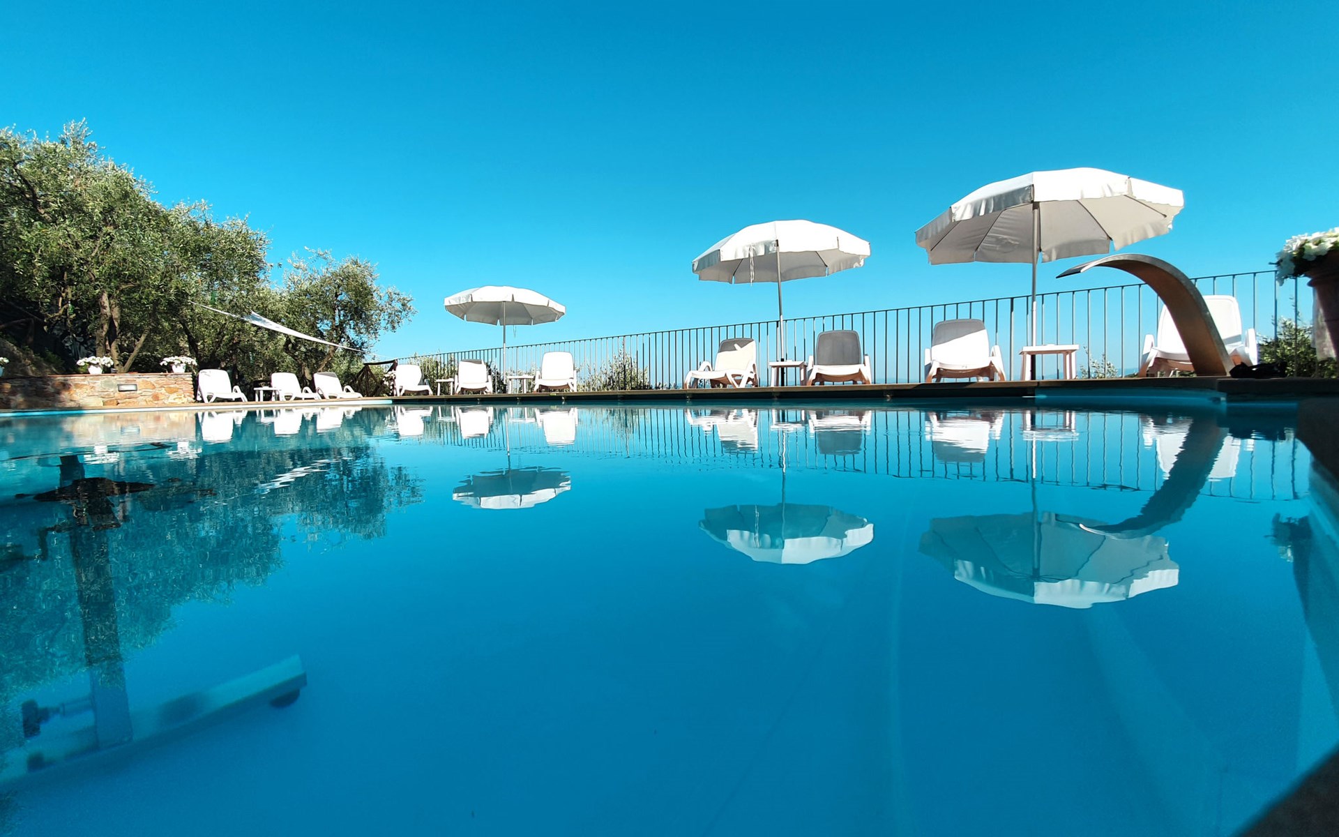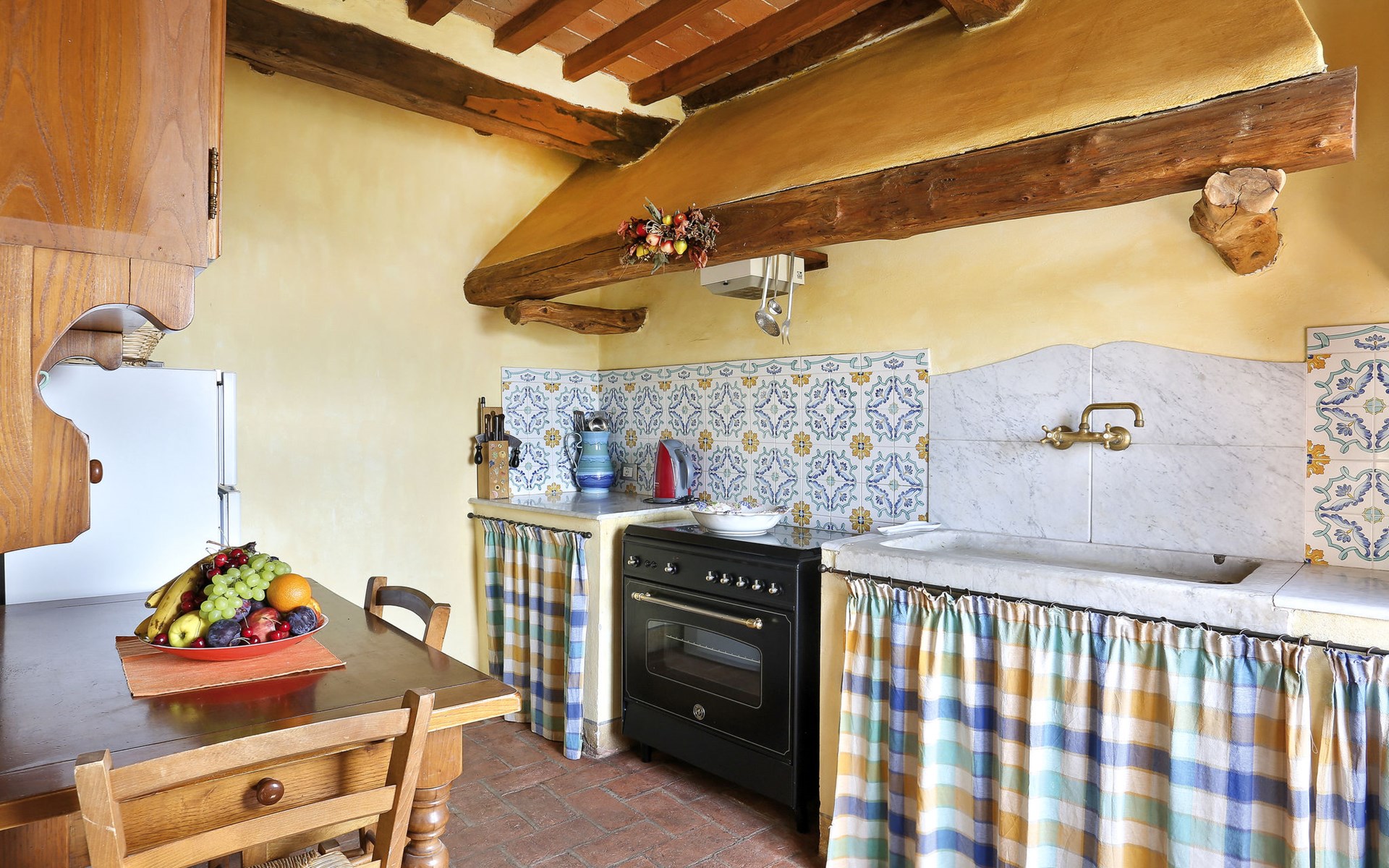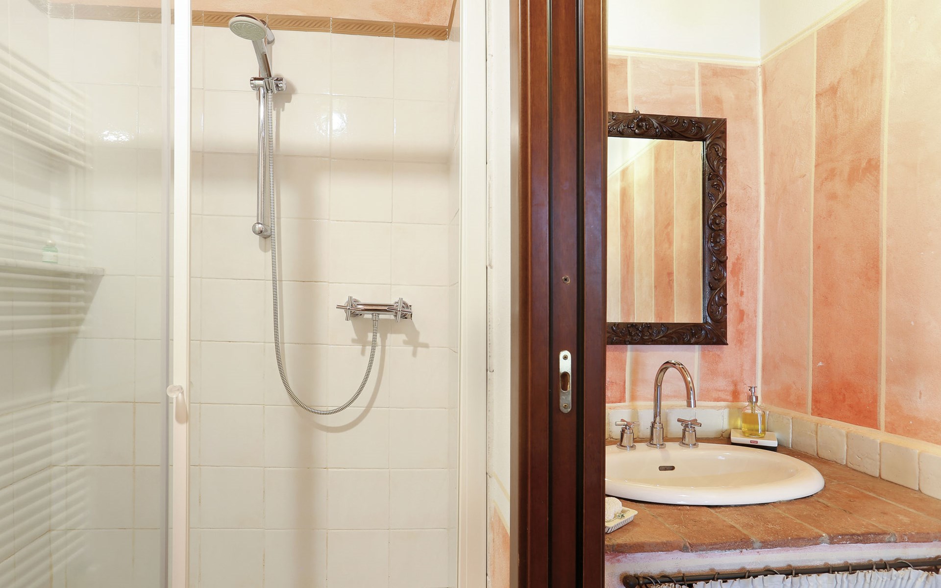 Farmhouse "San Bastiano", 160 m a.s.l., detached, renovated. 2 apartments in the property. 1 km from the centre of Buti, 24 km from the centre of Lucca, 25 km from the centre of Pisa, in a secluded position on a slope, 40 km from the sea. For shared use: property 10'000 m2 (fenced), terraced garden with trees, meadow, swimming pool (13 x 5 m, depth 116 - 240 cm, seasonal availability: 02.May. - 03.Oct.). Outdoor shower, children's playground. In the house: washing machine (for shared use). 2 km long narrow motor access (mountain road). Parking on the premises. Shop 1 km, supermarket 3.6 km, bus stop 900 m, park "Marina di Pisa" 40 km. Please note: the owner lives on the same property. Possibility of direct sale of oil on the spot.