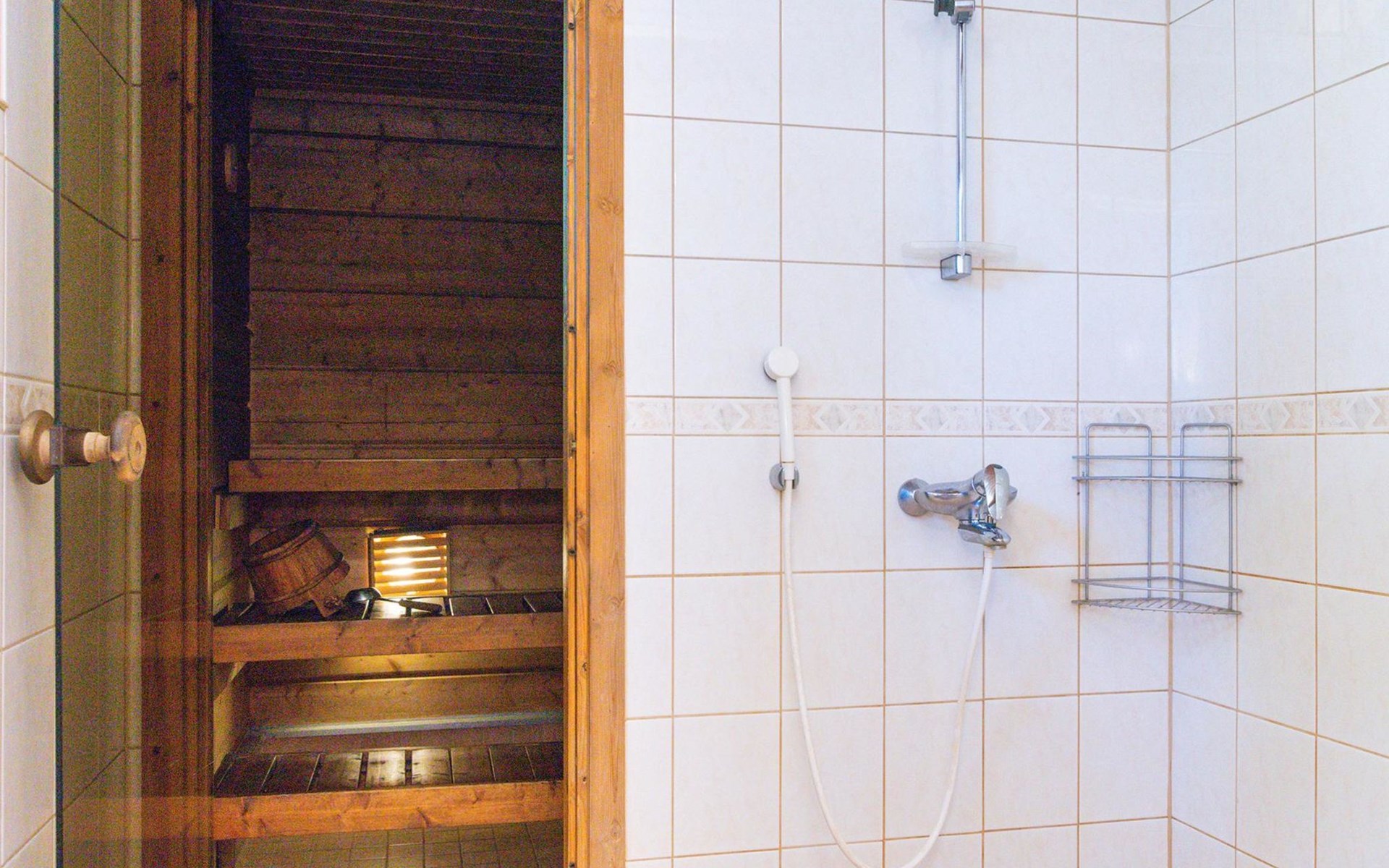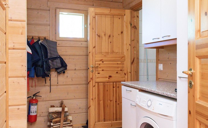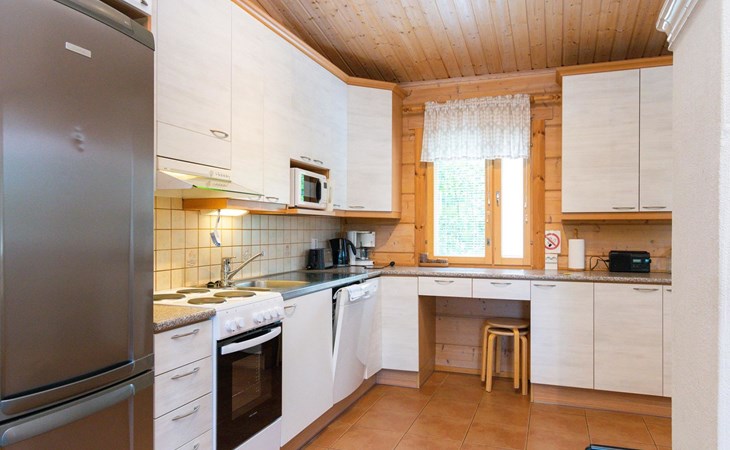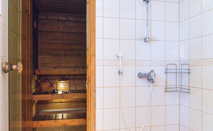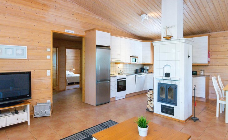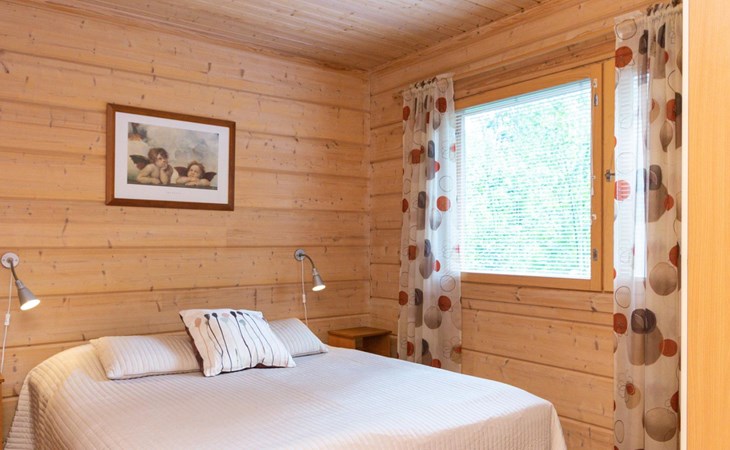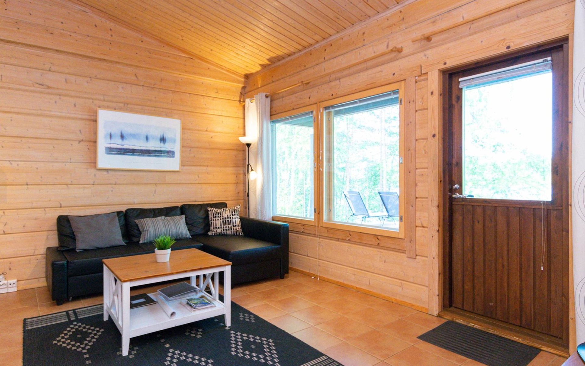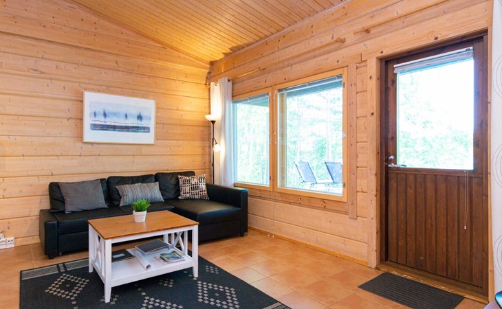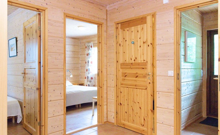 Wooden cottage 2004, living room/kitchen 2 extra beds, bedroom 2 beds, bedroom double bed, dressing room, washroom, sauna, hall, open porch.