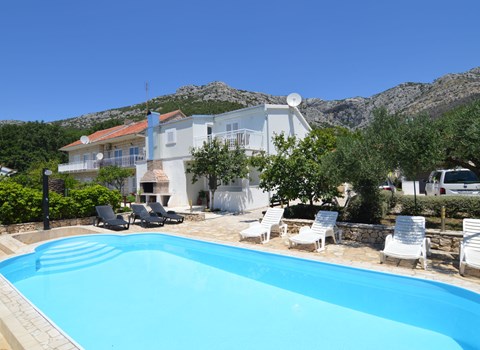 Single-family house "Elin". 700 m from the centre of Šibenik, 11 km from the centre of Vodice, in a sunny position, 700 m from the sea, 1 km from the beach, located by a road. Private: property 280 m2 (fenced), garden with flowers. Barbecue. In the house: internet access, washing machine. Parking at the house on the premises. Shop 280 m, restaurant 700 m, bus stop 300 m, pebble beach 1 km. Marina 3.5 km, tennis 1.4 km. Nearby attractions: NP Krka 13 km. Ground floor is closed and not occupied.