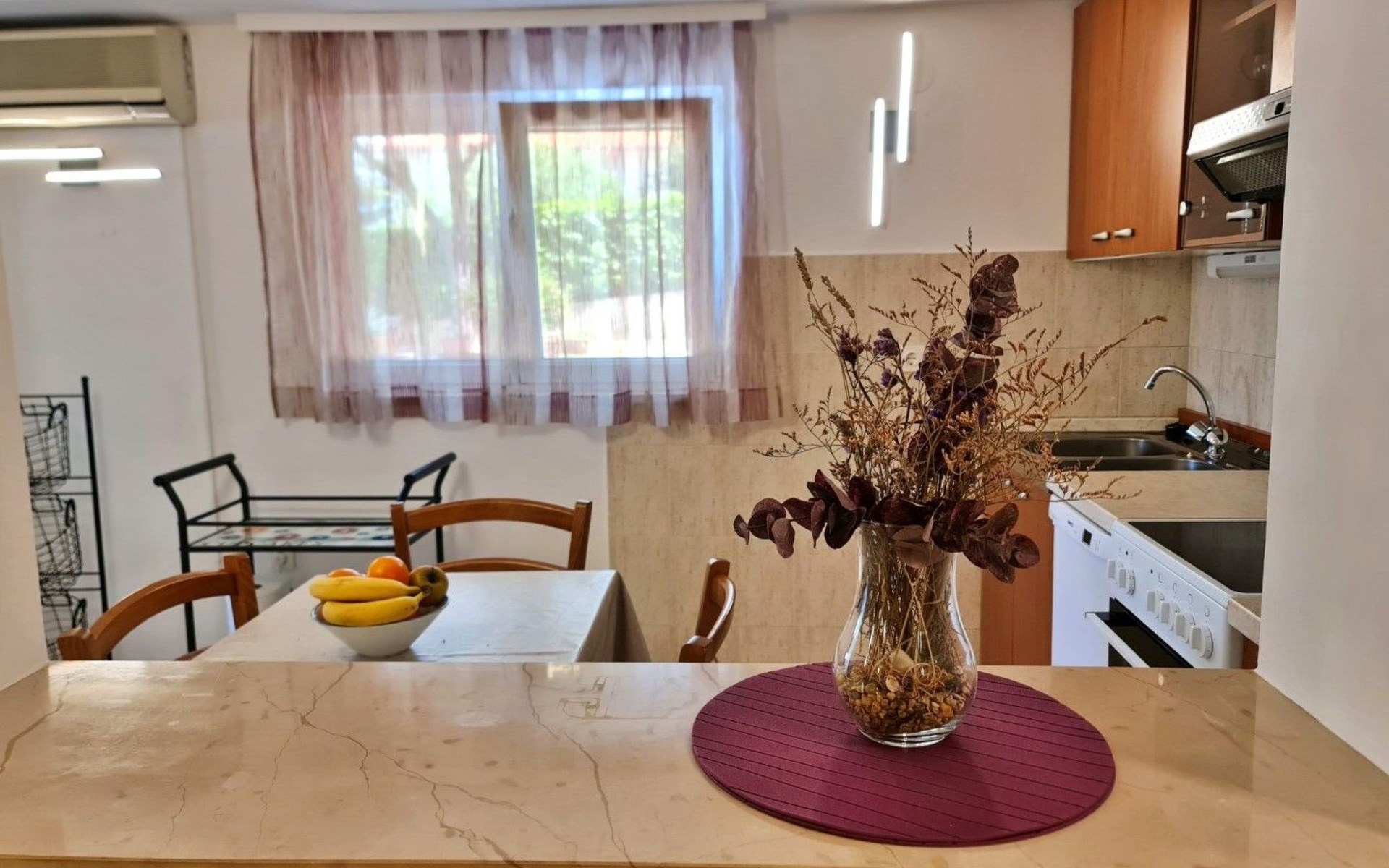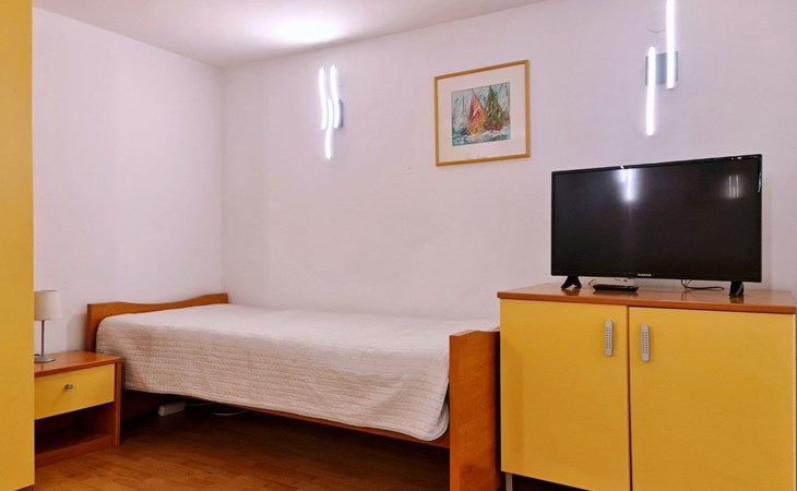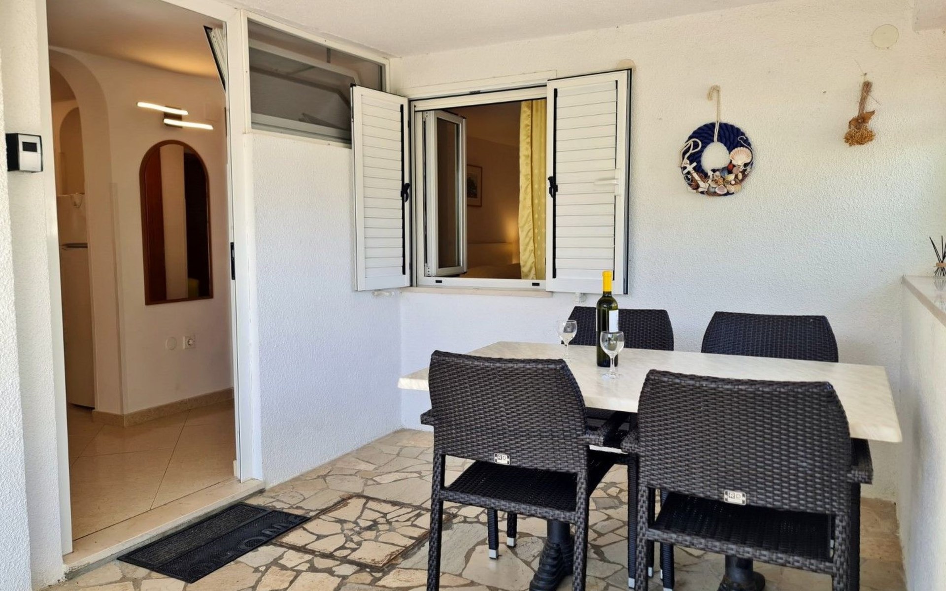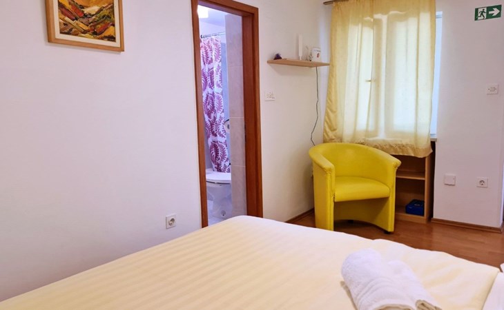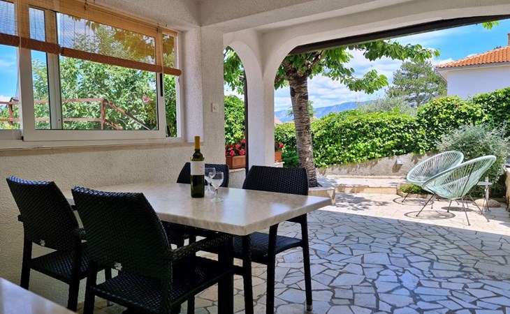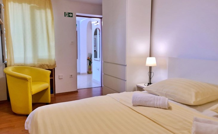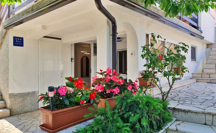 This one-bedroom apartment (50 m2, ***) is located merely 40 m from the beach. The terrace (8 m2) offers relaxation in the hot summer days. There is also a possibility to barbecue. Wi-Fi and air conditioning are already included in the price. The apartment has one bedroom with a double bed, as well as a convertible sofa bed in living room for 2 additional persons. There is also a outdoor shower that you can use.
