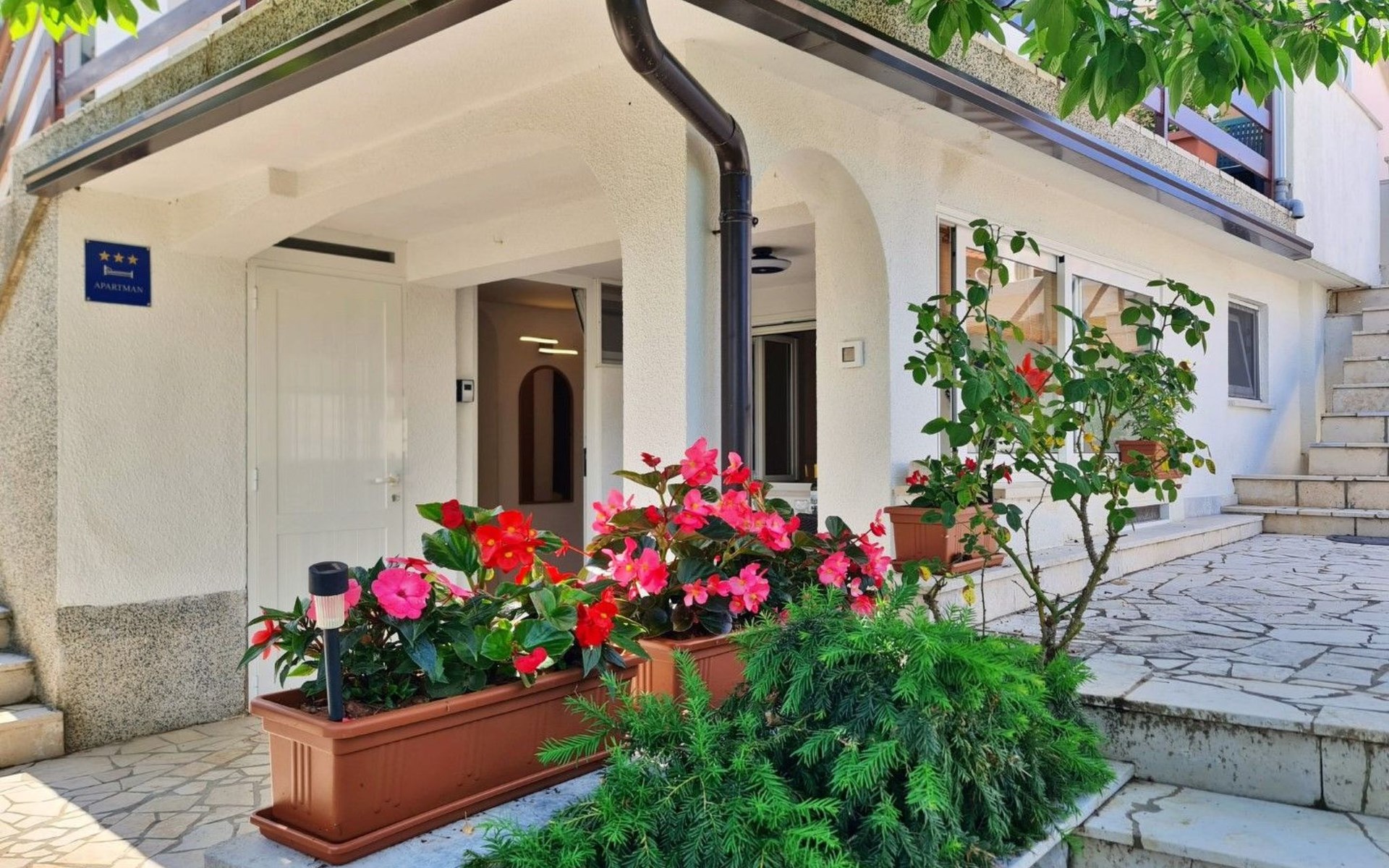 The accommodation is located in a building with multiple apartments, so the yard is shared (however, each has its own terrace).