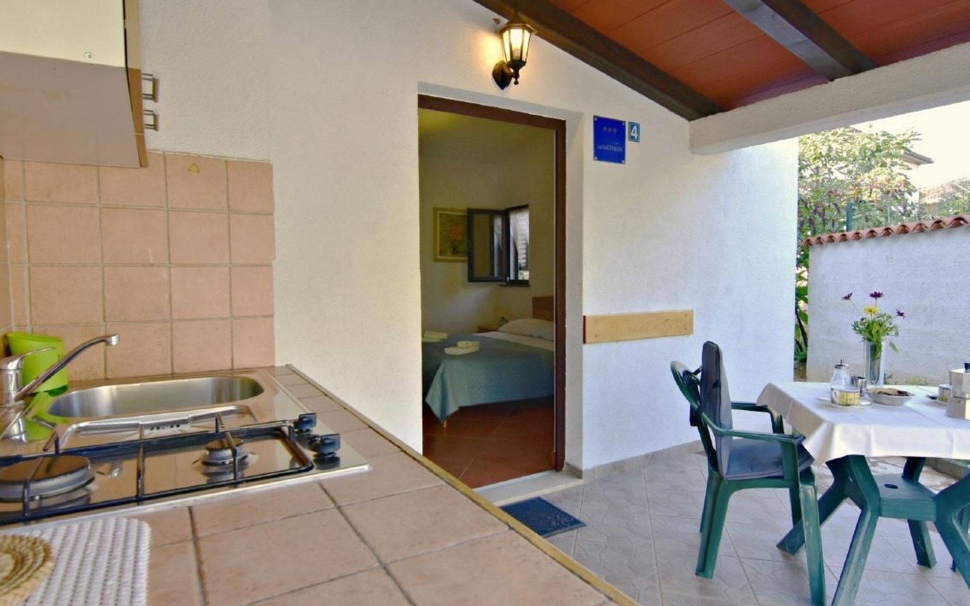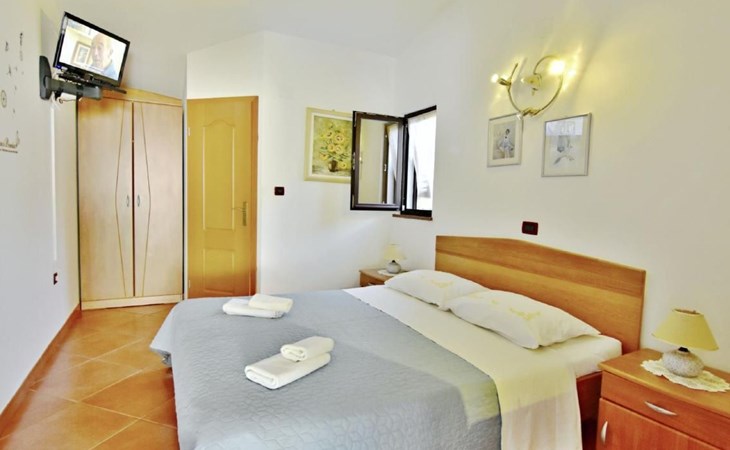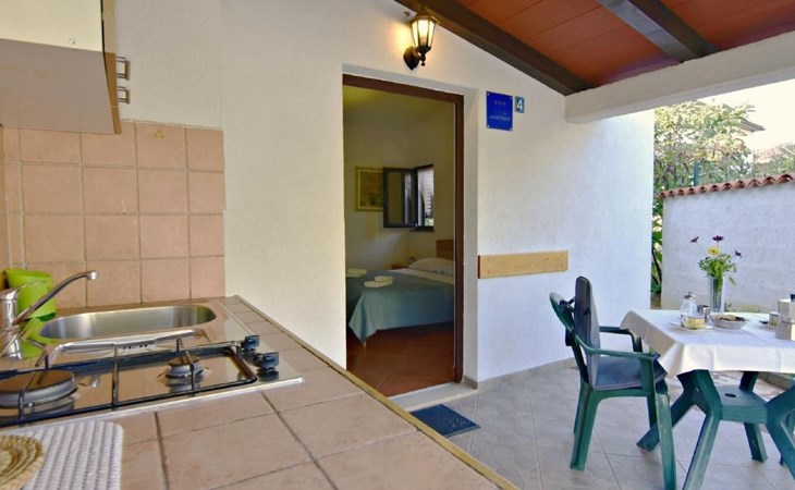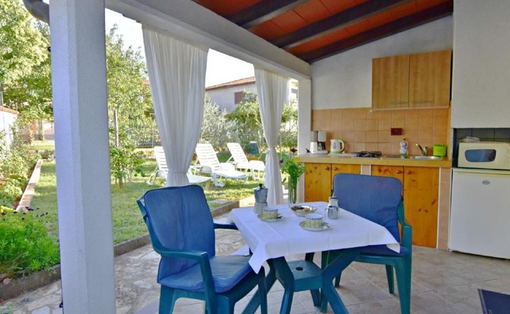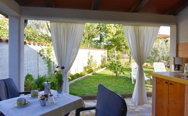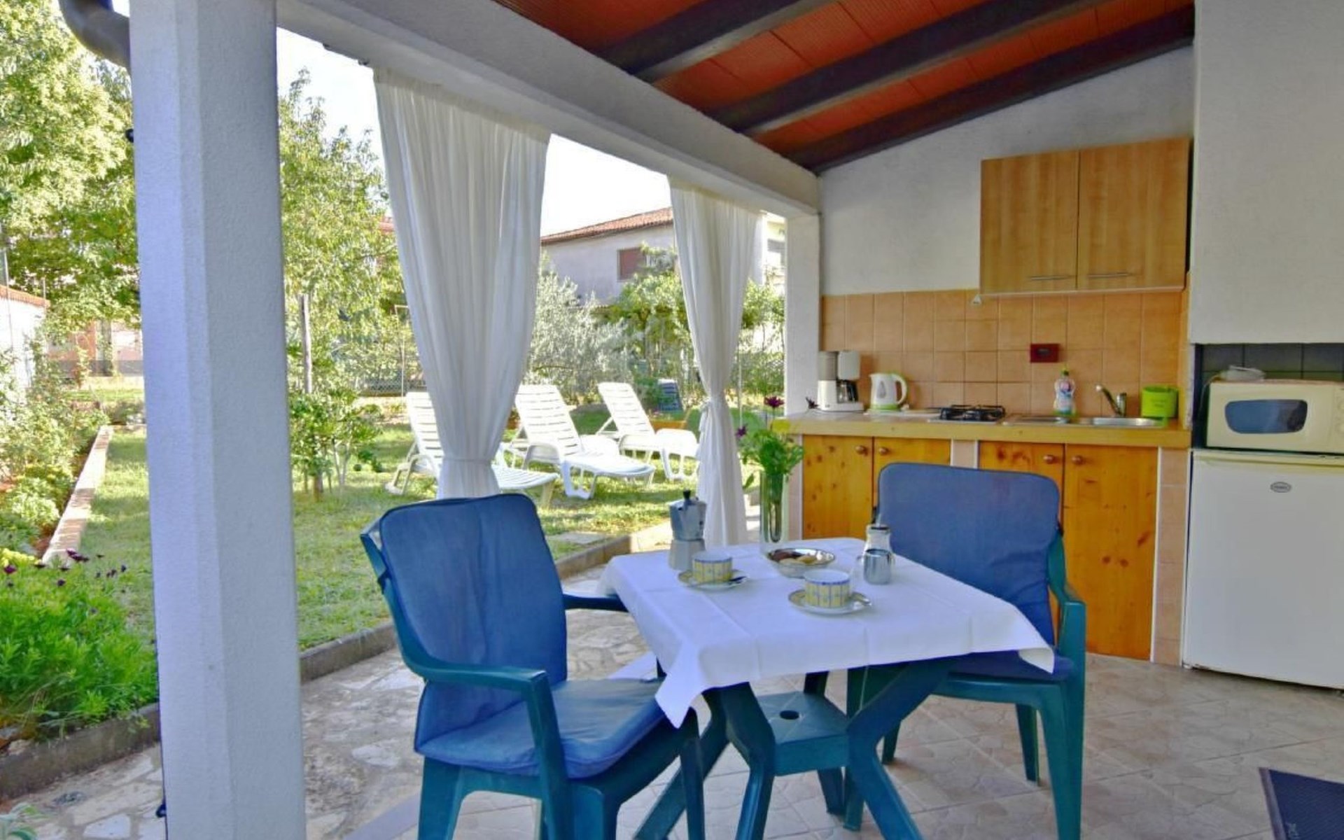 The studio flat Vedrana4 is located only 800 m from the centre of Umag. It is located on the ground floor of a family house with 4 rental flats. It has a covered terrace with garden furniture and an outdoor kitchen. The beach is a few minutes' walk away (distance 1400 m), the ultra-supermarket is 250 m away, the nearest and cheapest restaurant "Gostionica Koper" is only 250 m away. The location is excellent for proximity to the town and beaches or for participation in the famous ATP Open Croatia tennis tournament, which has been held in Umag in the Stella Maris region for years. The flat consists of 1 bedroom with double bed (160x200) and flat screen satellite TV, bed linen provided (changed weekly). The outdoor kitchenette is equipped with a gas cooker with two burners, a microwave, a coffee maker, a kettle, a fridge with a small freezer, a mocha and everything you need for a comfortable holiday. The bathroom has a shower, a washbasin with cabinet, a toilet and two bath towels per person (changed weekly). The flat is air-conditioned, offers free Wi-Fi and free parking in the enclosed courtyard of the house. There is a garden, barbecue and deckchairs. The area of Umag where the flat is located is a favourable area for its location between the town and the coastal areas. It is quiet, but there are many services nearby such as bank, post office, ATM, bars, restaurants. Nearby there are many types of pebble, rocky and sandy beaches. Near the beaches there is no shortage of pine trees or other vegetation to protect you from the sun during the hottest hours of the day. In the centre of Umag you can visit the museum and aquarium, walk along the Umag embankment, stroll through the narrow and interesting streets of the old town or visit the stalls on the promenade or take the children to the playground by the sea. . There are various leisure facilities nearby: Tennis courts, golf with 18 holes, horse riding, water sports, nightclubs, various boat or bus trips. Renowned restaurants, simple restaurants, pizzerias, fast food restaurants, bars. Excursions to the hinterland interesting the town of artists Grožnjan, Motovun typical medieval town known for the film festival, Livade the area of white truffles, Hum the smallest town in the world, PN Plitvice, the coastal areas PN Brijuni, excursion by boat fish picnic, excursion to Venice, Pola, Rovinj, Poreč, Baredine cave, Aqualandia for children, tastings of wines, cheeses, olive oil, typical Istrian prosciutto and much more. For the trips, I recommend the Trevitours agency, which will deliver the tickets to your home after a telephone consultation or with the owner. * Guests are asked to use the equipment with caution. * Damages will be charged in cash on site.Brief descriptionOther : Non-smoking houseShort description 1Number of kitchens : 1SurroundingsLoaning facilities : Boat rentalSports facilities in the area : Fishing, basketball, football pitch, golf course, hunting, mountain biking, cycling tours, indoor riding arena, riding arena / riding facilities, sailing, sports centre, surfing, diving, tennis, water skiingGarden and outdoor facilitiesGarden equipment : Garden furniture available, barbecue