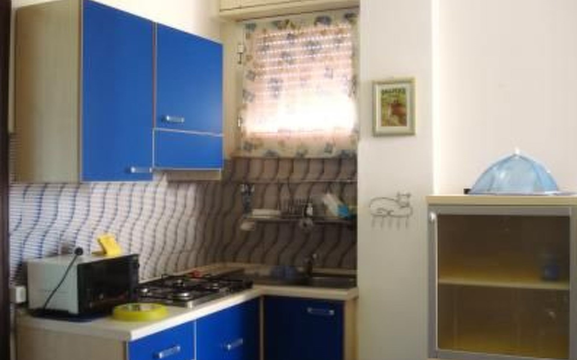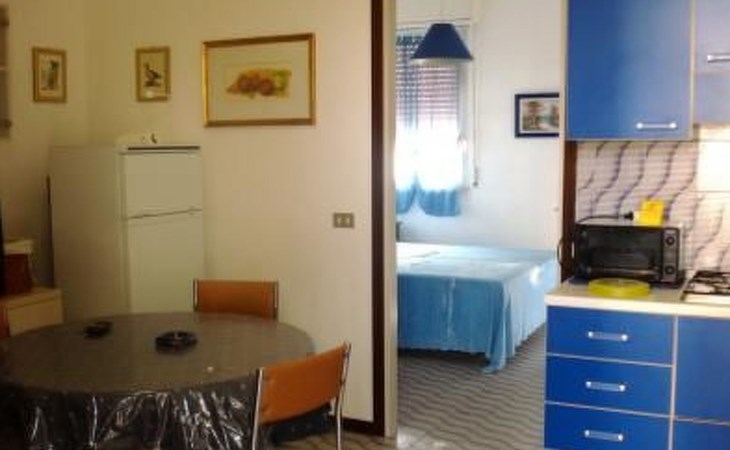 The building has 4 floors The apartment is on one floor and consists of a living room with a sofa bed for 2 persons, kitchenette, refrigerator, table, pantry and TV, while the other room is a bedroom with double bed, wardrobe with 4 doors and shoe cupboard, then there is a bathroom with shower, toilet, bidet and sink. You can use a washing machine for kg. 3.5kg of laundry. The kitchenette is equipped with a microwave oven, plates, pans glasses, cutlery and many kitchen accessories. gas hob with 4 burners. Air conditioning. The flat has two small terraces, one of which has a view of the beach.