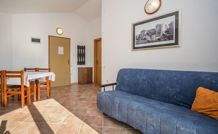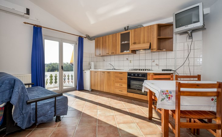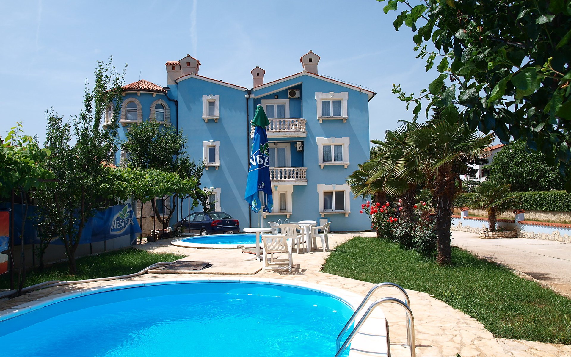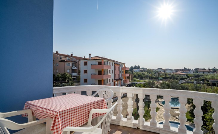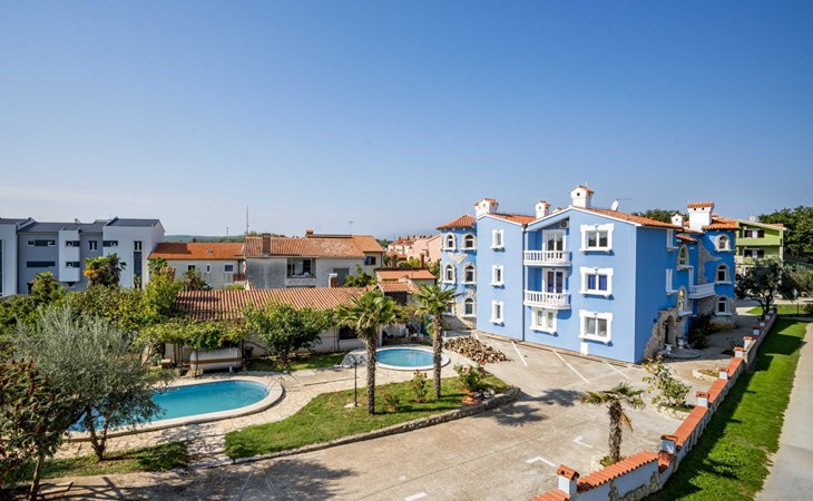 Beautiful apartment house "Hilde Blue". 300 m from the centre of Medulin, in a sunny position, 100 m from the sea, 350 m from the beach. For shared use: property, garden with lawn, swimming pool angular (11 x 6 m, depth 140 cm, seasonal availability: 01.Jun. - 14.Sep.). Children's pool, barbecue. In the house: washing machine (extra) (for shared use). Parking at the house on the premises. Shop, restaurant 100 m, bus stop 260 m, sandy beach 500 m, rocky beach 350 m. Surf school 2 km. Nearby attractions: adventure park 2 km. Please note: Additional accommodations can be booked. Property ref. HR2700.101 is situated on the same property. For shared use: swimming pool oval shaped (25 m2, depth 140 cm, 01.06.-14.09.). Children's pool round (4 m diameter, depth 40 cm, 01.06.-14.09.).