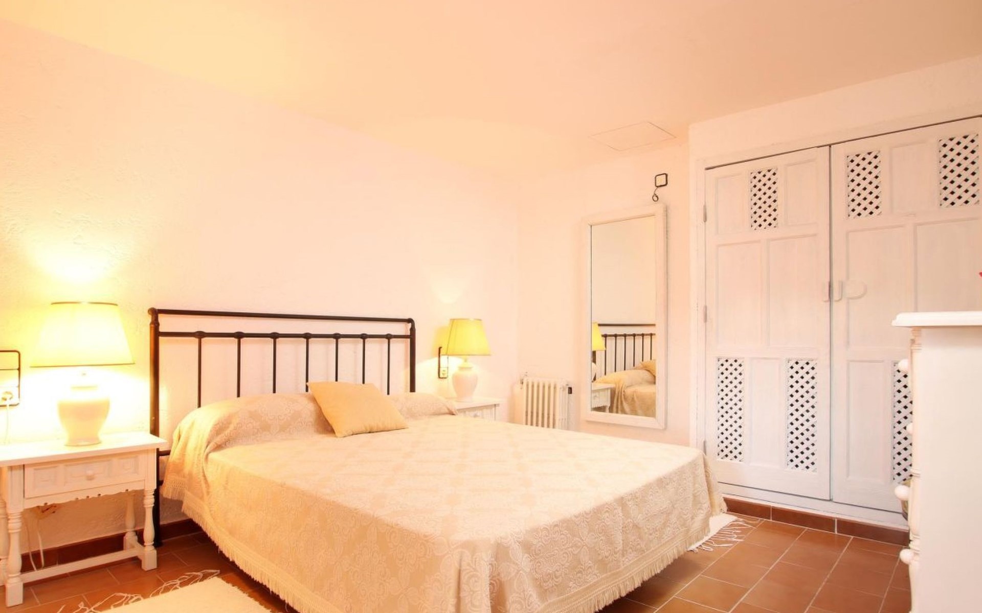 Two interior staircases lead to the sleeping area, which consists of three bedrooms and a double bedroom, one of the doubles has a complete bathroom next to it and the other bedrooms share another complete bathroom with bathtub. On the lower floor and close to the living room there is another bathroom with shower.
