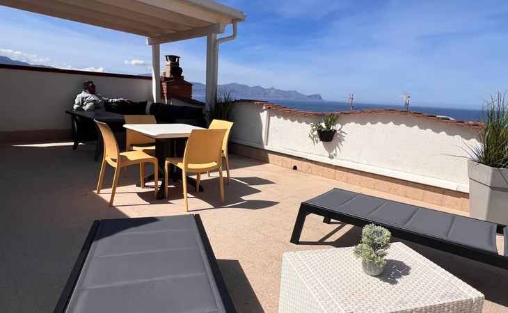 The penthouse has a half-covered terrace equipped with chairs, table, deckchairs and a relaxation area where you can enjoy excellent food in front of a breathtaking panorama.