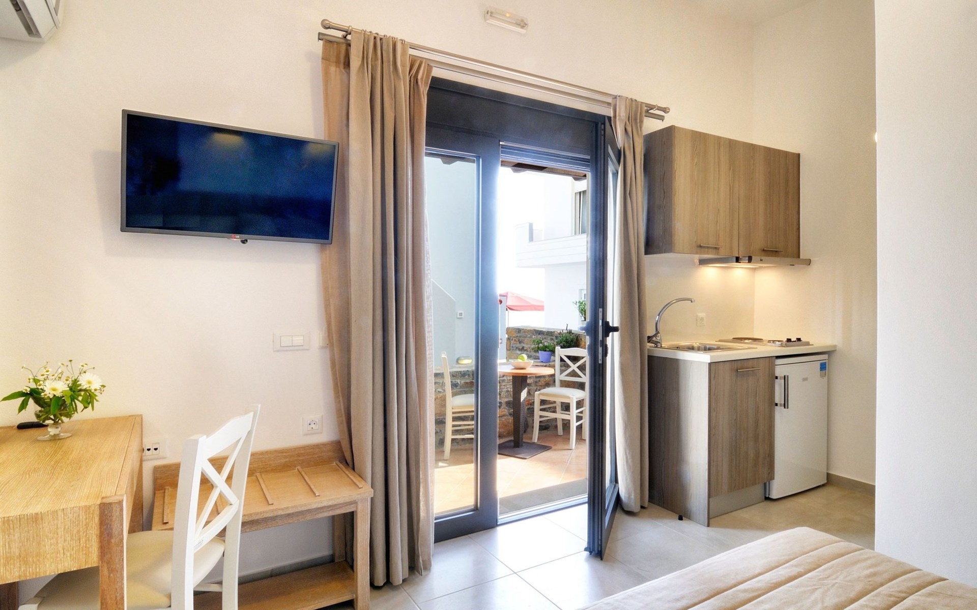 The accommodation is air conditioned and features a seating area. There is also a kitchenette, fitted with an oven. A microwave and coffee machine are also available. WiFi is available at no extra cost. Towels and bed linen are provided along with daily houskeeping.
