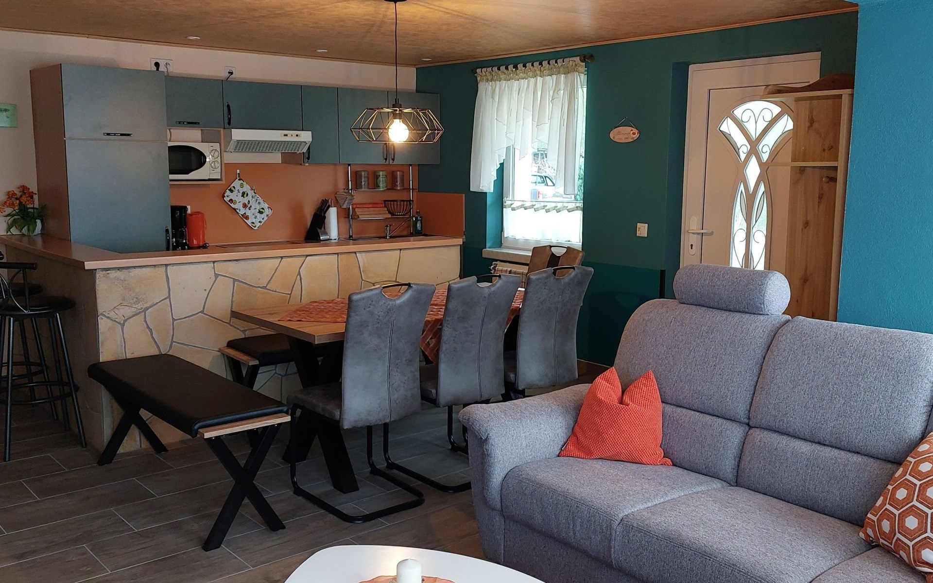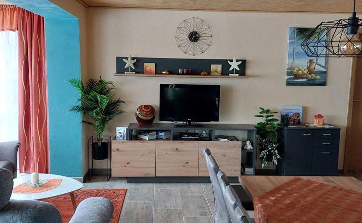 The flat on the ground floor is practically furnished and has two bedrooms and a bathroom with a walk-in shower, which promises a pleasant stay for all guests. In the kitchen you will find everything you need to prepare delicious meals, including a ceramic hob, coffee machine, kettle and dishwasher. A Smart TV is available for cosy evenings, so that no entertainment wish remains unfulfilled.