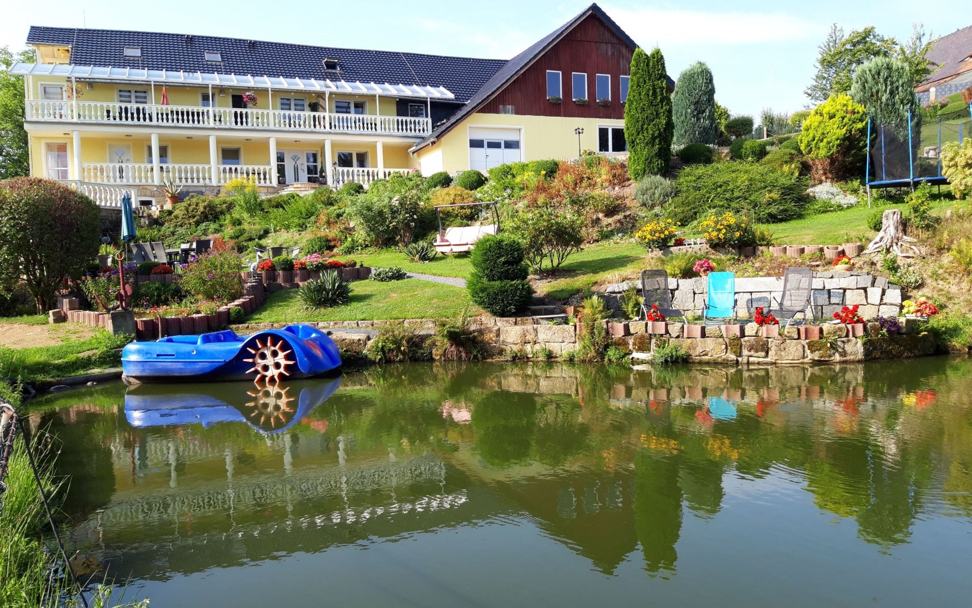 Outside, a terrace invites you to linger in the open air. The garden, which is intended for communal use, offers plenty of space for relaxation and child-friendly activities, including a playground. The highlight is the conservatory, which offers a quiet corner for reading or simply enjoying the surroundings.