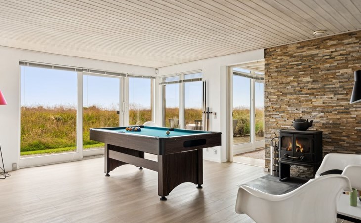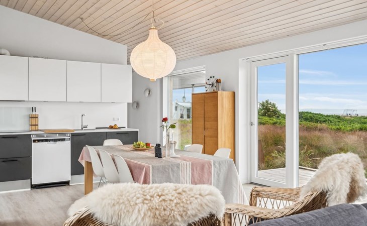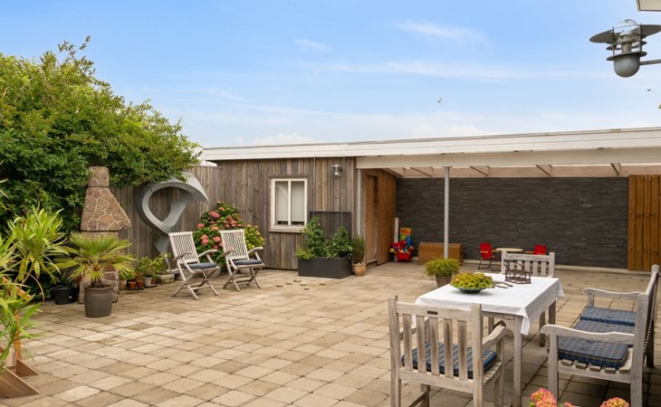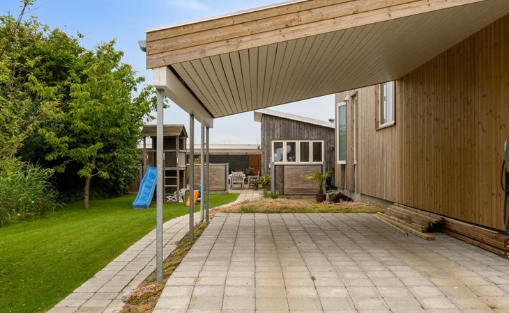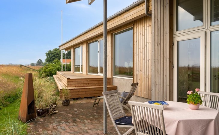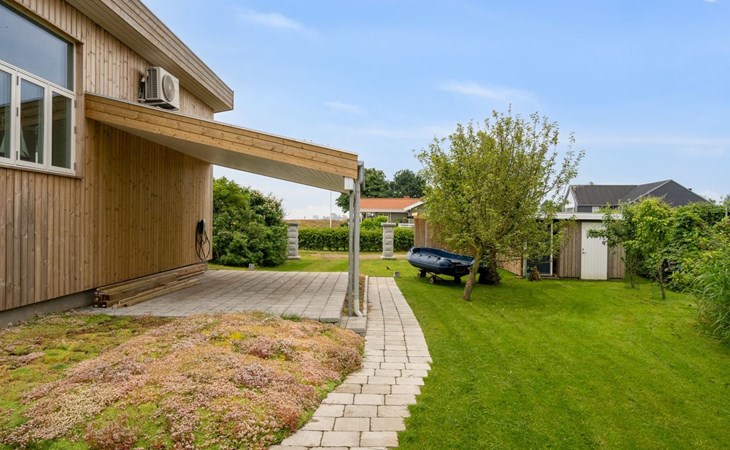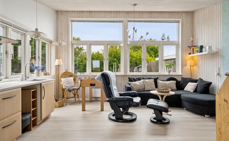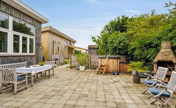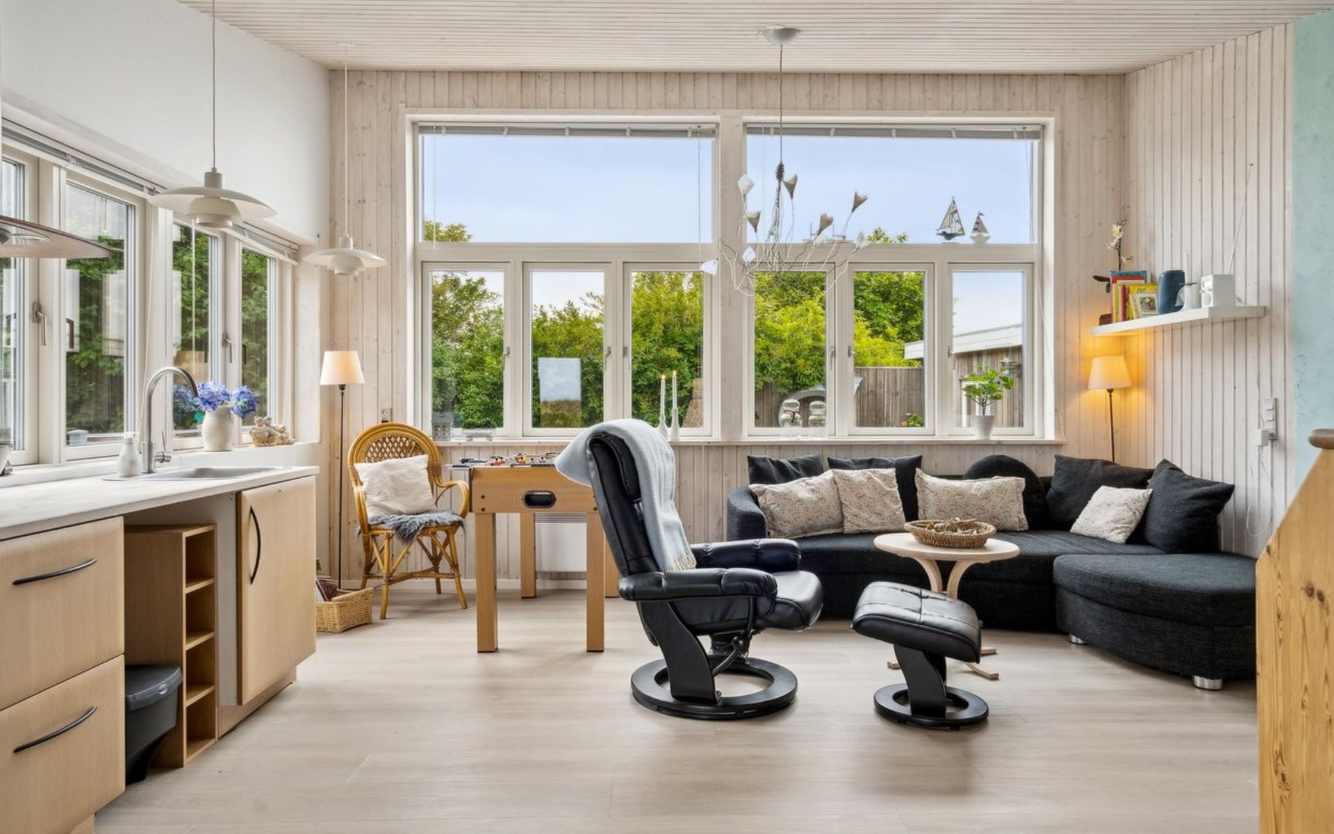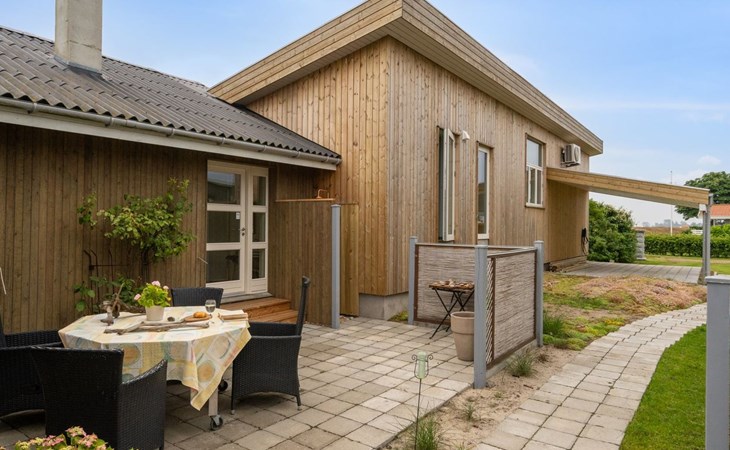 Single-family house, built in 1978. 50 m from the sea. Private: property 840 m2. Outdoor shower, fireplace, children's playground (swing). In the house: sauna, table football, washing machine. Parking at the house. Carport. E-charging station. Grocery 650 m. The owner does not accept any youth groups.