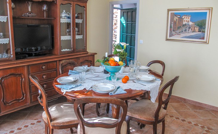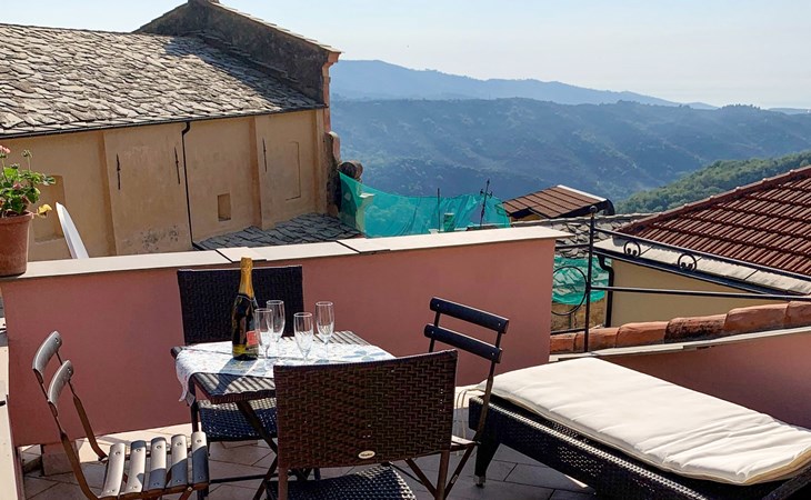 Cosy, rustic single-family house "Arietta VLO150", 2 storeys, semi-detached. In the centre of Valloria, 14 km from the centre of Imperia, 7 km from the centre of Dolcedo, in a central, elevated position, 14 km from the sea. In the house: storage room for bicycles, roof terrace, bicycle rental. Breakfast and half board possible (extra). Stepped path (10 steps) to the house. Public parking 10 m. Shop 4 km, supermarket 14 km, restaurant, bar 10 m, bakery 4 km, bus stop 20 m, sandy beach "Imperia" 14 km, natural swimming pond 2 km. Tennis 200 m, riding stable 7 km, walking paths from the house 10 m. Please note: car recommended. Local sale of farm products.