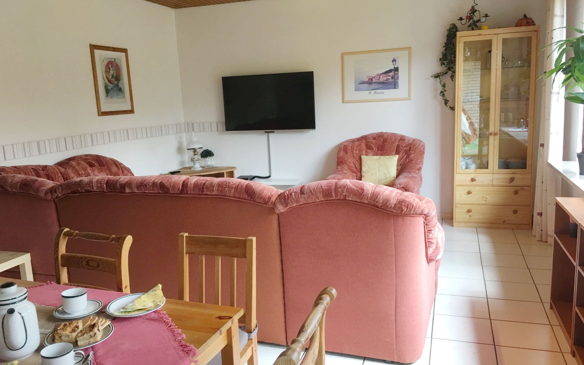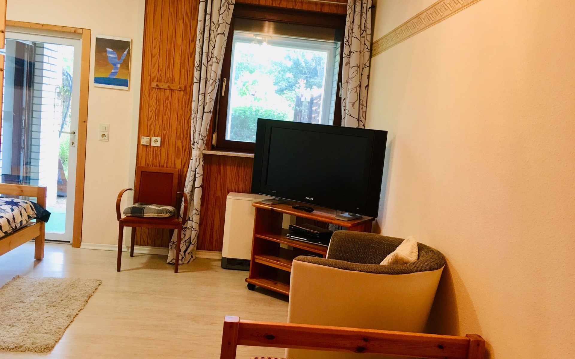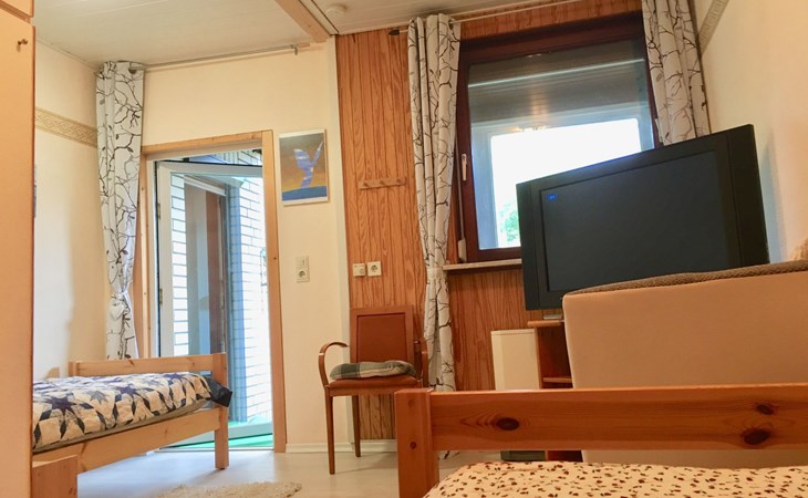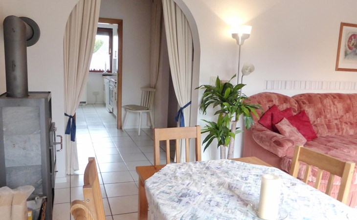 Inside, the bungalow impresses with its loving and more than functional furnishings, which include the cosy 3 bedrooms, a spacious living room with a wood-burning stove for chilly days and a modern bathroom with a bath and shower option. The fully equipped fitted kitchen invites you to cook together - here you will find everything from a dishwasher and oven to a microwave. The large flat-screen TVs in the living room, children's room and bedroom promise relaxing evenings, while the internet connection and free phone calls to the German landline network ensure your connection to the outside world.