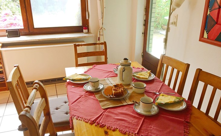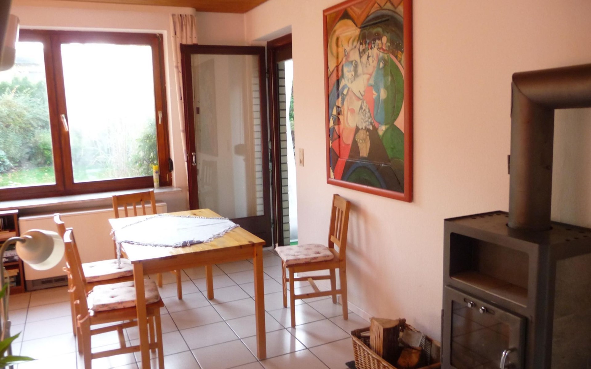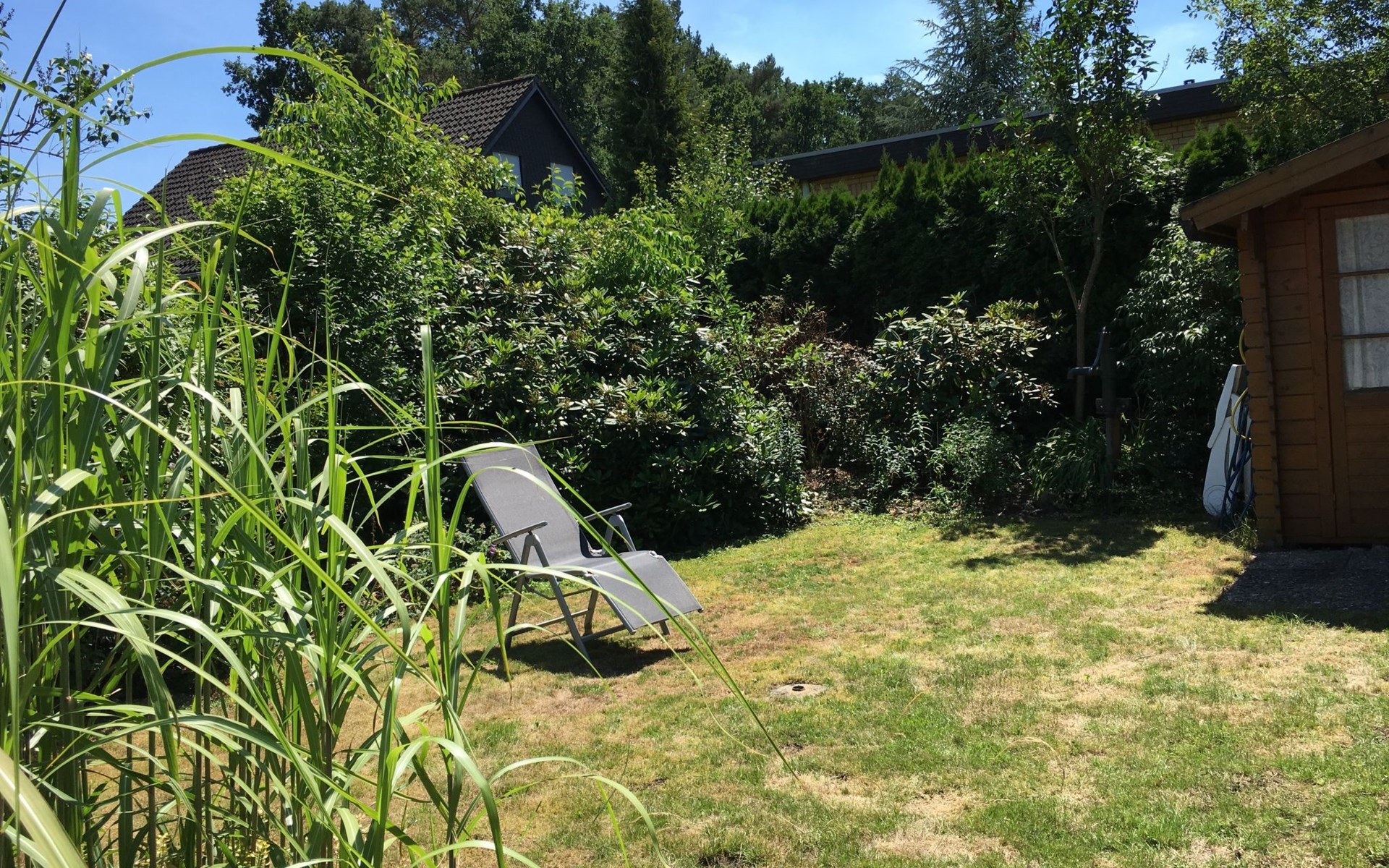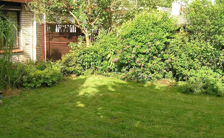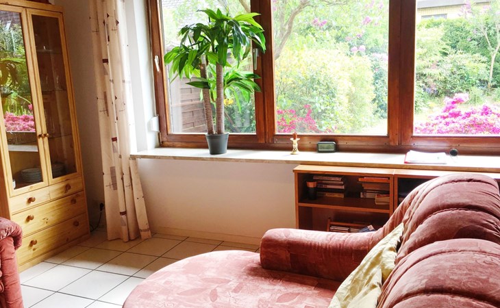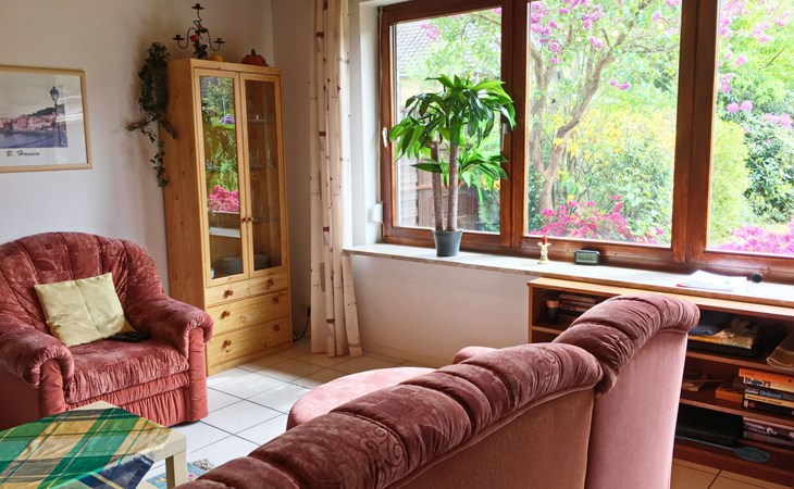 The outdoor area impresses with a south-facing garden that invites you to linger and relax. A covered terrace and high-quality garden furniture provide the perfect setting to wind down in the evenings. A small decorative pond blends charmingly into the garden landscape. For barbecue lovers, a barbecue is available for a deposit, complemented by the convenience of being able to park right outside the front door.