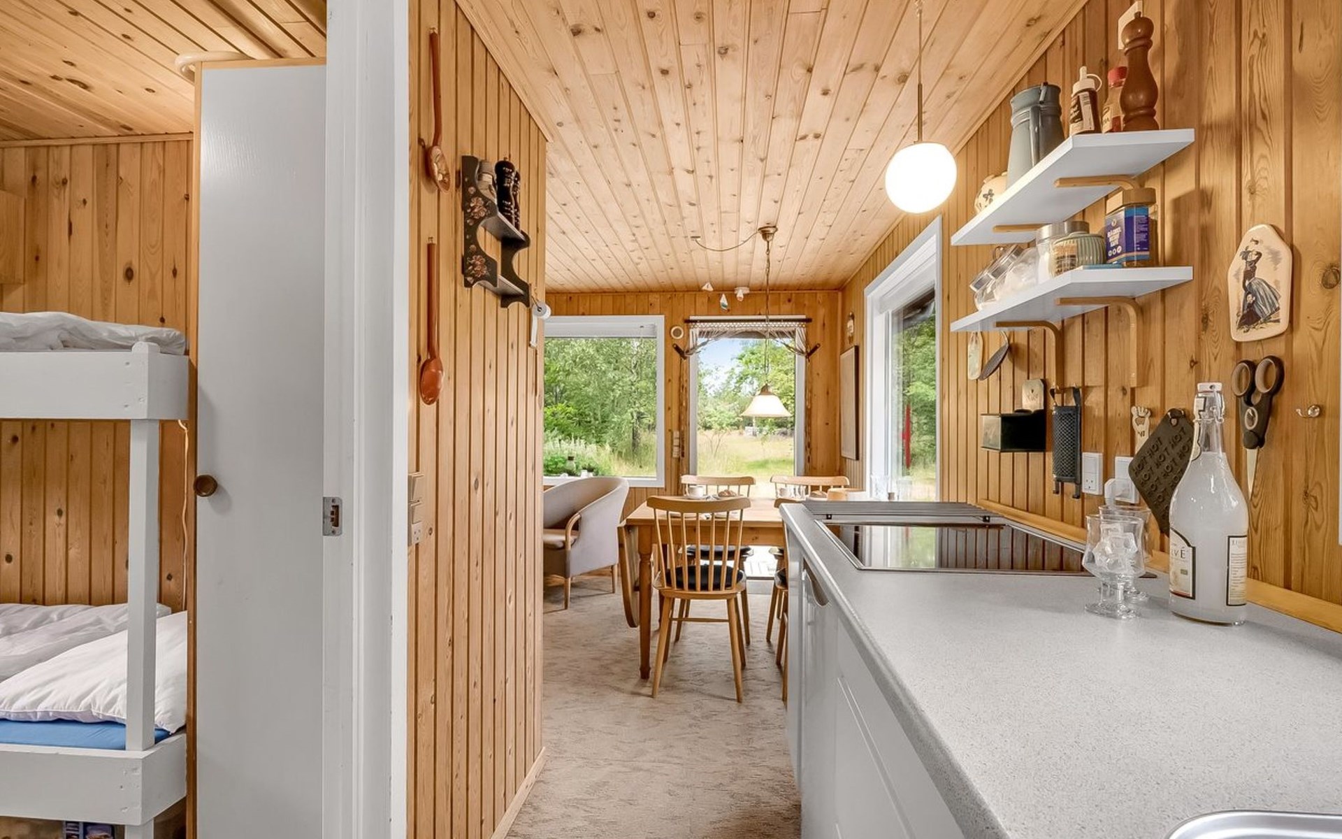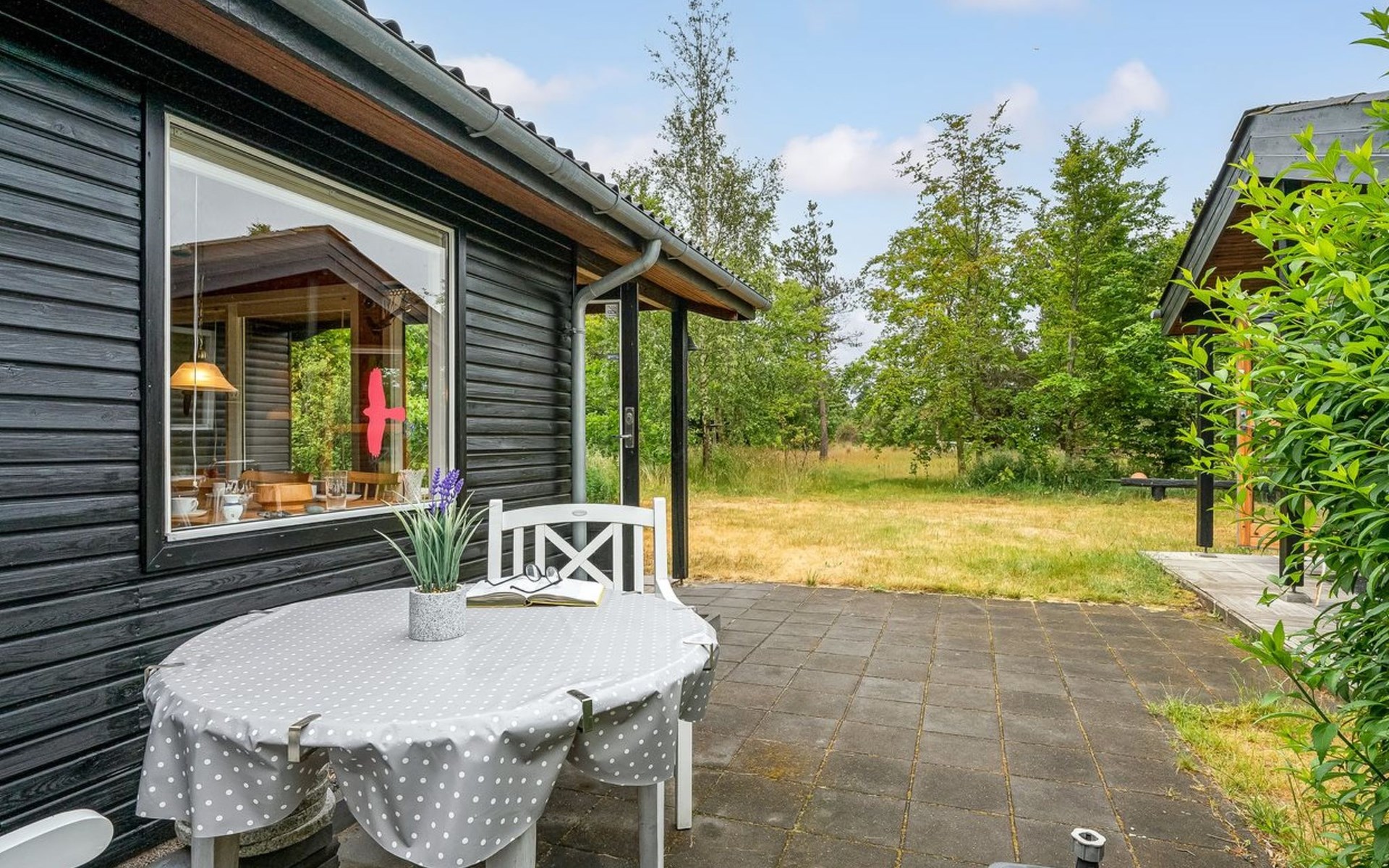 Single-family house, built in 1981. Private: natural state property 2'000 m2. Children's playground (swing), parking at the house. Grocery 4 km. The owner does not accept any youth groups.