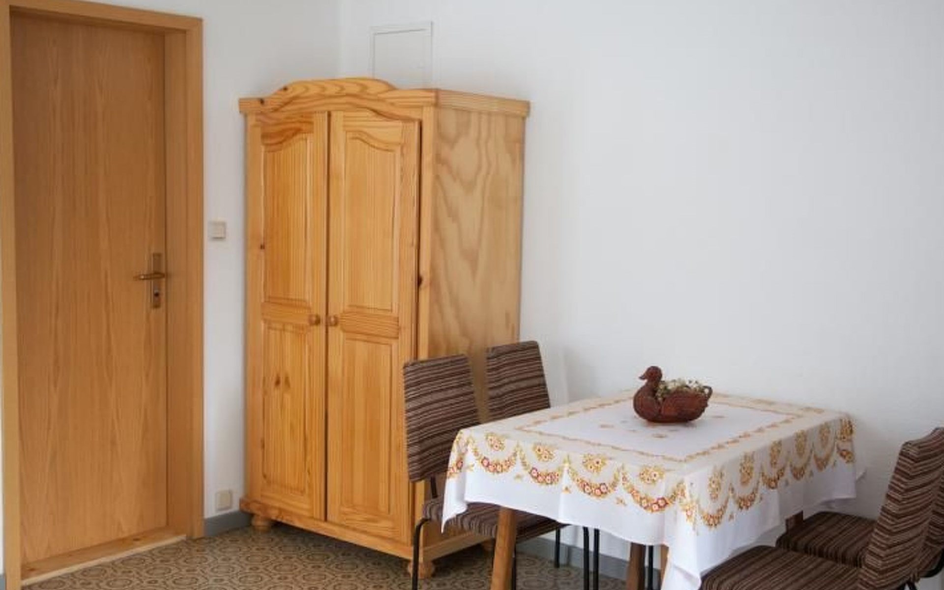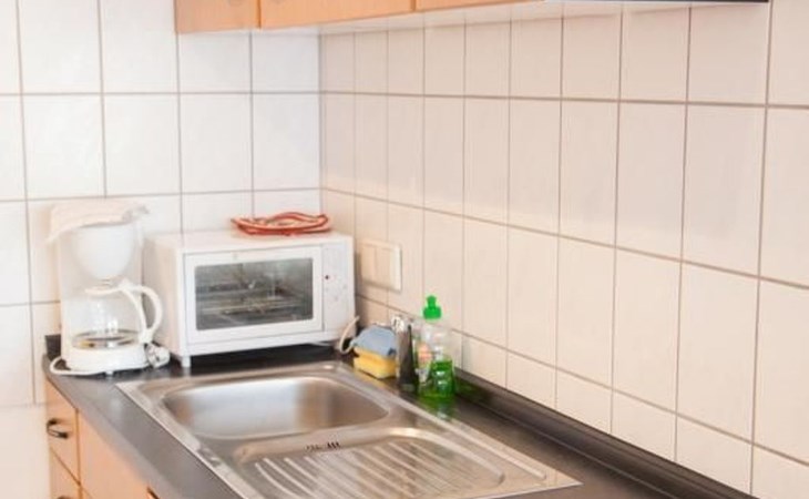 In the holiday home you have the following rooms on 45 square metres: two bathrooms with shower/WC, a fully equipped kitchenette in the living room/kitchen with sofa corner and TV, and a bedroom with four beds.