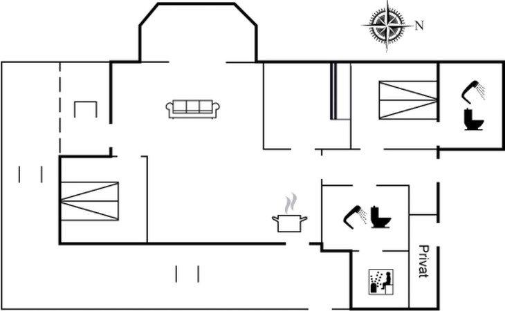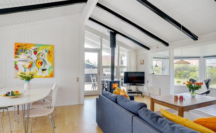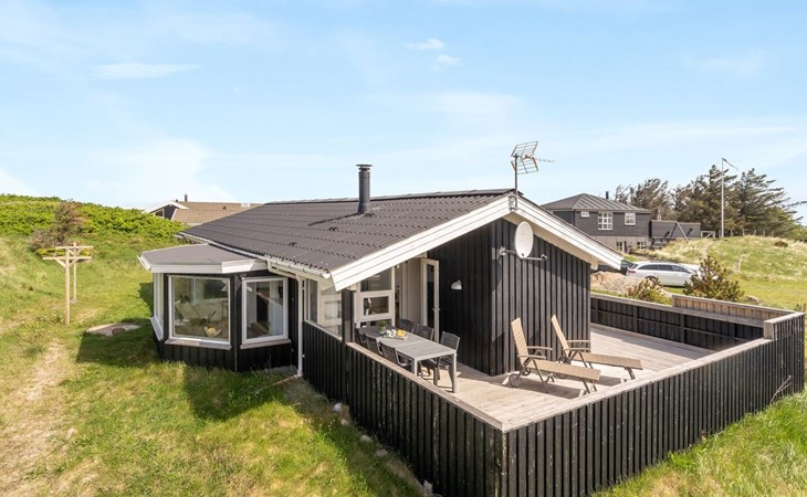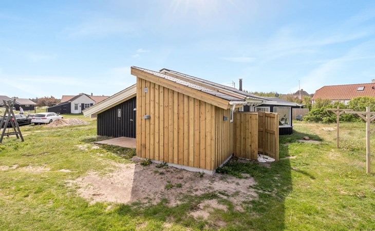 Single-family house, built in 1987. 75 m from the sea. Private: natural state property 1'240 m2. Outdoor shower, terrace (60 m2), barbecue, children's playground (swing). In the house: sauna, washing machine. E-charging station. Grocery 400 m. The owner does not accept any youth groups.