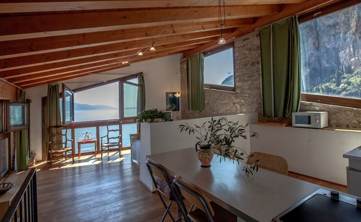 Outside, the flat reveals the true meaning of harmony with nature, set as it is among the historic lemon houses that recall the charm and culture of the area. This context provides not only a majestic setting for your stay but also an atmosphere of peace and tranquillity, where time seems to slow down to allow you to savour every moment of your holiday.