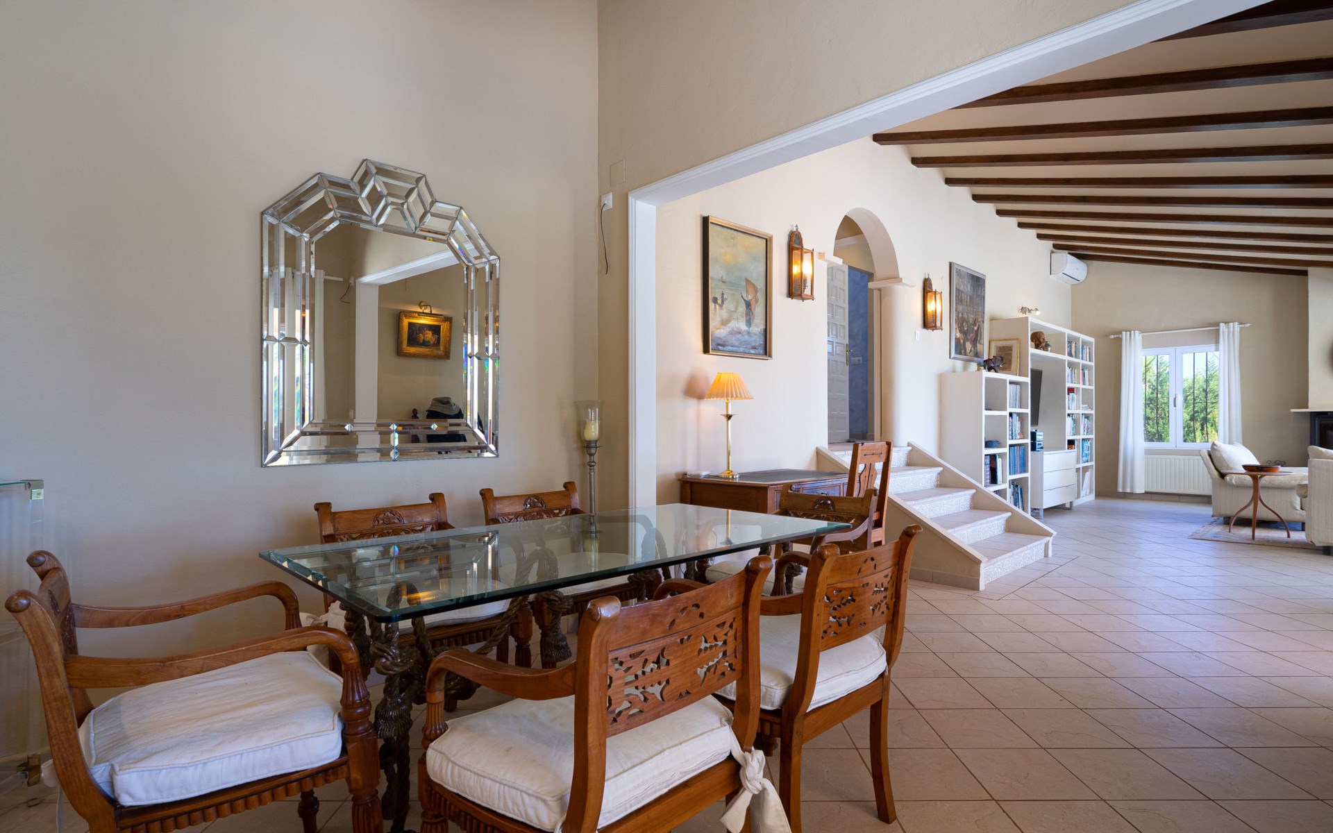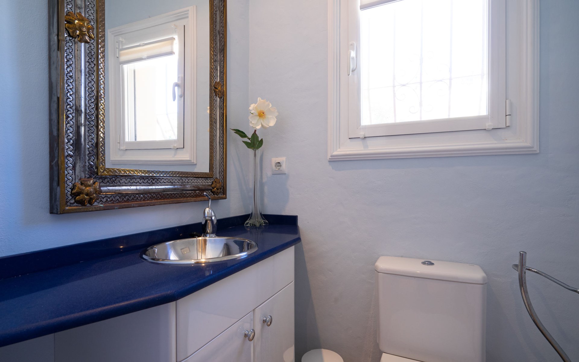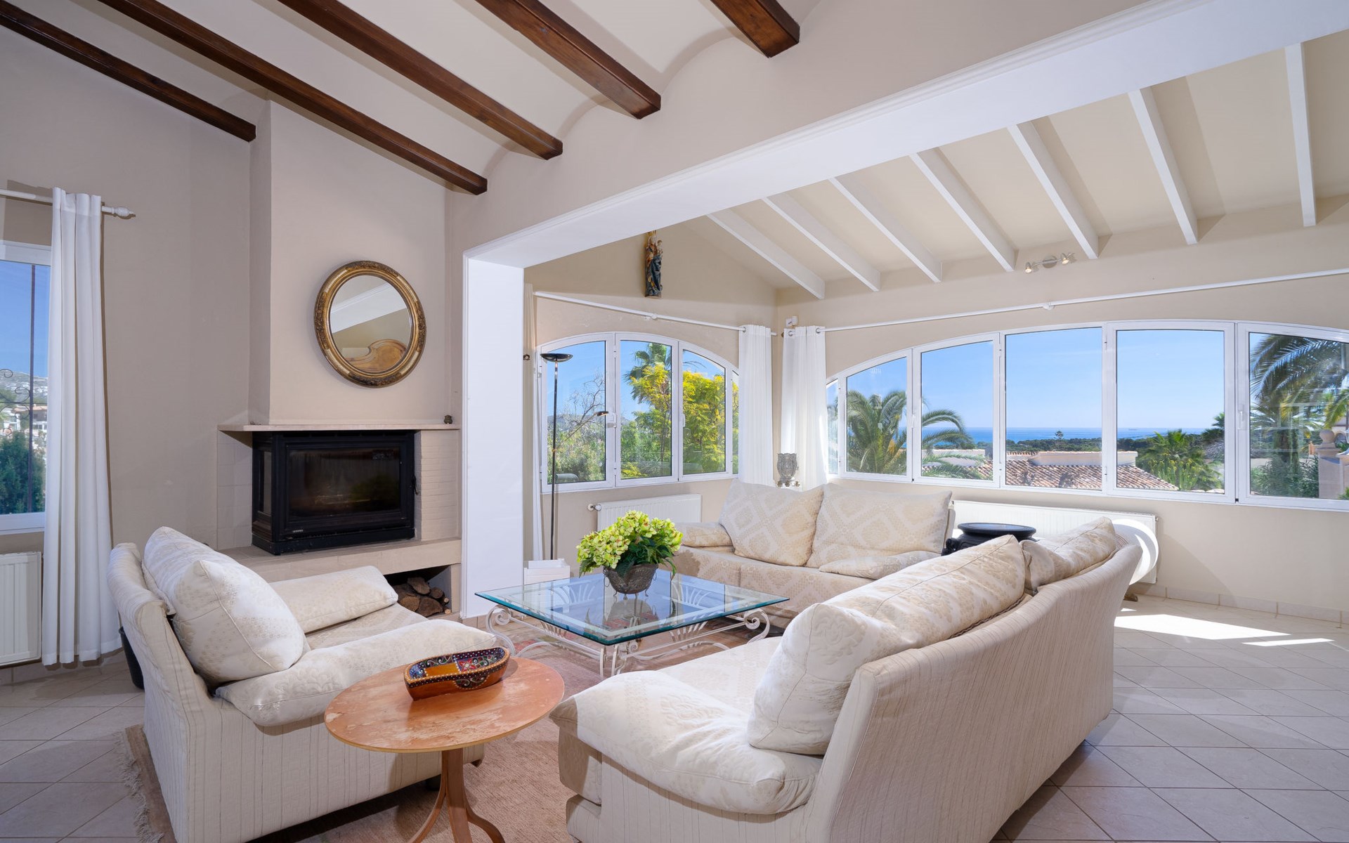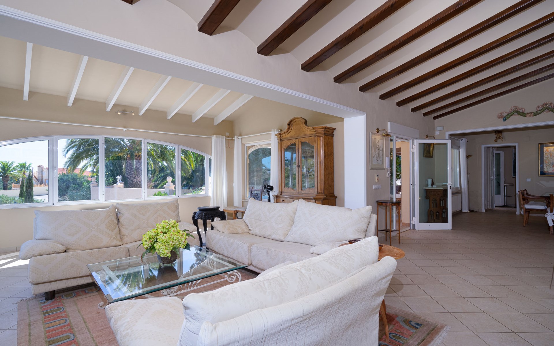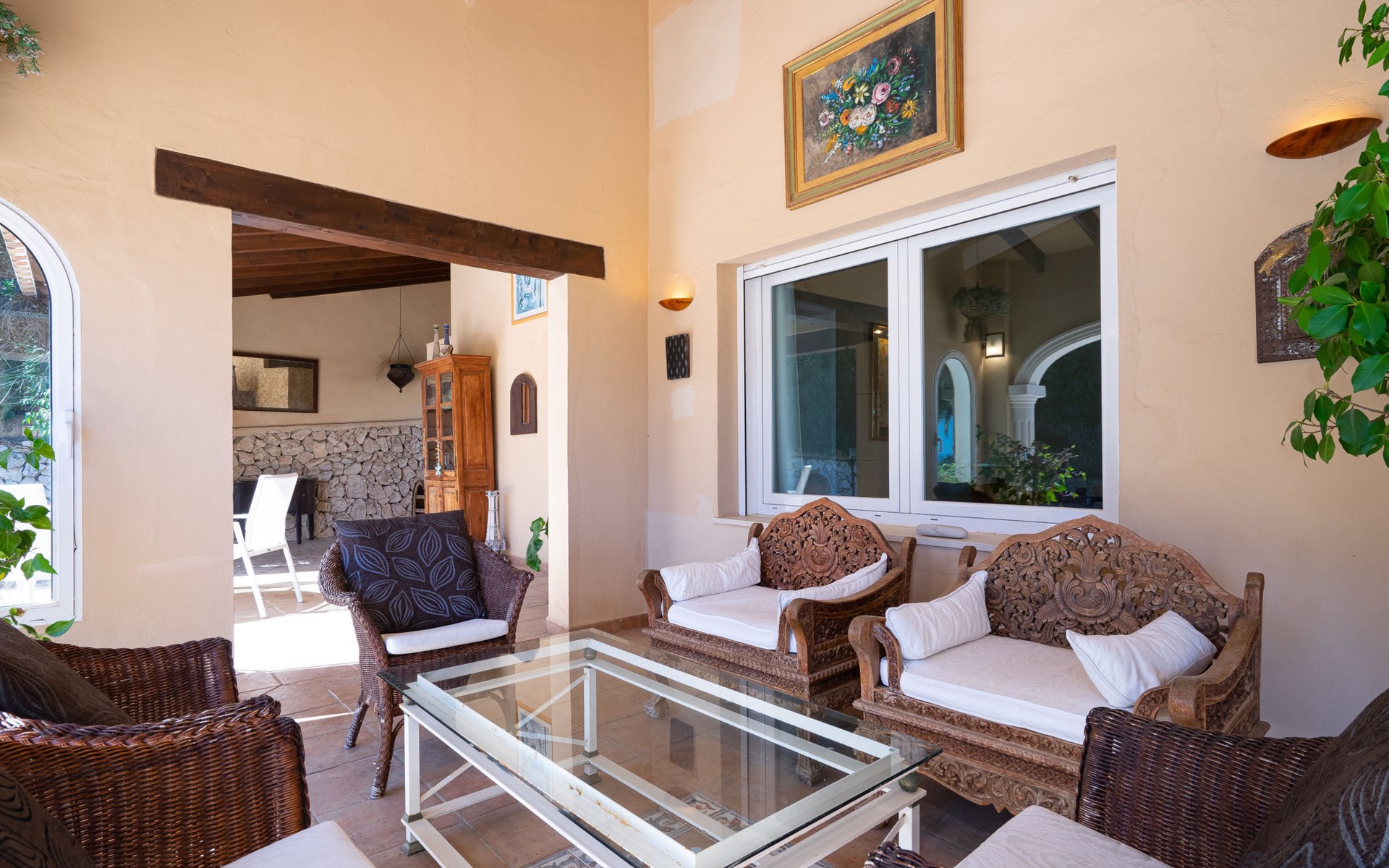 Beautiful villa "Marita", 2 storeys. 3 km from the centre of Moraira, in a sunny position on top of a hill, 3 km from the sea, 3 km from the beach. Private: property 800 m2 with wildlife garden and trees, swimming pool kidney shaped, with privacy (5 x 10 m, depth 120 - 160 cm, seasonal availability: 01.Jan. - 31.Dec.) with internal staircase. Outdoor shower. In the house: air conditioning, washing machine. Parking (for 3 cars) on the premises. Shop 3 km, supermarket 3 km, restaurant 1.4 km, bar 500 m, bus stop "Moraira" 4.3 km, railway station "Teulada" 6.1 km, ferry "Denia" 26.5 km, sandy beach "Playa L'Ampolla" 3 km. Please note: car recommended. The owner does not accept any youth groups.