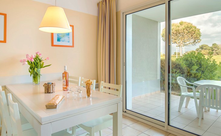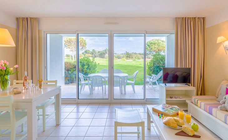Resort "L'Estran", 2 storeys. 6 houses in the resort. 162 apartments in the residence. 4 km from the centre of Château d'Olonne, 4 km from the centre of Les Sables d'Olonne, 200 m from the sea. For shared use: property, well-kept garden with lawn, swimming pool heated (seasonal availability: 01.Apr. - 30.Sep.). Table tennis, children's playground. In the complex: reception, lift. Parking. Shop 200 m, bus stop "La Mouzinière" 2.8 km, sandy beach "du Tanchet" 2 km. Please note: the photograph shows a typical example. The holiday properties may differ in living space, floorplan, equipment and furnishing.