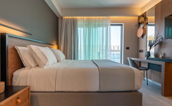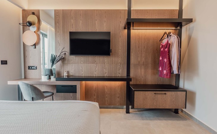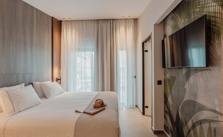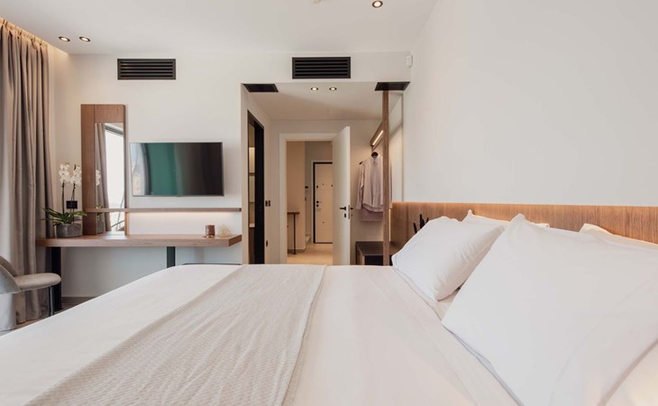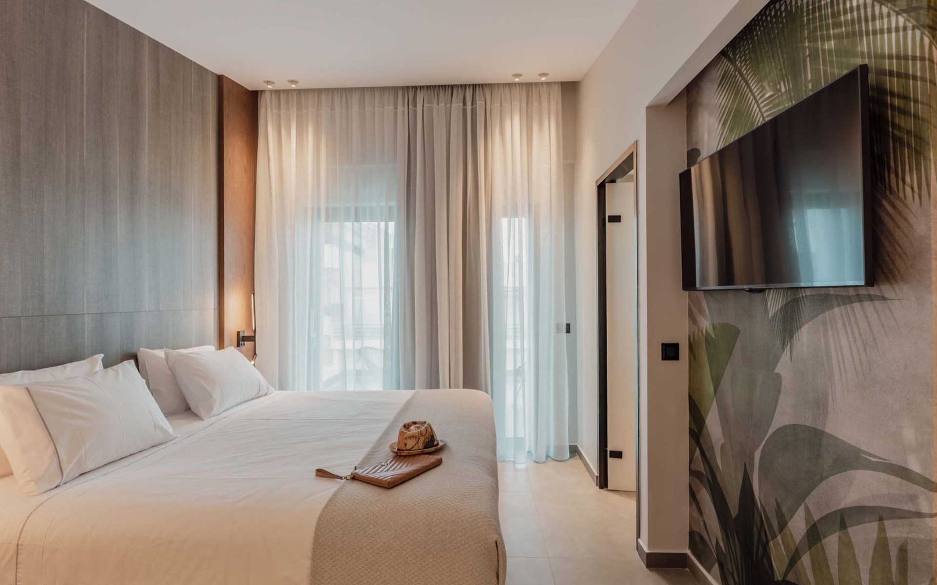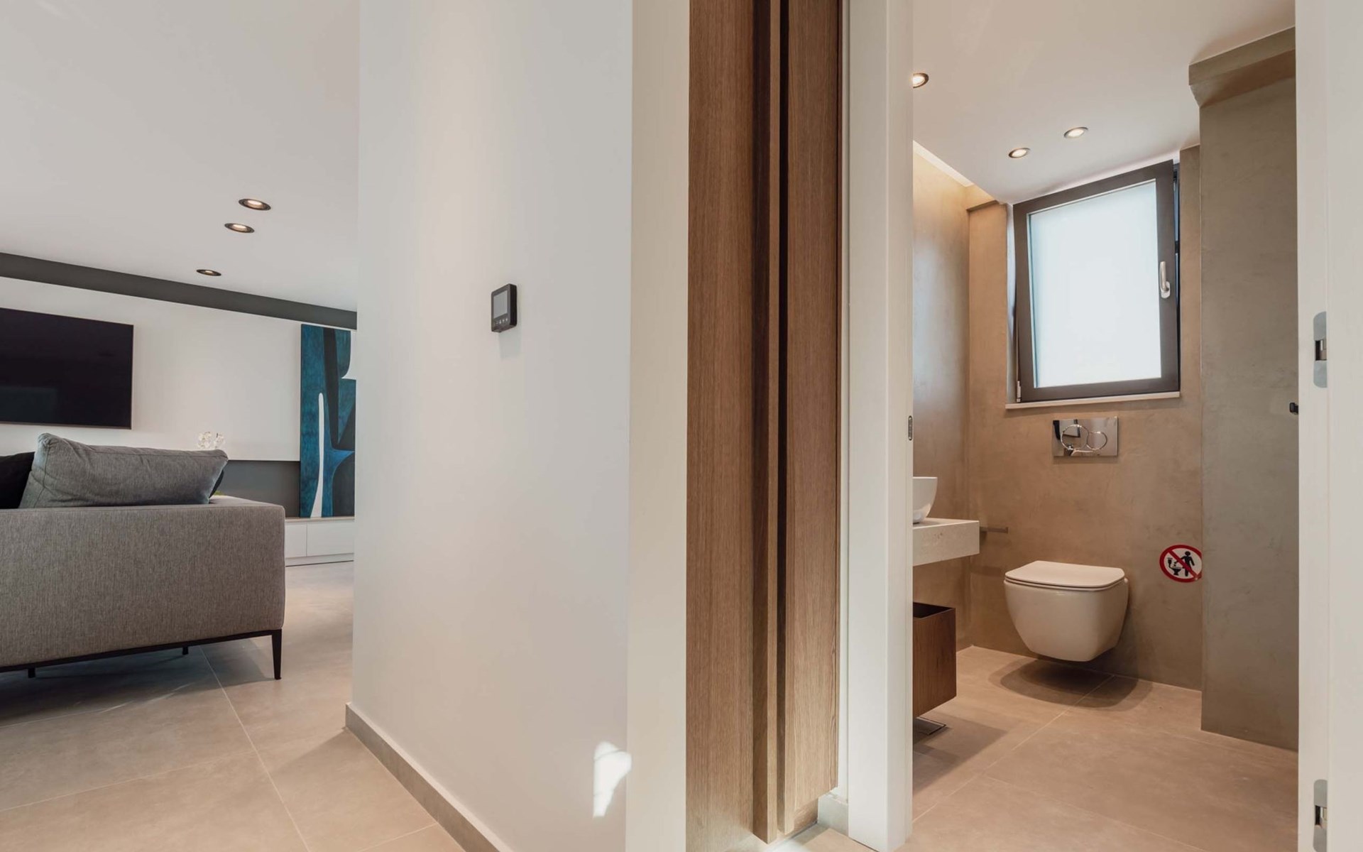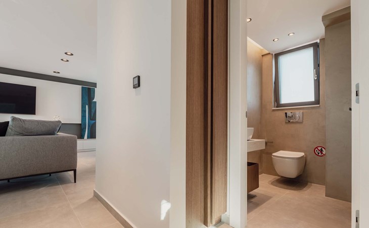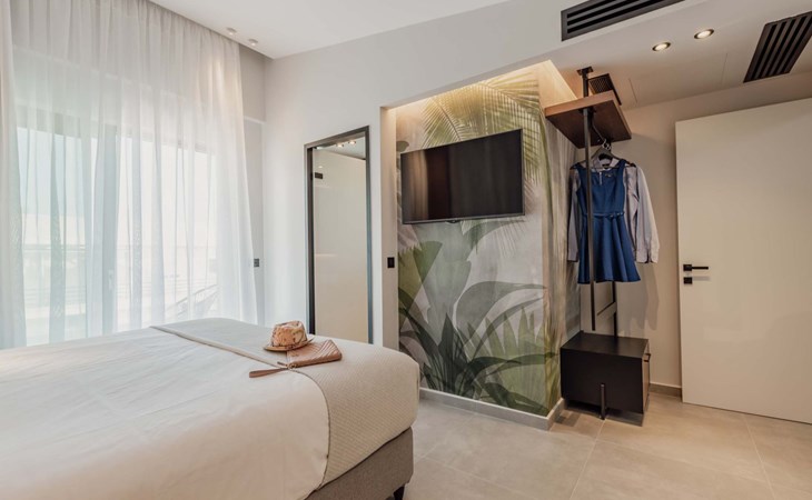 The stunning penthouse features generous indoor and outdoor areas that can host up to 6 guests generously featuring lavish design, supreme amenities handcrafted furniture, an exuberant living room, and a dining area on the upper floor, completing the utopian hideaway. Set across two floors, on the 5th and 6th floors of a new building, the owners have styled each room to feel like an immersive sanctuary. On the entrance floor, there is the open-plan living accommodation with a living area with a satellite TV, a modern fireplace for perfect cosy nights, a dining area, and a fully equipped, fitted, and modern kitchen. The large windows create the illusion of transparency allowing for a flood of Cretan sunshine to illuminate the room. When you reach the lower floor through the elevator you will find 3 modern-designed bedrooms that themselves host queen-size beds with ensuite bathrooms offering complete autonomy and privacy. Next to the bedrooms, for your convenience, you can find a coffee bar with two coffee machines, a small fridge, and some tableware adequate to serve your needs. The property is filled with natural light and instyled with minimal furniture specially designed for this specific project. All the spaces in it offer an indelible mark on the visitor's heart. Its various luxury facilities, its generous stylish areas, its unique location, and its matchless natural beauty make the City Moment Penthouse the perfect opportunity for a high-quality stay and the ideal summer home.
