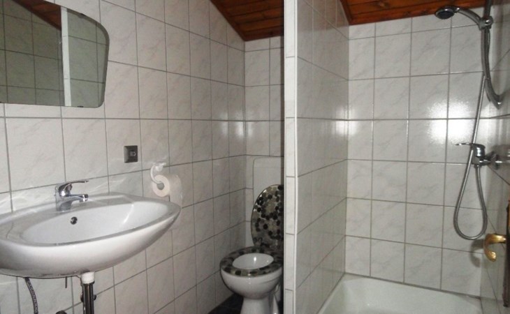 This 72m² apartment for two to six people is on the second floor. It has two bedrooms, a living room, a kitchen and two bathrooms. The first bedroom is furnished with a double bed (160cm wide). An additional bed can be provided on request. The second bedroom has two single beds 90cm wide. The living room provides a corner sofa bed for two people and a flatscreen TV (satellite channels, also with Hotbird with over 50 Italian channels). The kitchen has a dining corner and is equipped with a ceramic hob, oven, fridge with freezer compartment, dishwasher, toaster, coffee machine and kettle. The first bathroom has a shower, washbasin and WC. The second bathroom has a bath.