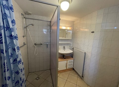 The first bedroom is equipped with two box springs. In the second bedroom there is a bunk bed The bathroom has a toilet, sink and shower.