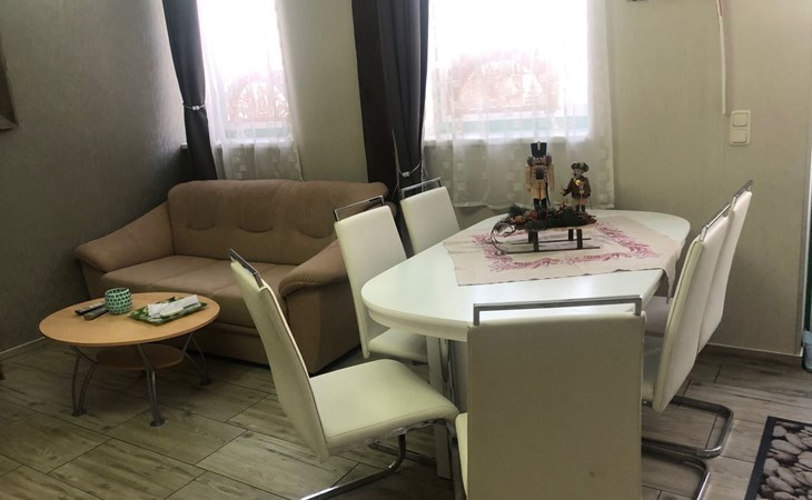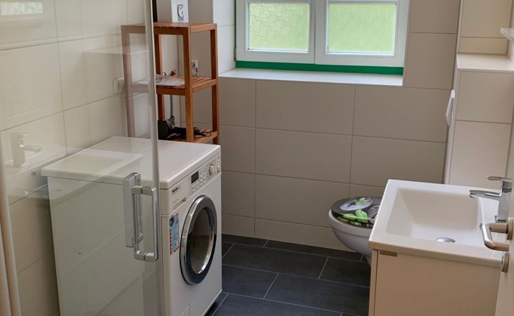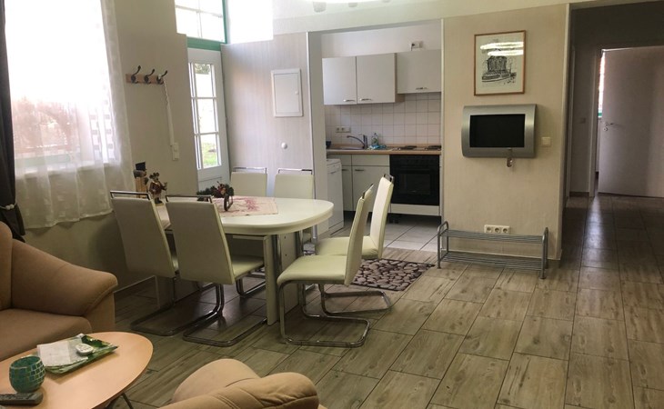The flat is on the ground floor and is approx. 67 m² in size. It consists of the following rooms: large living room with flatscreen TV, dining area and sofa bed, a bedroom with 2 single beds, a bedroom with double bed (1.60m x 2.00m), a fully equipped kitchen with cooker, microwave, dishwasher, coffee machine and a bathroom with shower and washing machine. Due to the ground floor location and the construction, the flat is also handicapped accessible.