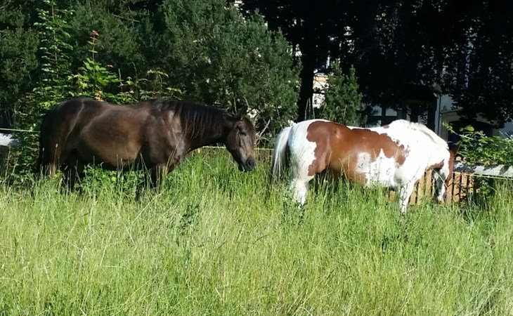 You can reach the holiday flat via a paved (not asphalted) path. Horses and ponies are kept on the farm.