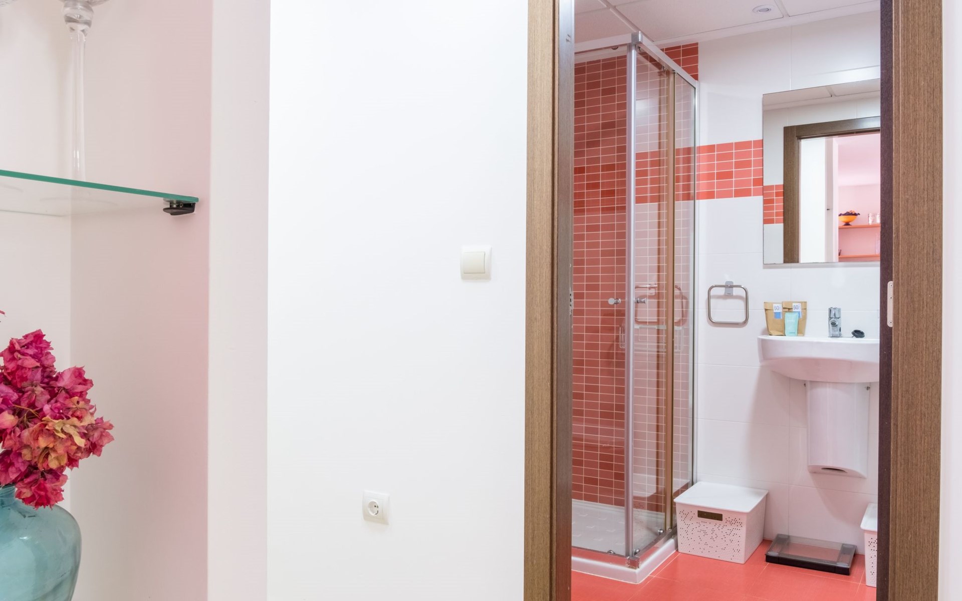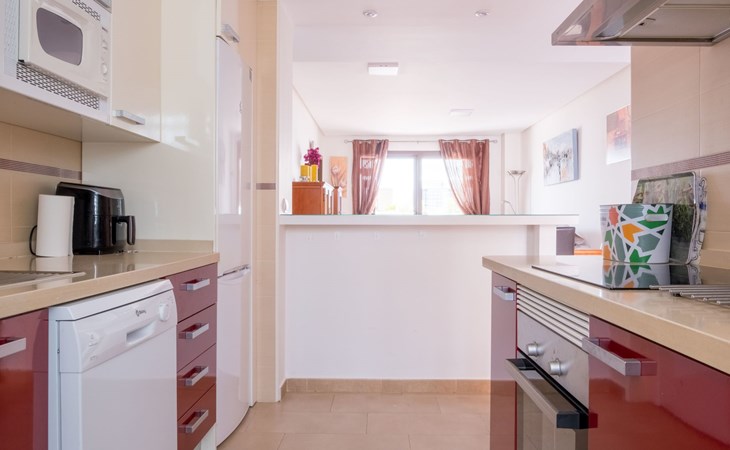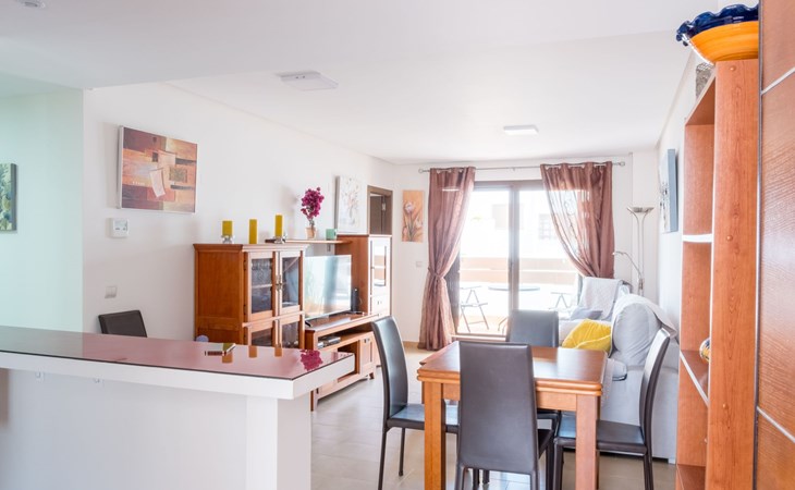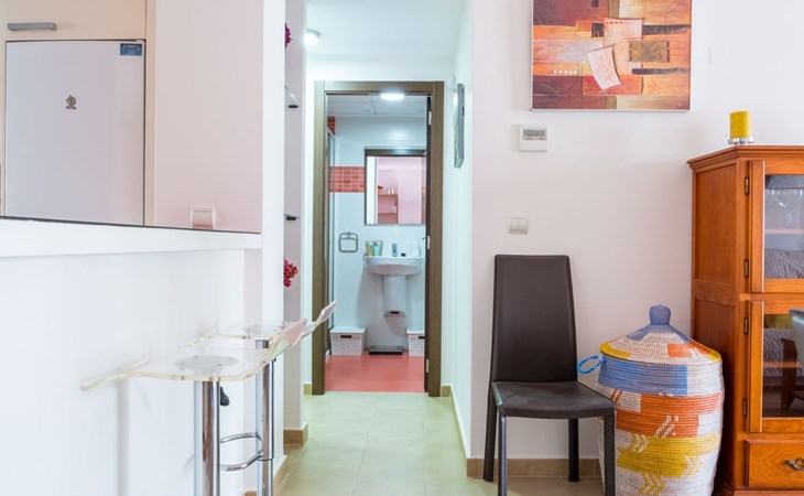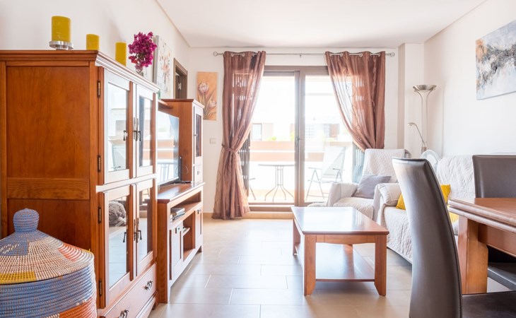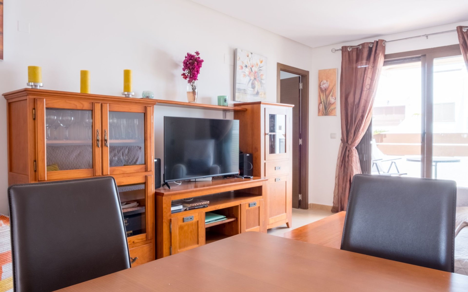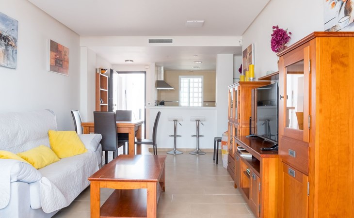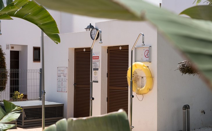 Outside, you will enjoy a 60 square metre private solarium that provides a personal oasis for relaxing in the sun. The complex boasts up to four swimming pools, located just a few metres from the flat, including a heated pool, whirlpools and children's pools, all of which are secured with security fencing. To complement this, the terrace and solarium are equipped with awnings/parasols, tables, chairs, sun loungers and an outdoor shower, perfect for enjoying the weather without having to leave the comfort of the flat.