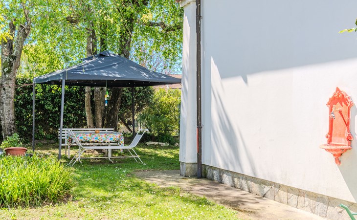 Single-family house "Bruna". In the hamlet Lisanza 3 km from the centre of Sesto Calende, 5 km from the centre of Angera, 100 m from the lake, in a cul-de-sac. Private: property 500 m2 (fenced) with wildlife garden and trees. Outdoor shower, barbecue. Motor access to the house (50 m via unmade road). Parking (for 2 cars) at the house. Supermarket 3 km, bus stop 1 km, pebble beach 300 m, grass beach 100 m, outdoor swimming pool 4 km. Nearby attractions: Arona 12 km, Varese 38 km. Please note: car recommended. Part of the house is closed and unoccupied.
