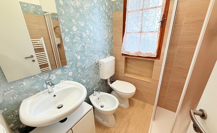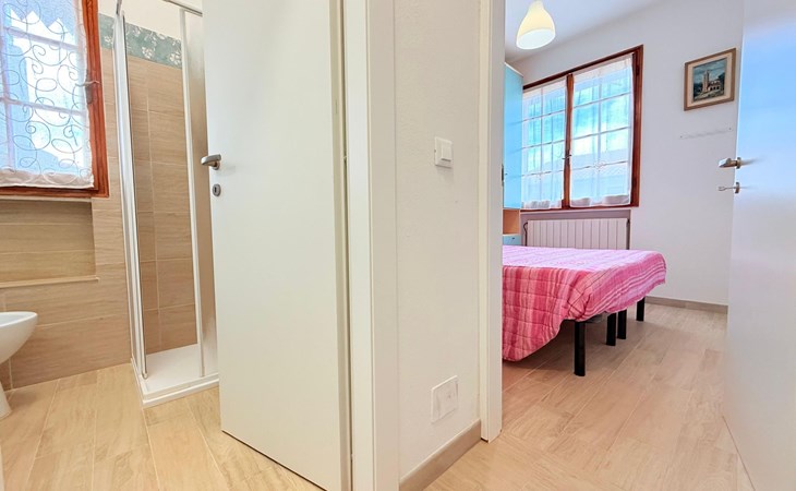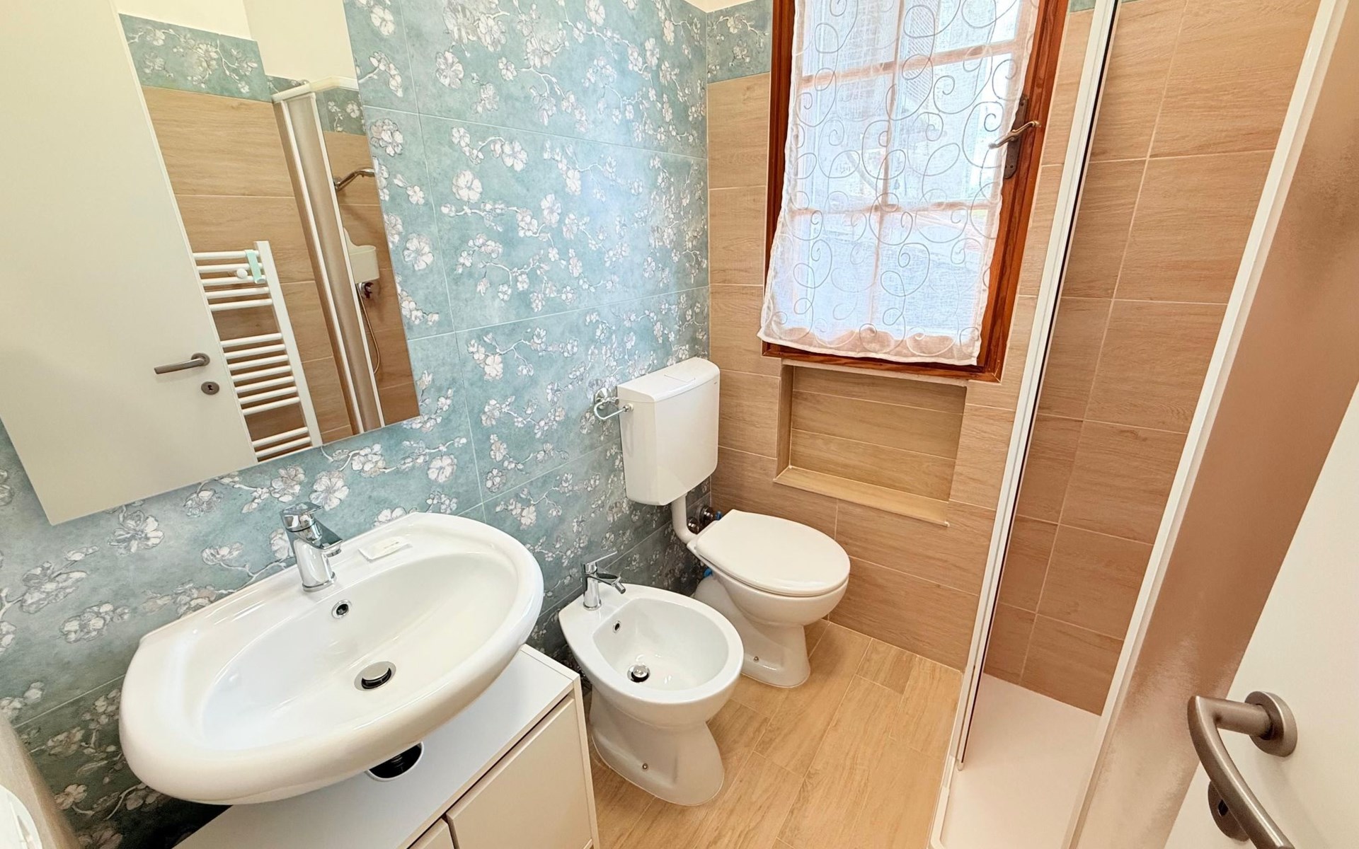 The real jewel of this villa is its exterior, designed for maximum outdoor enjoyment in total privacy. The private garden, completely enclosed and safe even for your small- to medium-sized four-legged friend, includes a covered patio with barbecue ideal for al fresco dining, an outdoor bathroom complete with all amenities, and an indoor parking space. A roof terrace for exclusive use provides additional space for relaxation.